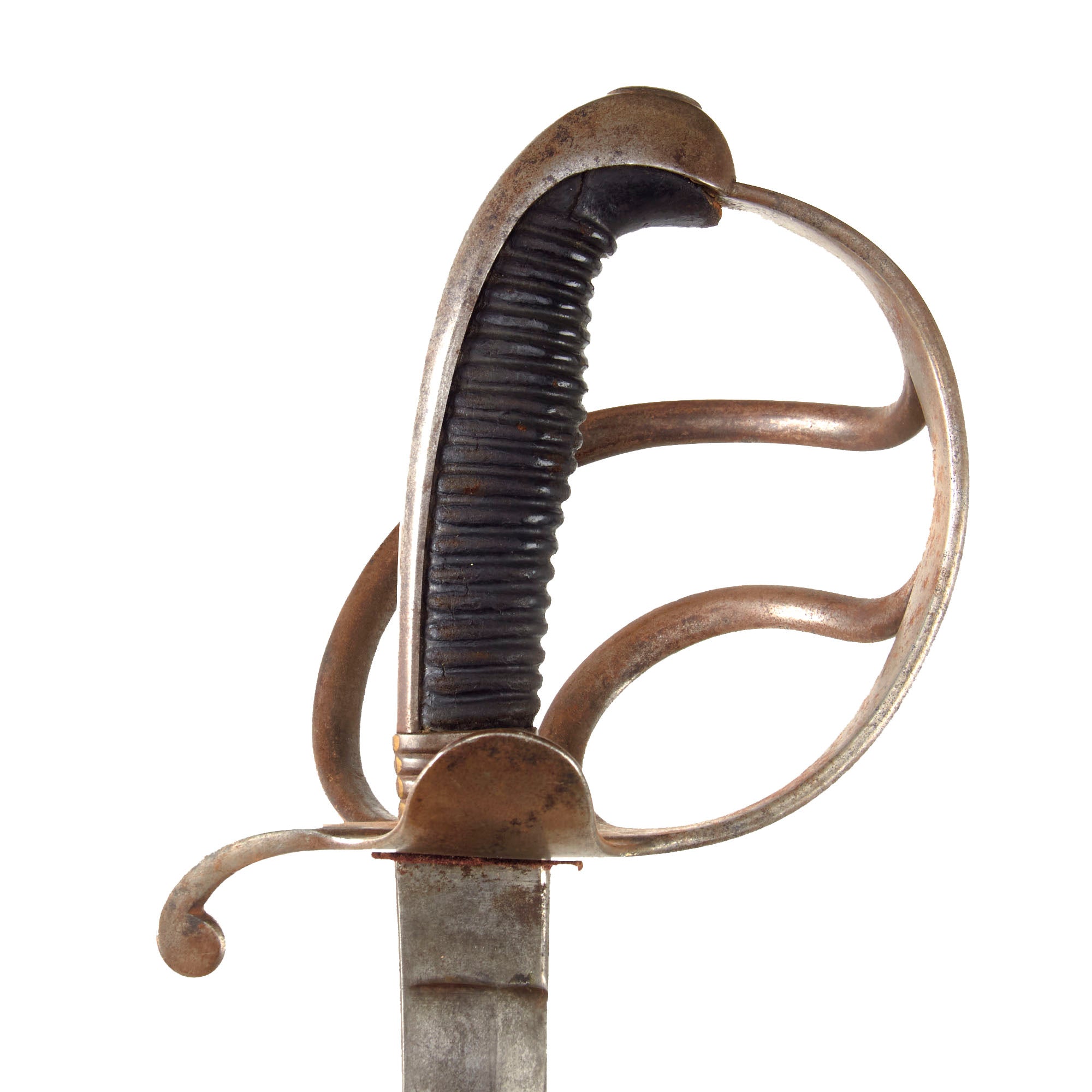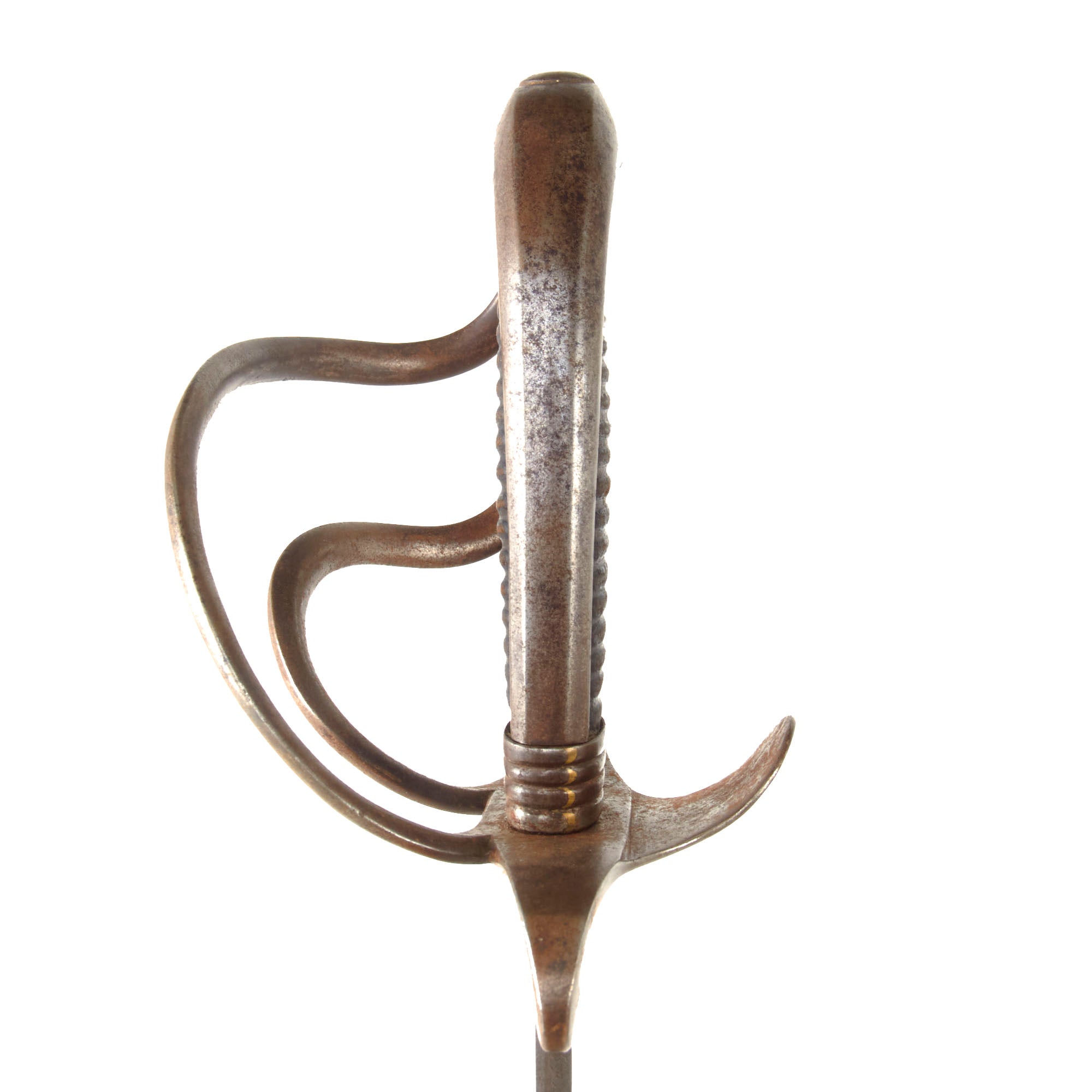 The two Bavarian Heavy Cavalry, Schwere Reiter regiments carried a number of classic Cuirassier Broadswords in both issue and interim varieties. The Bavarian Cuirassier M1825 broadsword had the classic form of knuckle-guard with three branches, exactly like this M1826. In 1891, the Bavarians introduced a new model, with a shorter blade and knuckle-guard with two branches. Unlike the Prussian Cuirassier swords, the officer and enlisted swords are more noticeably different.