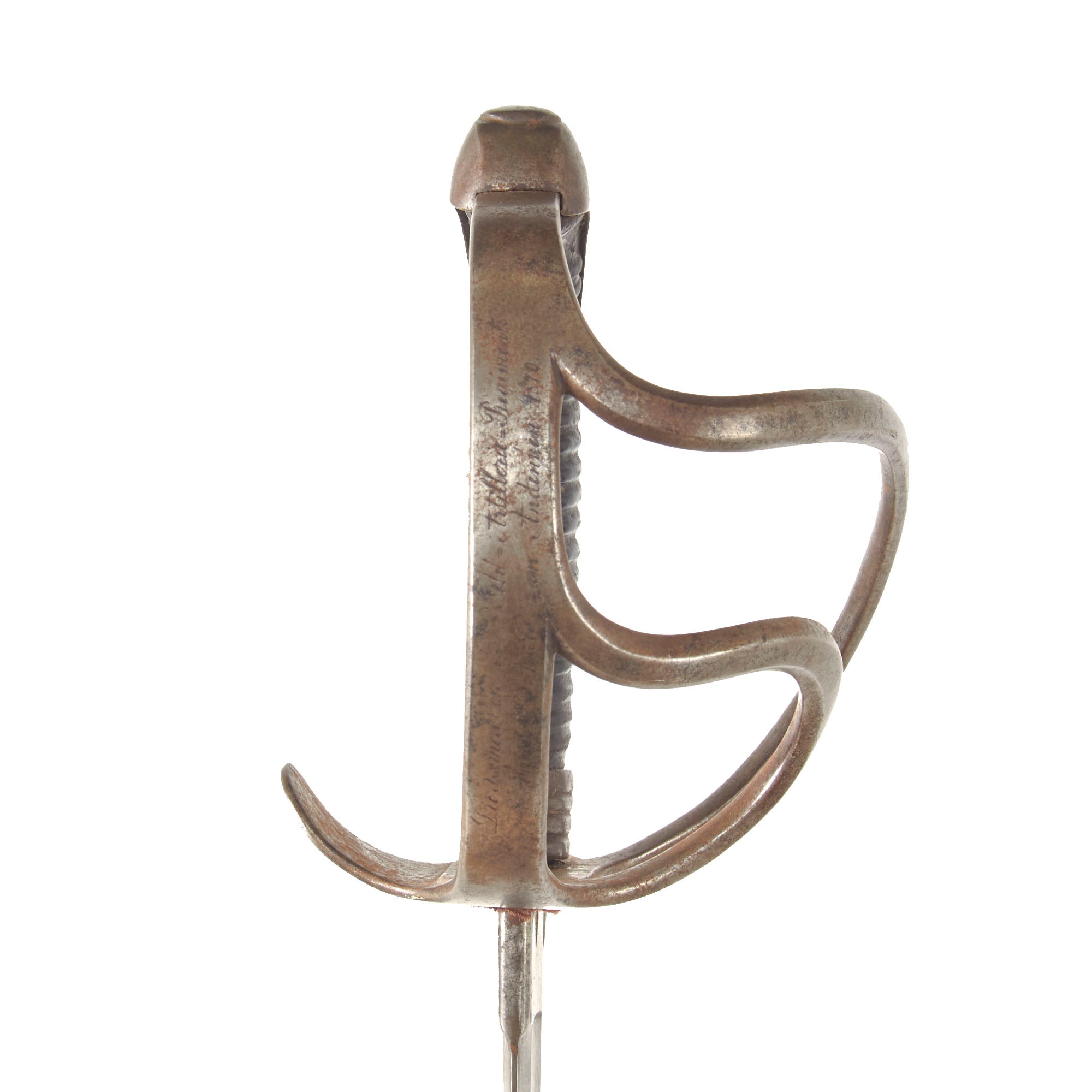 Original Item: Only One Available. The basic Infantry officers’ sword of Bavaria was the Model 1855, a simple brass B-guard with backstrap copied from the Austrian Infantry Officer’s Saber, Model 1850. There is also a variation of this model with a Lionhead. Since senior NCOs were granted the right to carry the Officer’s Saber, the M1855 is relatively common.