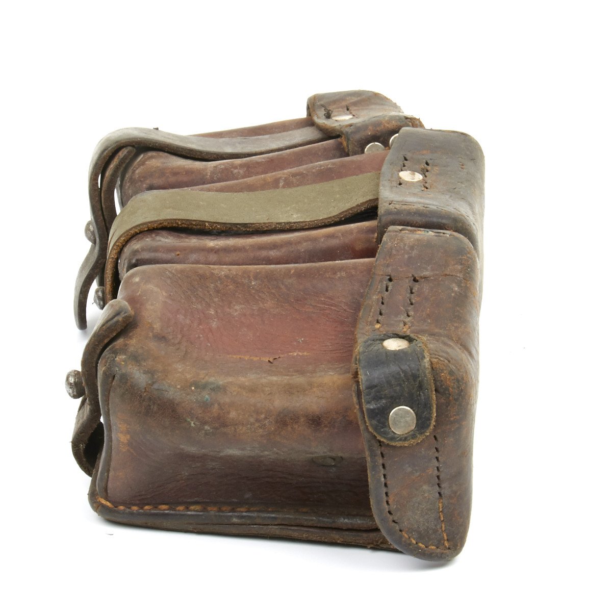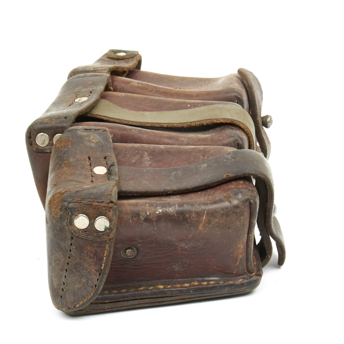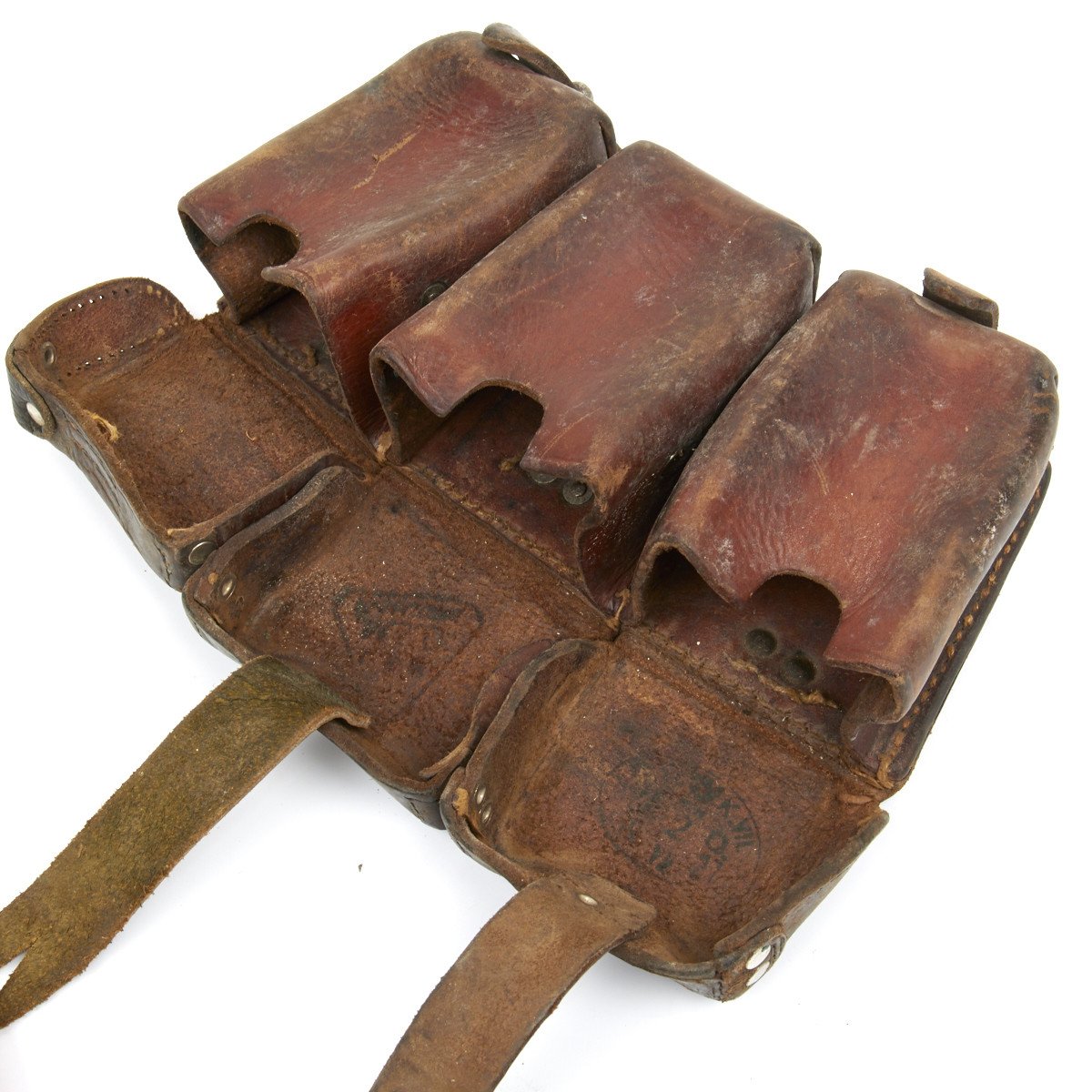 Original Item: Found and purchased from the Finnish Army, having been supplied by Germany before WW2 when Finland was initially a German Ally against the Russians. These are Original Classic Brown Leather WW1 era Mauser Rifle Ammunition Pouches as used in the WW1 Trenches. Each bears original German's maker markings and often WW1 dates or other military markings, these pouches are in various degrees of preservation. Some replacement parts and repairs to the leather may also have occurred as these are some 90 years old and saw service in Two World Wars. Offered in three Grades: