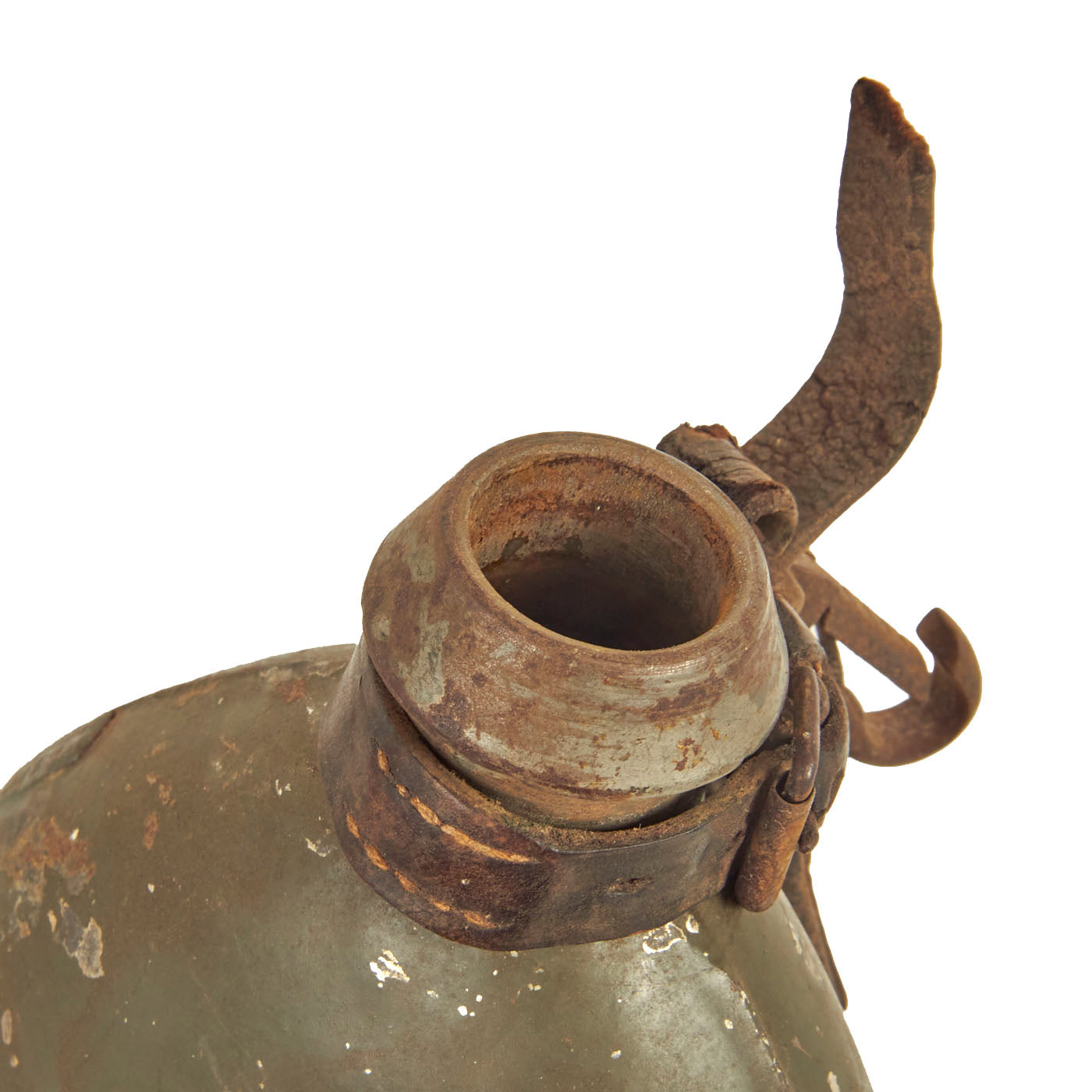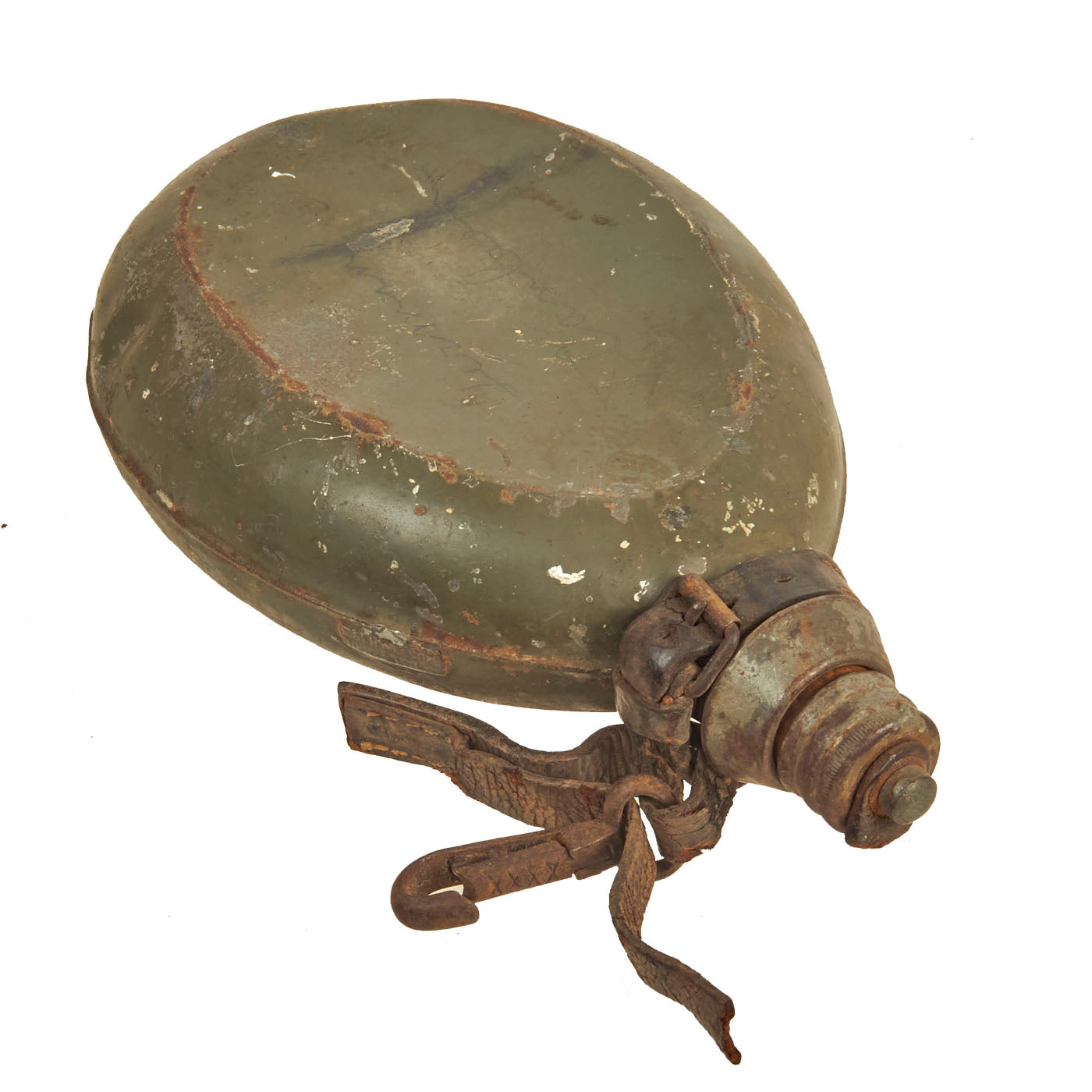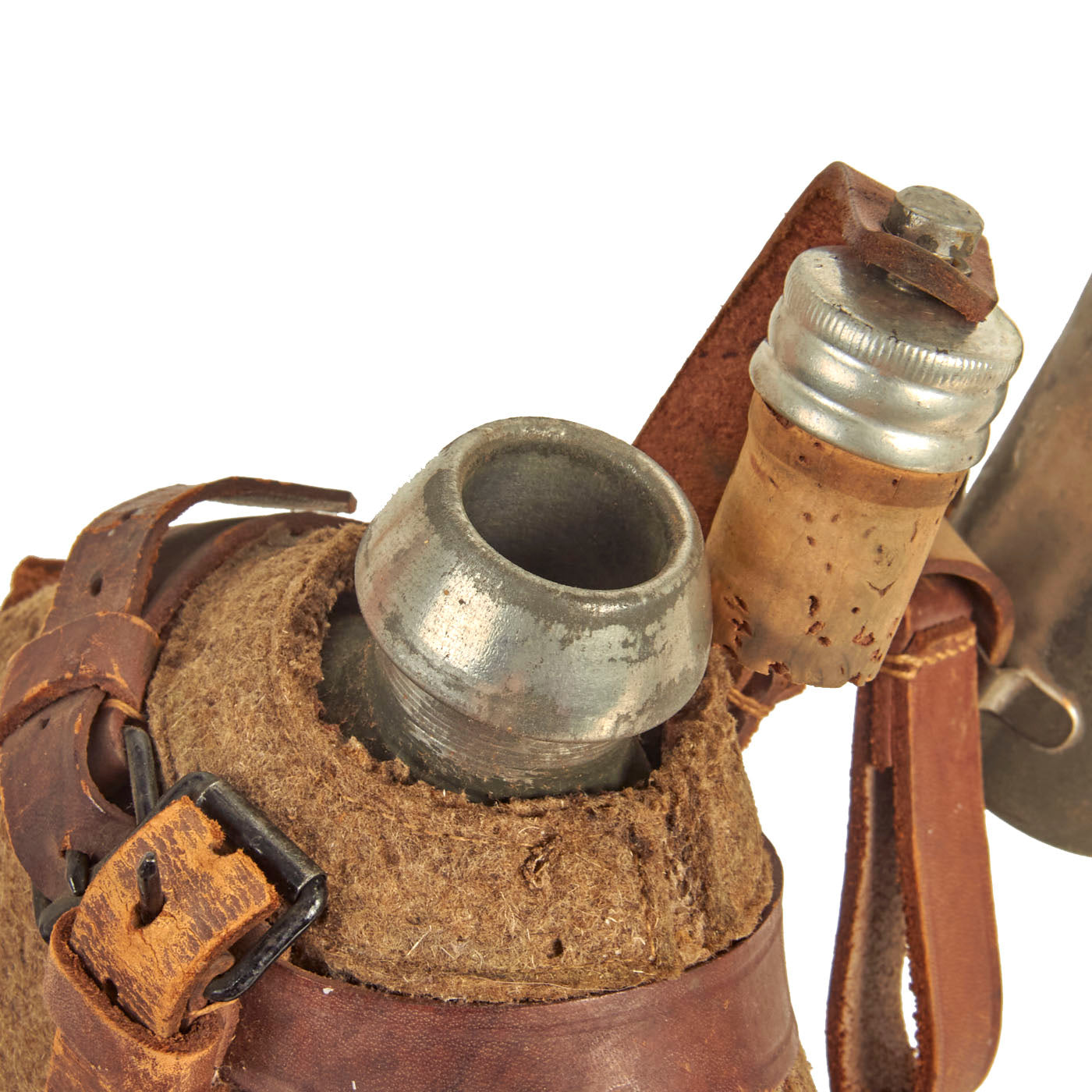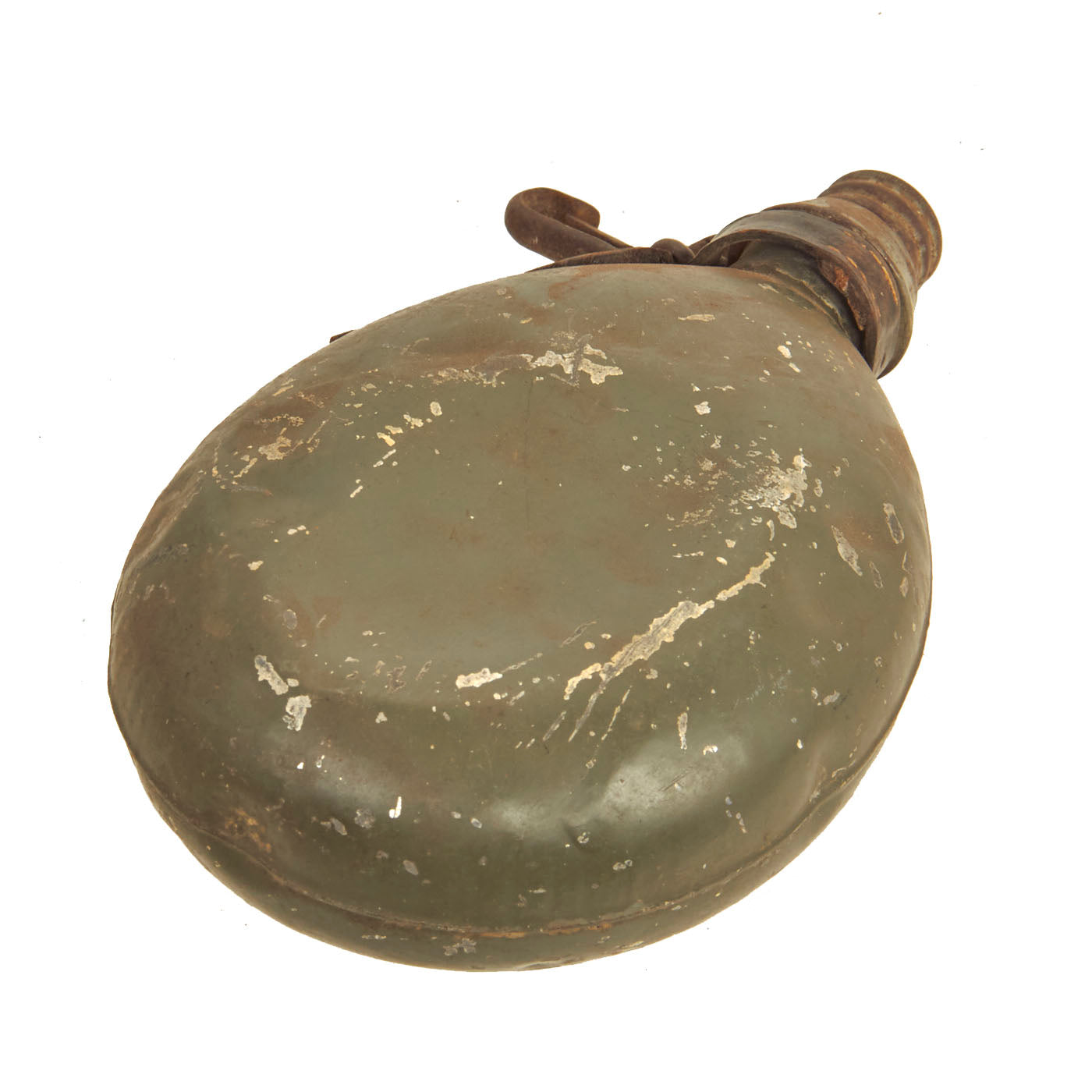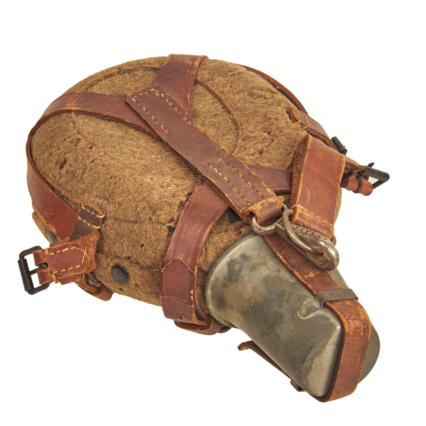 Original Items: Only One Lot of 2 Available. The typical canteens used by the Germans during the war were the M.1893 aluminum canteen with cork, the M.1907 screw-top Feldflasche and the enameled steel M.1915 model Feldflasche with cork stoppers.