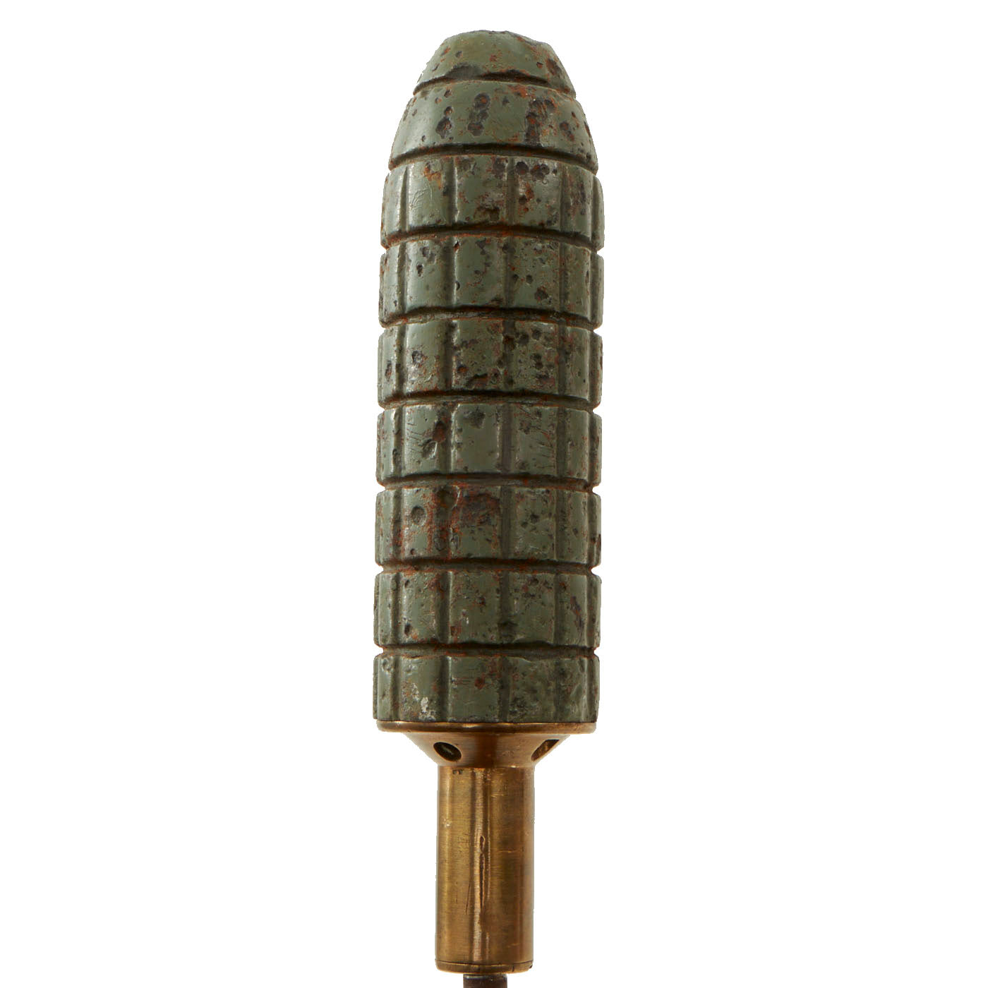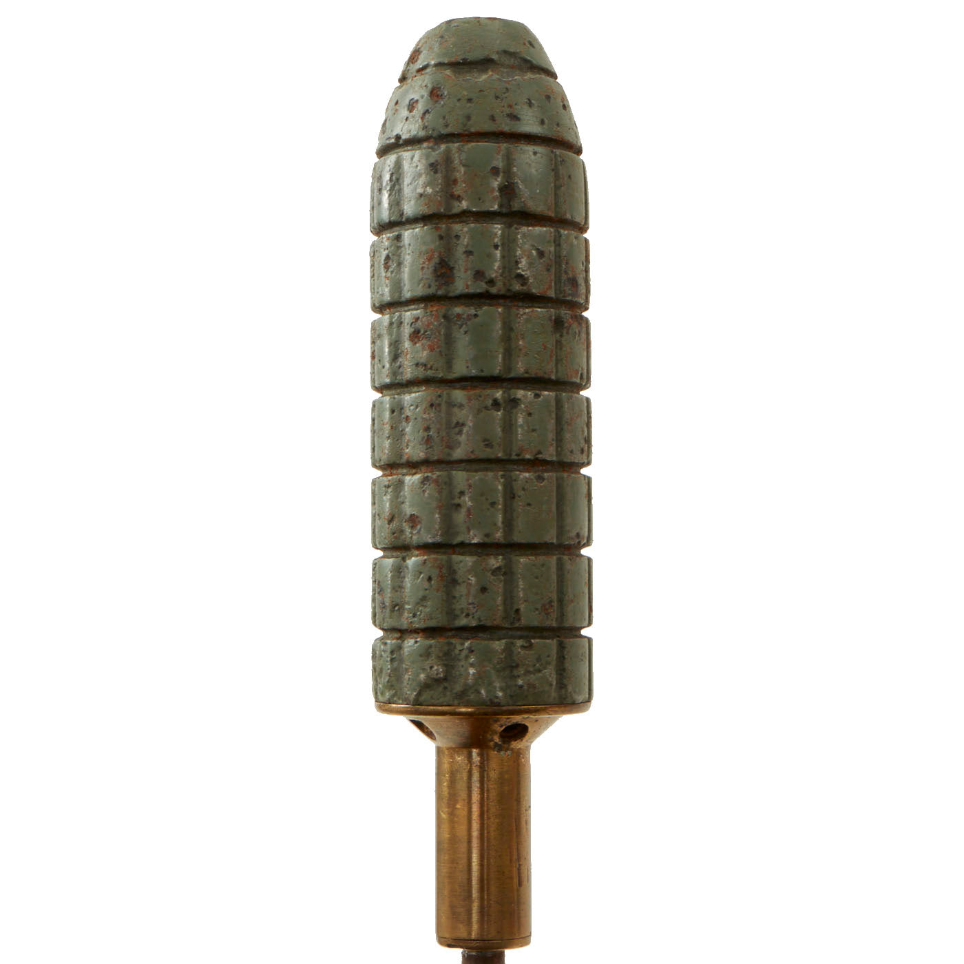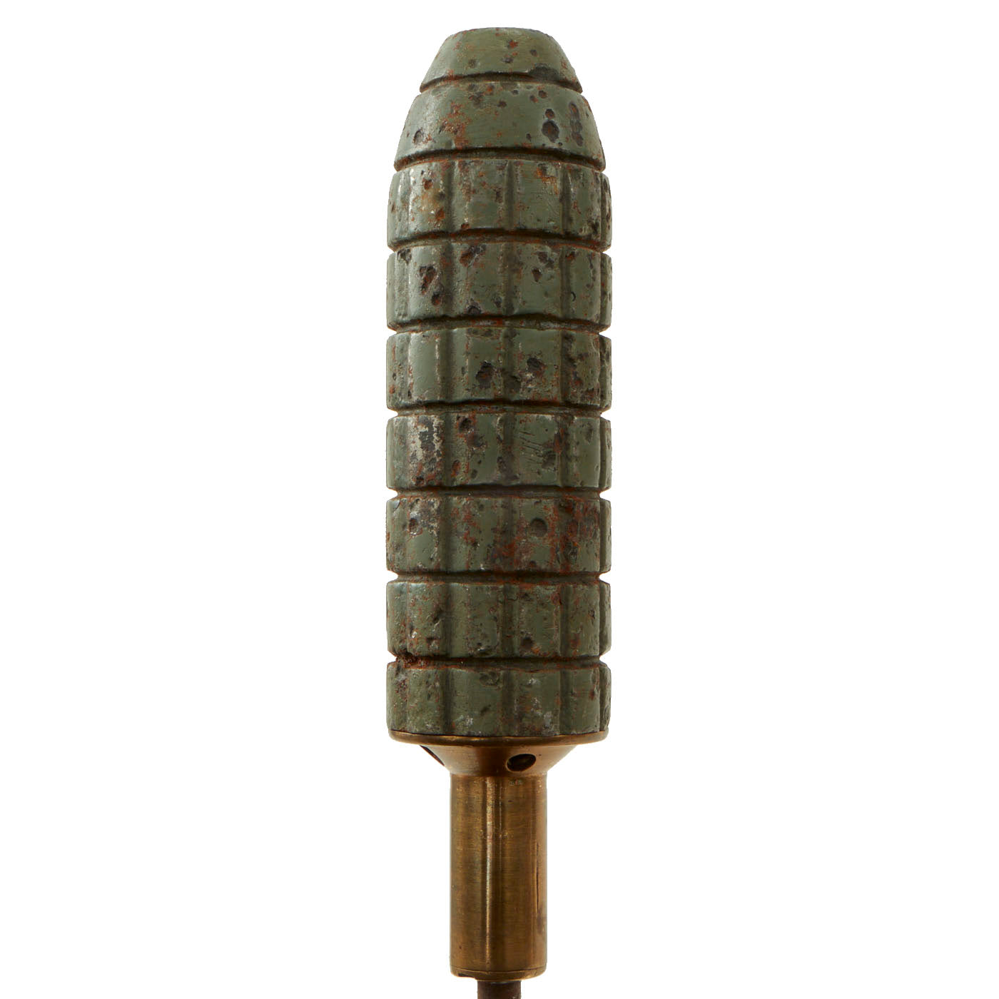 As with most early "rod" type rifle grenades, the original rod was removed from this example long ago. A replica made from solid bar stock, aged to match, has been attached to the bottom of the grenade to complete the look.
