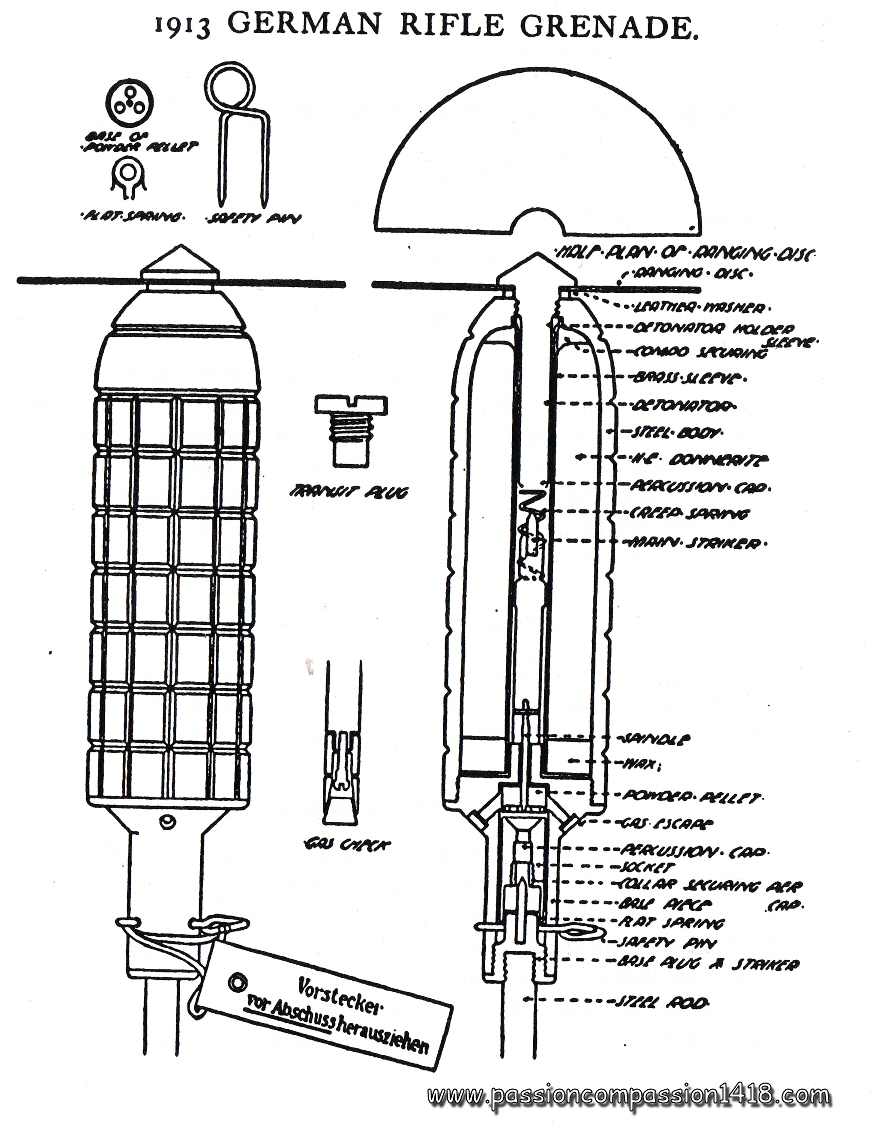 History of the German WW1 Karabingranate M1913The rifle grenade M 1913 is the first of a series of grenades developed by German intended to be lauched using the simple Mauser infantry rifled armed with a blank ammunition, after inserting the long steel rod into the gun.