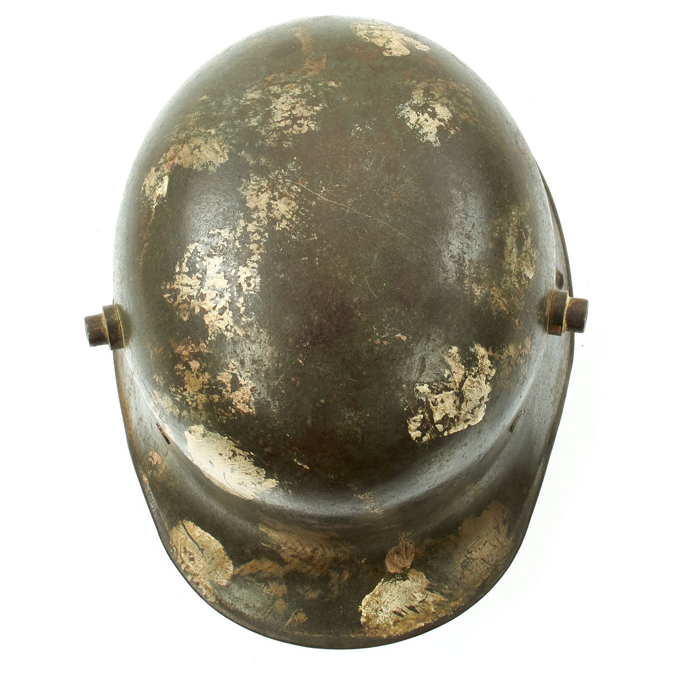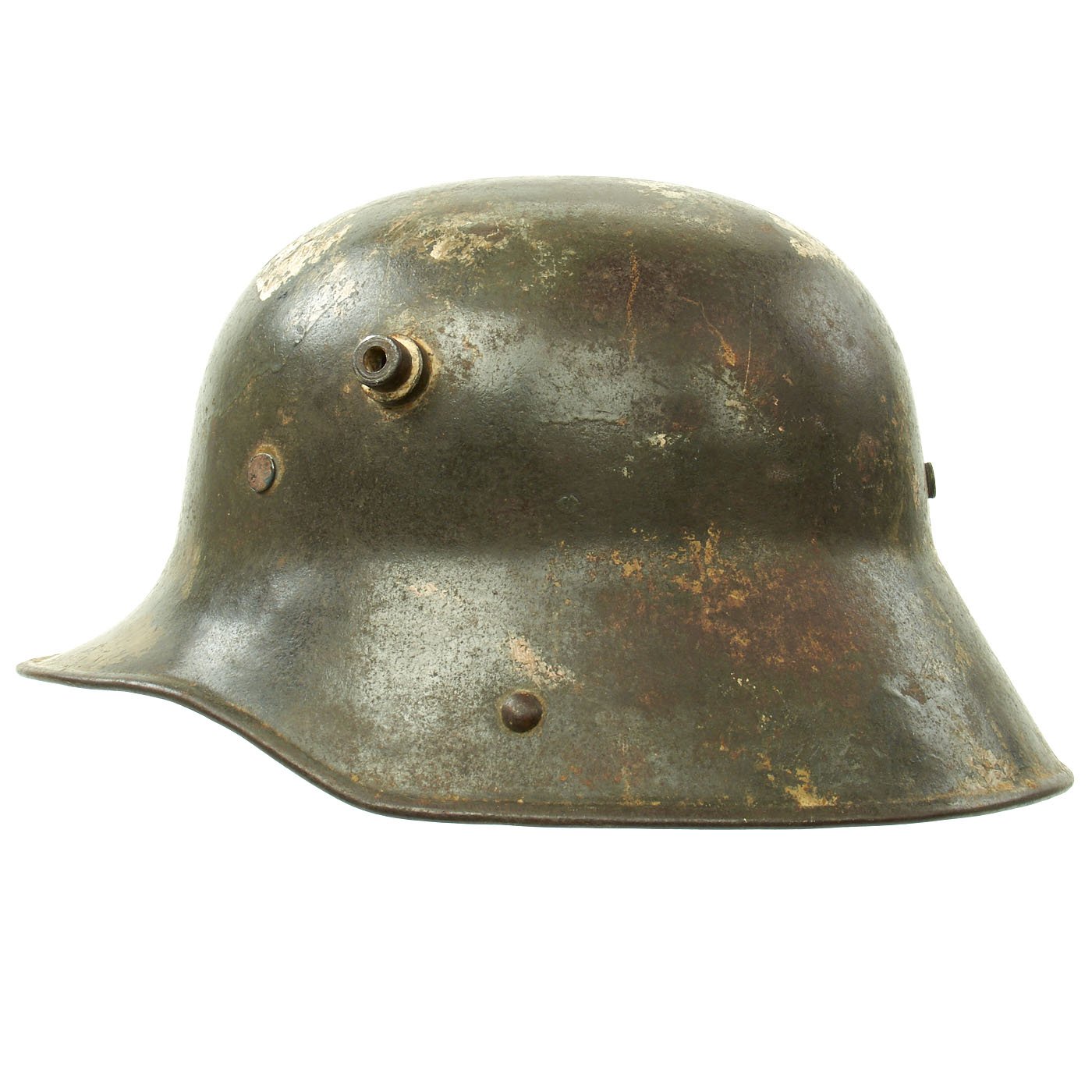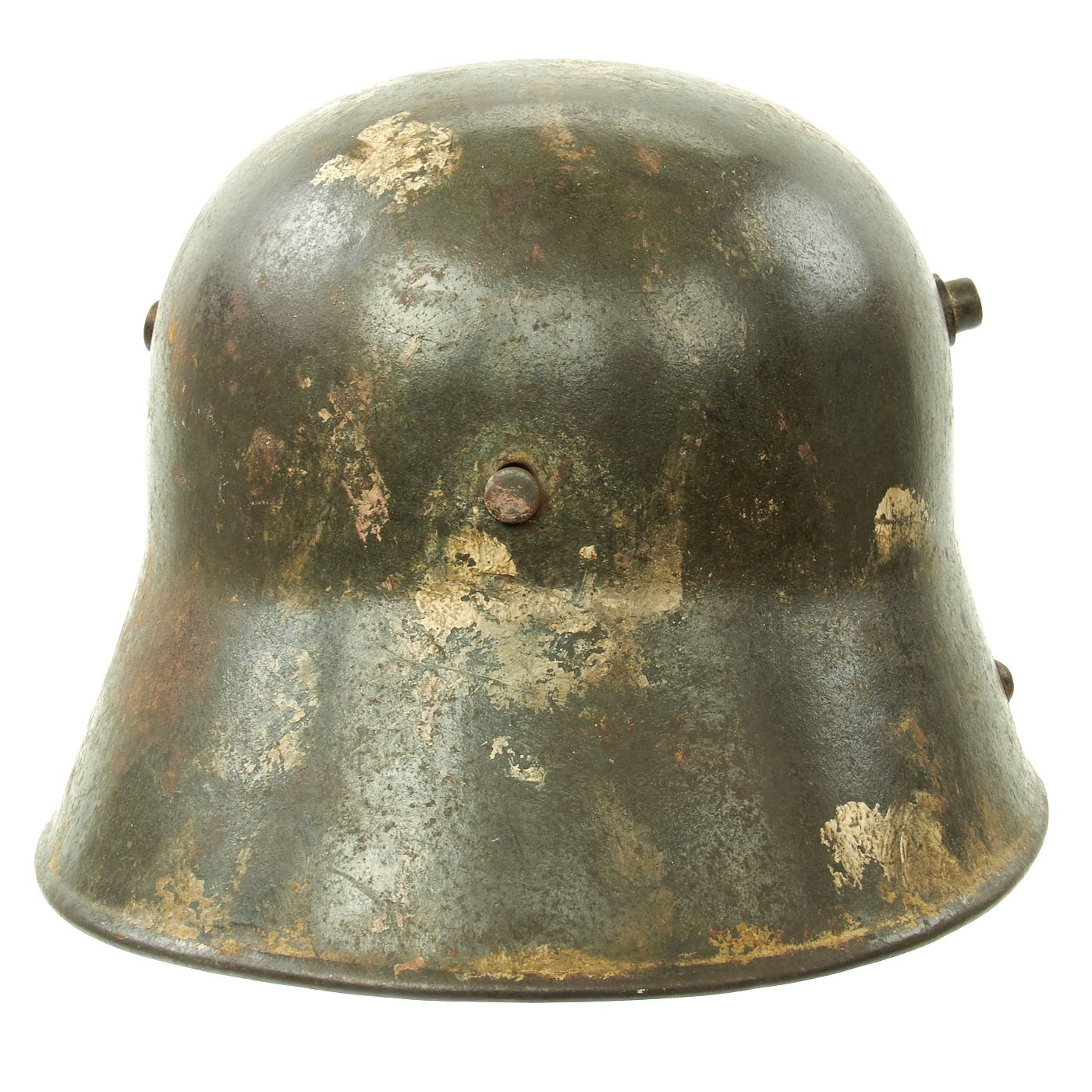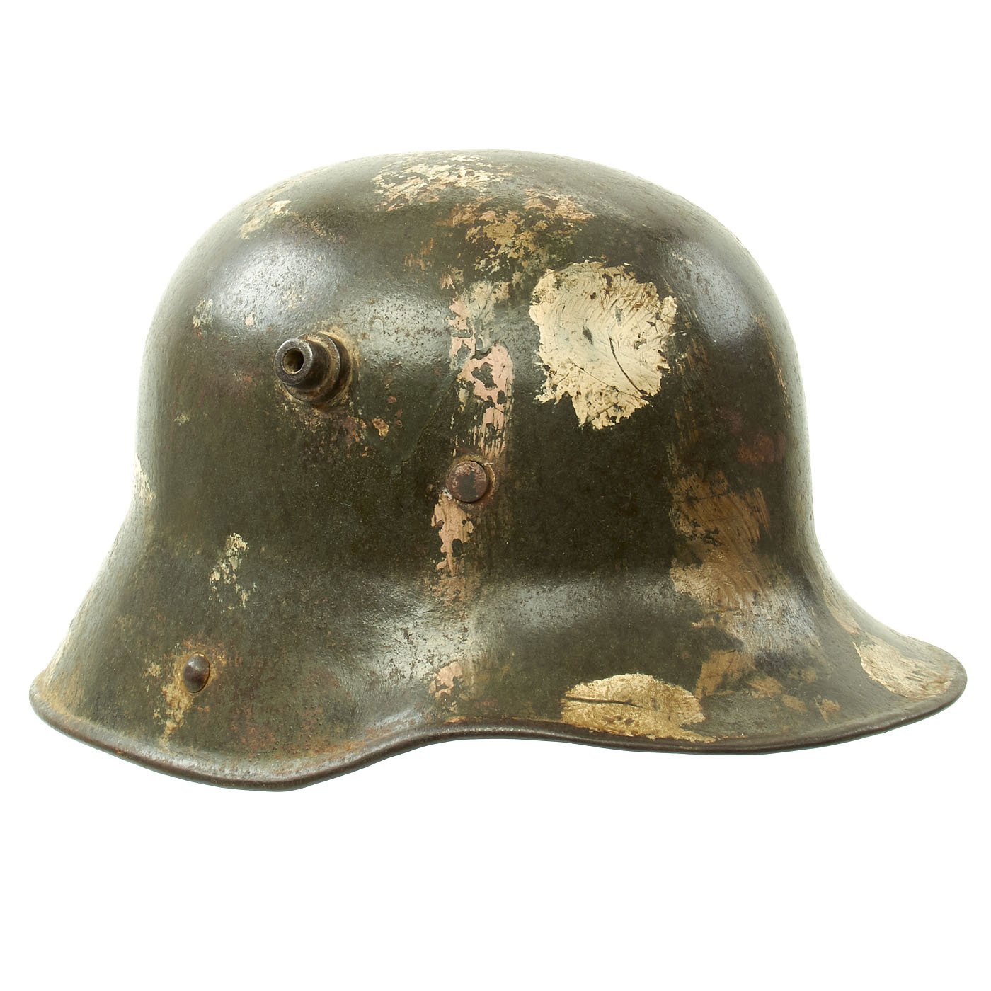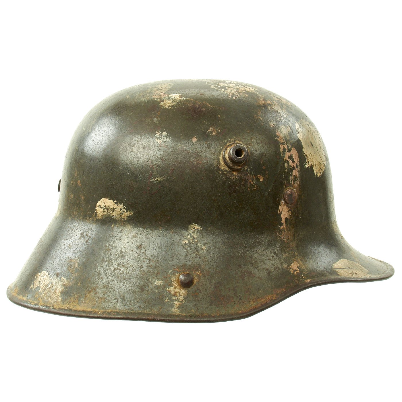 Original Item: Only One Available. This is a very nice example of a totally original WWI German M16 Helmet shell, with a nice "winter camouflage" paint scheme and complete liner. The stamped, sheet steel construction, helmet shell retains a good deal of the original "Field Gray" paint, which has splotches of white and brown in areas, a very nice winter camouflage look.