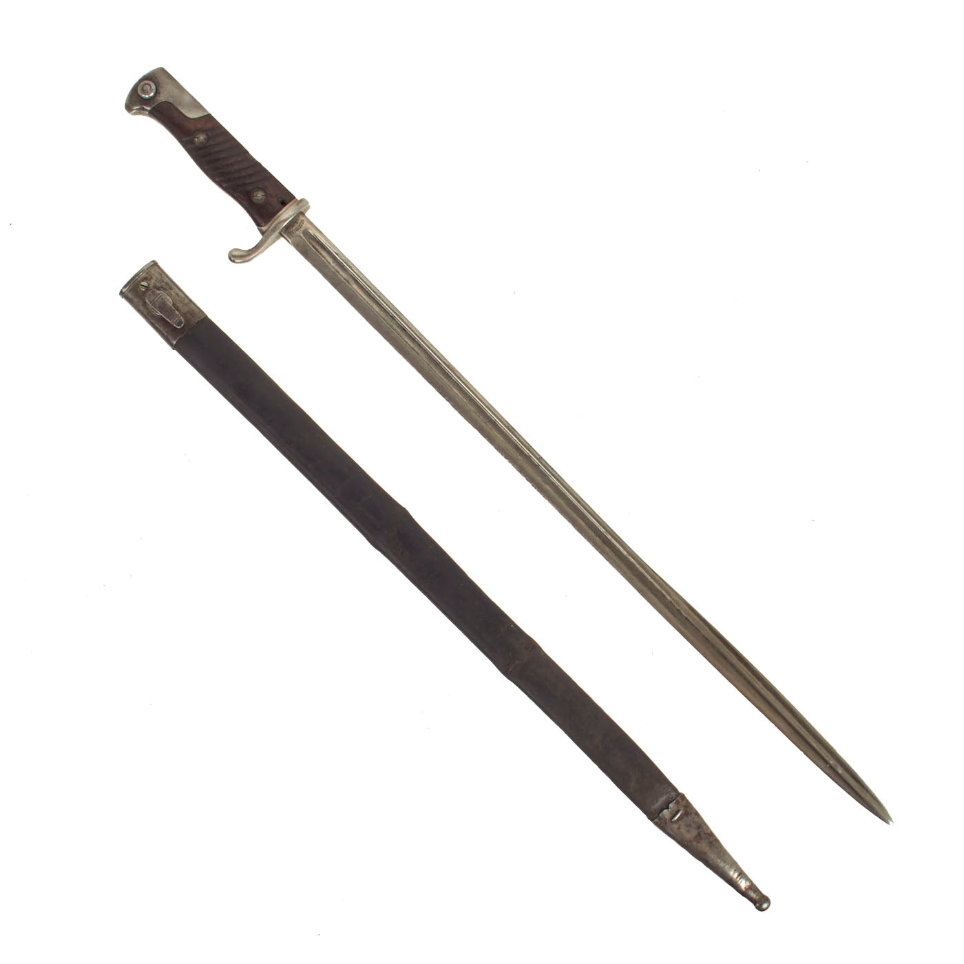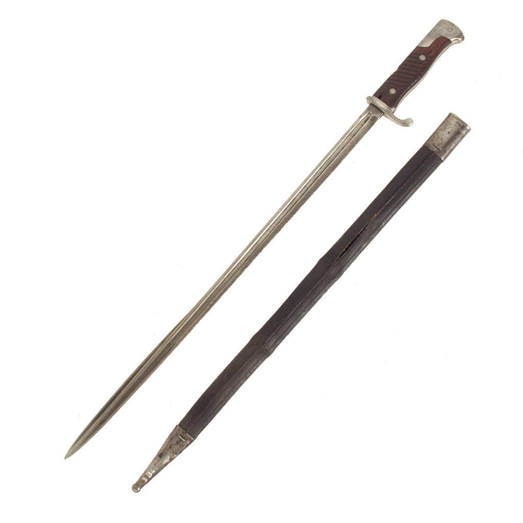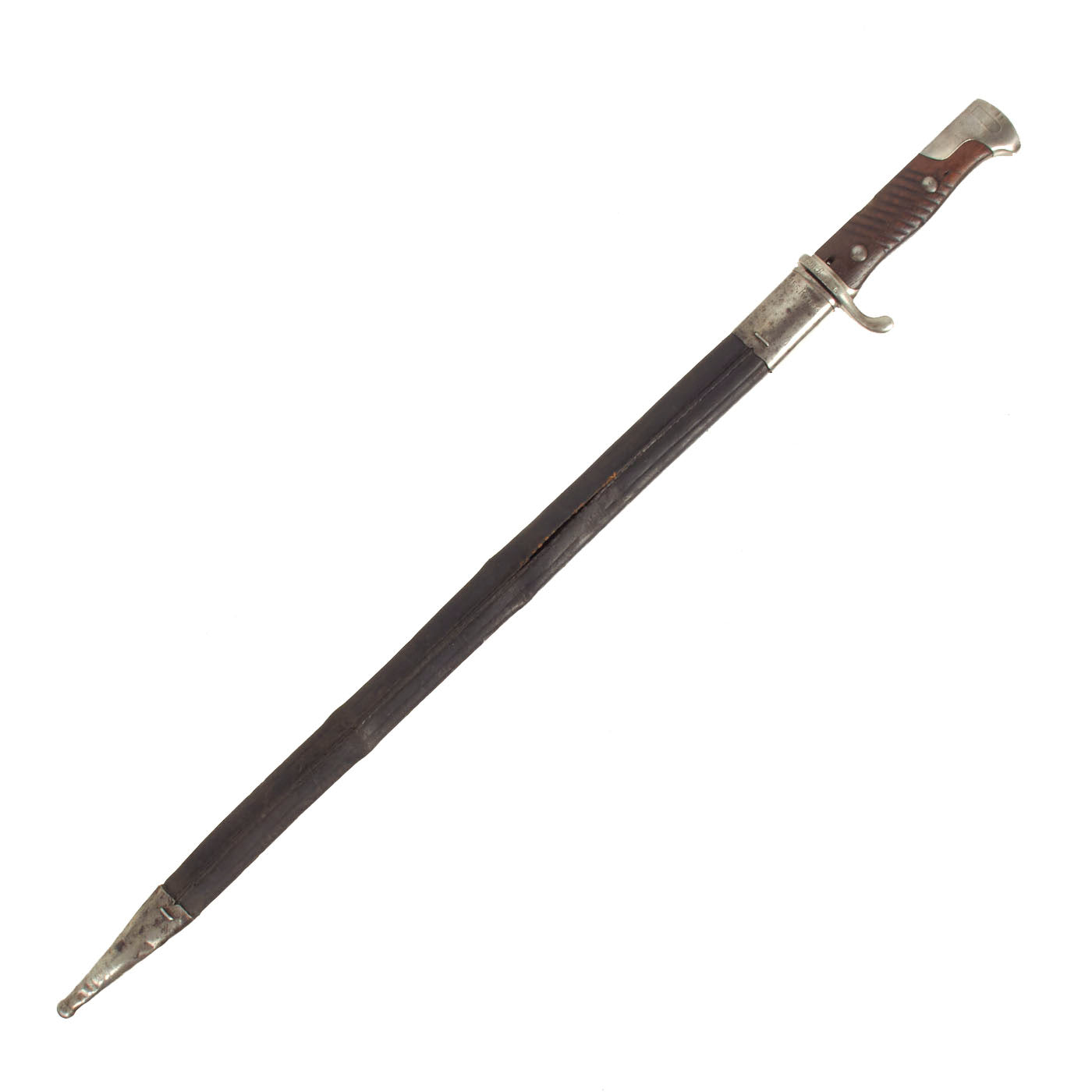 Original Item: Only One Available. In 1898 with the new Mauser bolt action infantry rifle the military adopted this long bayonet, the Seitengewehr (Sidearm) M1898. This longer bayonet gave an Infantryman the ability to bring a Cavalryman down from his horse, due to the bayonets long reach. Of course Cavalry was soon becoming a thing of the past and these long bayonets were being surpassed by different and shorter versions. At the start of WWI in 1914 this Gew 98 long bayonet was the norm.