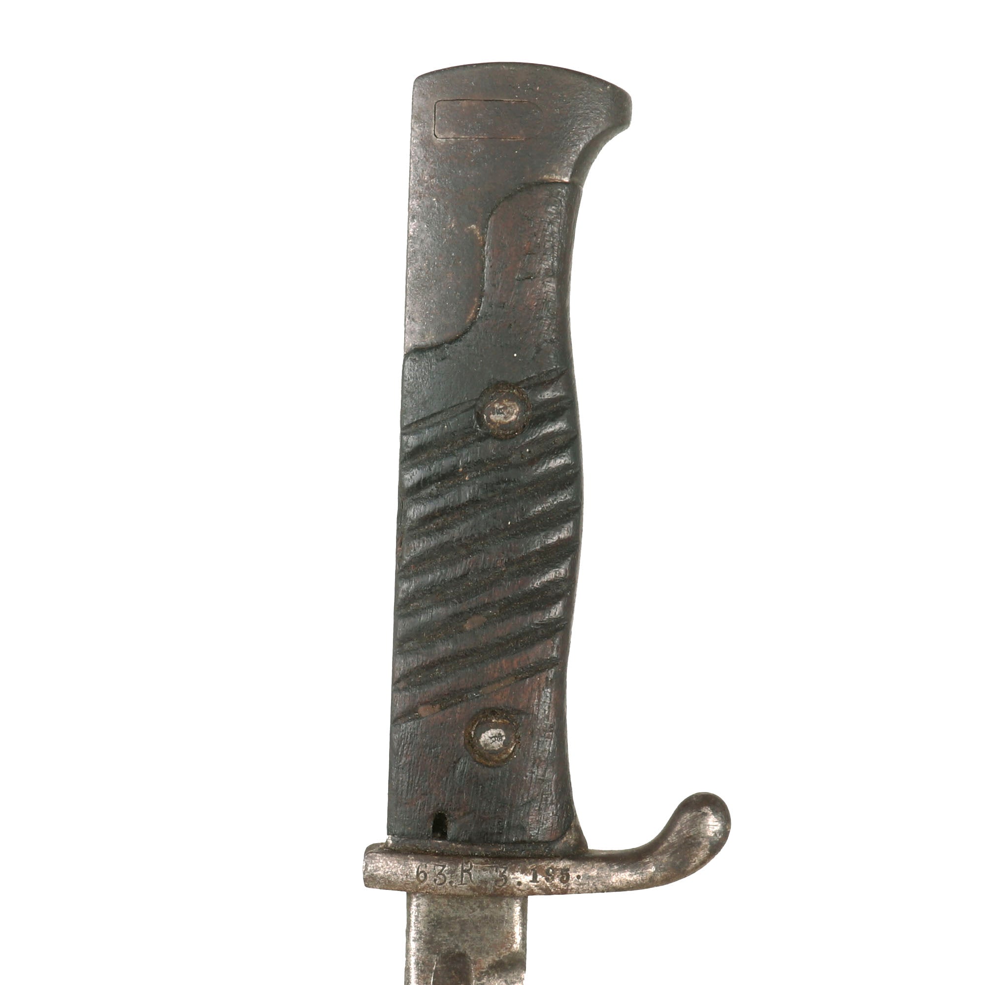 Original Item. One-of-a-Kind. This is an extremely scarce M1898 Gewehr 98 Seitengewehr bayonet with unit marking 63. R. 3. 185. for Infanterie-Regiment Nr. 63. This regiment has an extensive history on the Western, Russian, and Italian fronts during World War I, and they have become a heavily sought-after unit.