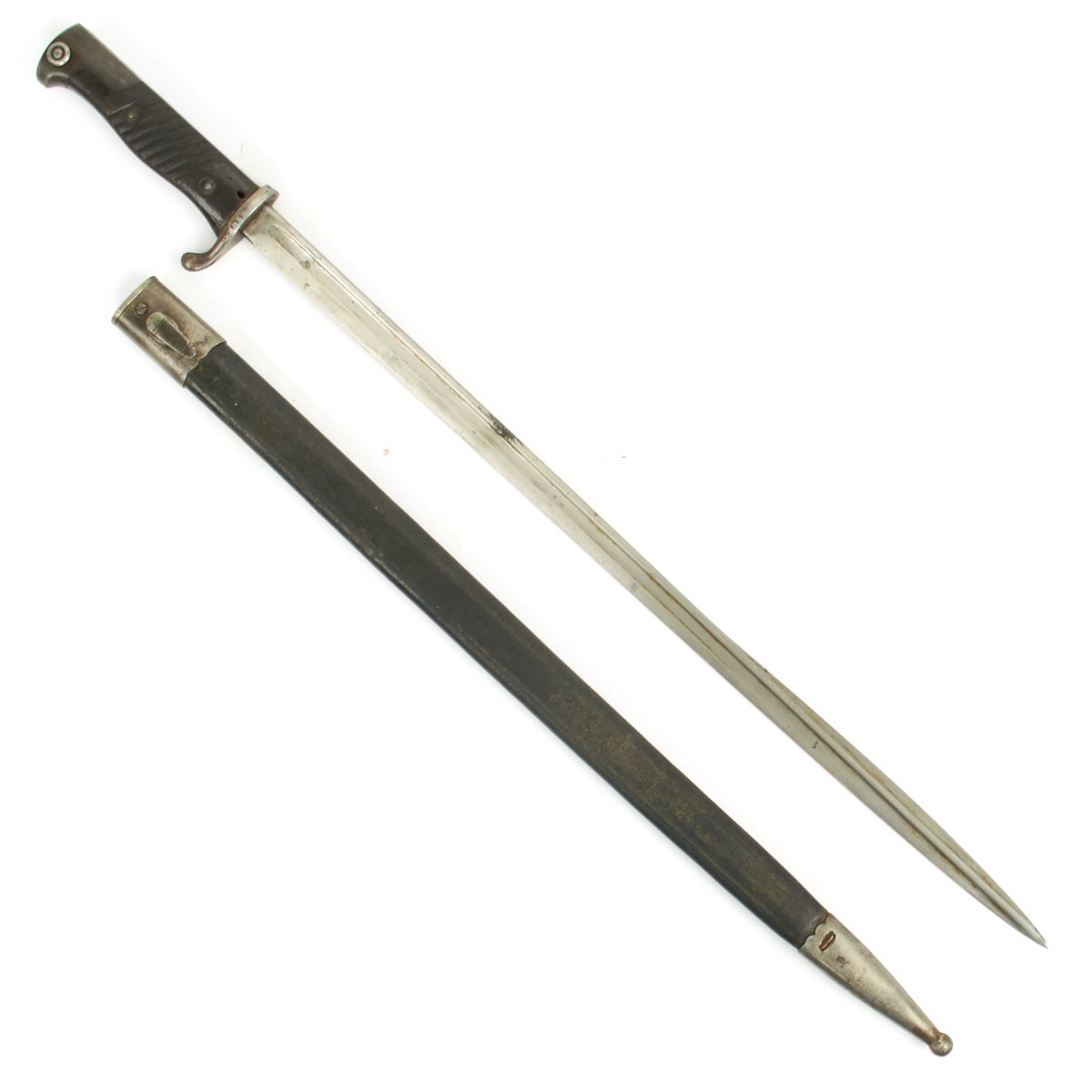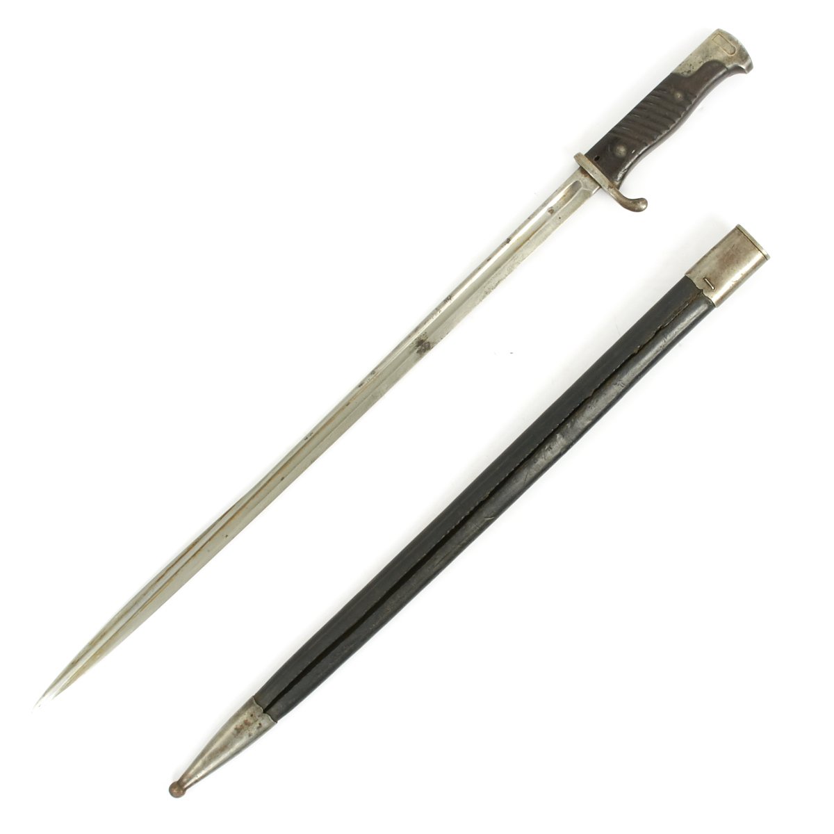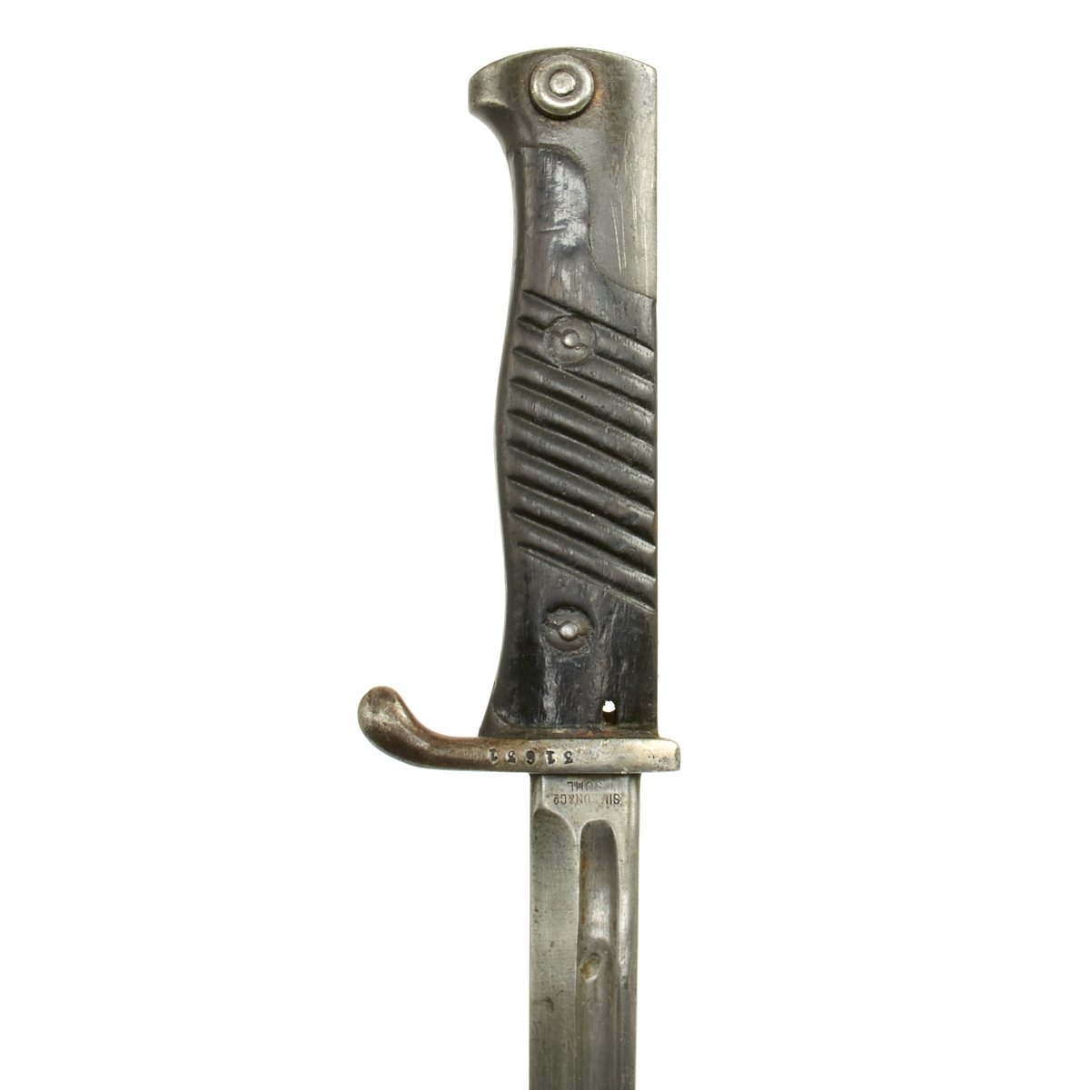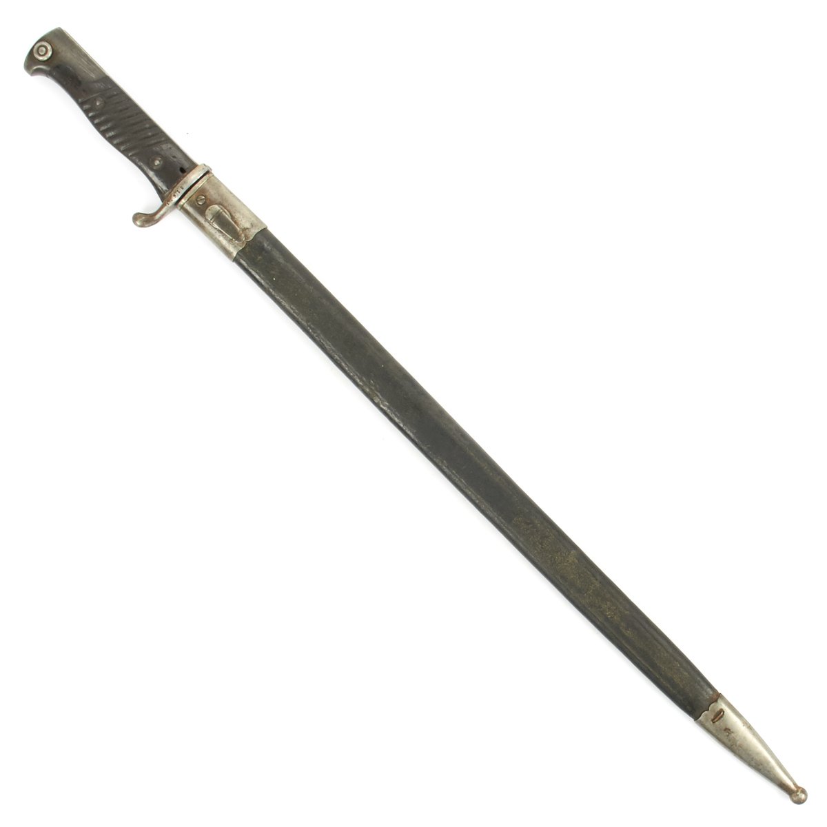 Original Item: Only One Available. In 1898 with the new Mauser Gewehr 98 bolt action infantry rifle the military adopted this long bayonet which gave an Infantryman the ability to bring a Cavalryman down from his horse due to the bayonets long reach. Of course Cavalry was soon becoming a thing of the past and these long bayonets were being surpassed by different and shorter versions. At the start of WW1 in 1914 this Gew 98 long bayonet was the norm. There was also a substantial export market for the Gewehr 98 rifle and bayonets, and this is one such example.