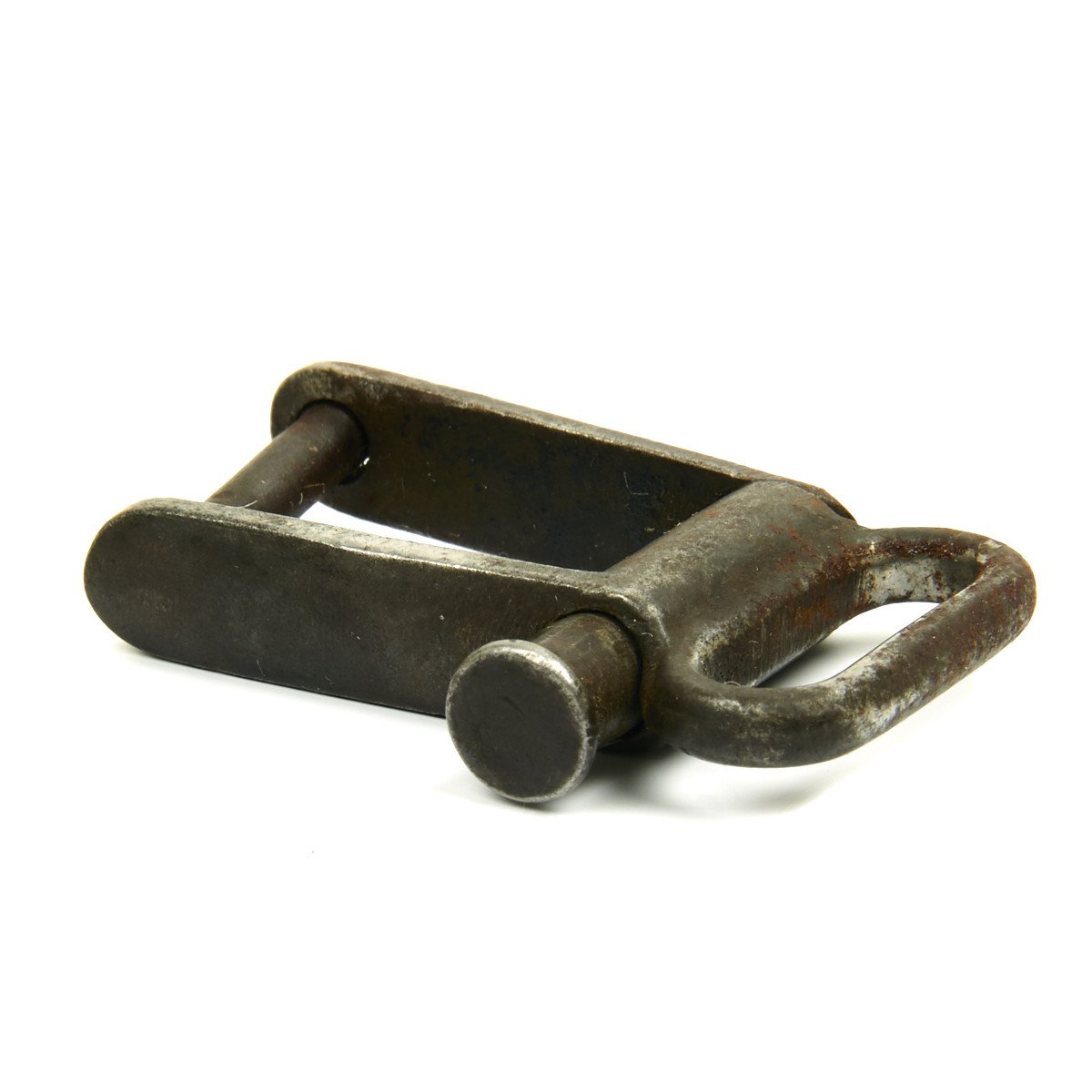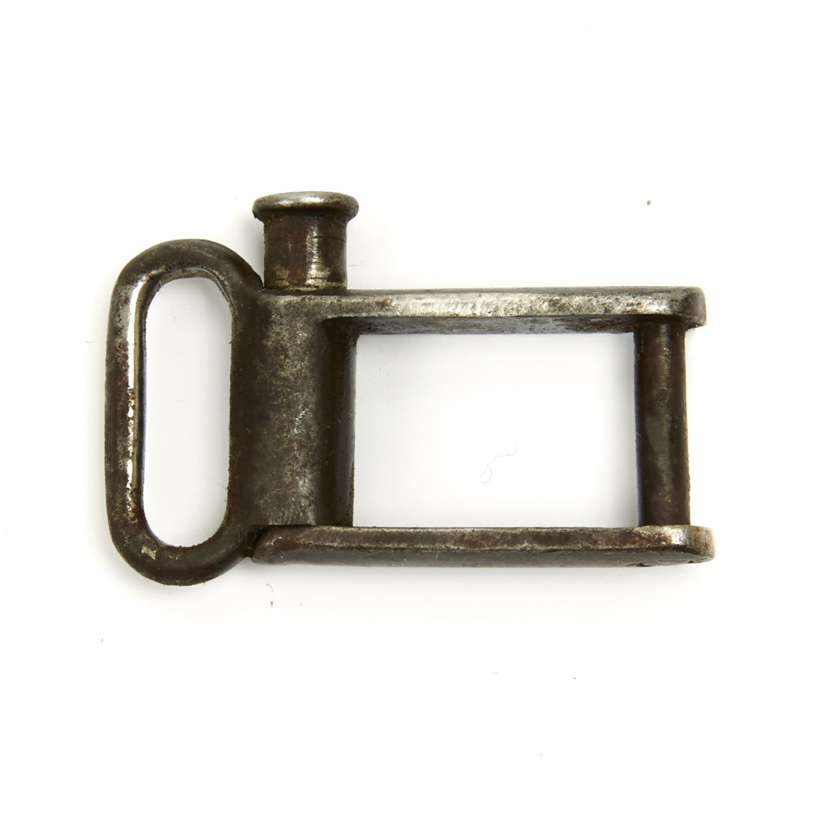 Original Item: The original German Gewehr 98 rifle, the standard German rifle during the First World War, featured an unusual sling arrangement. To carry the rifle, the sling was attached to the butt stock, but for parade use the sling was attached to the front of the trigger guard and to a hook on the upper barrel band. A special sling swivel link made this change fast and convenient.