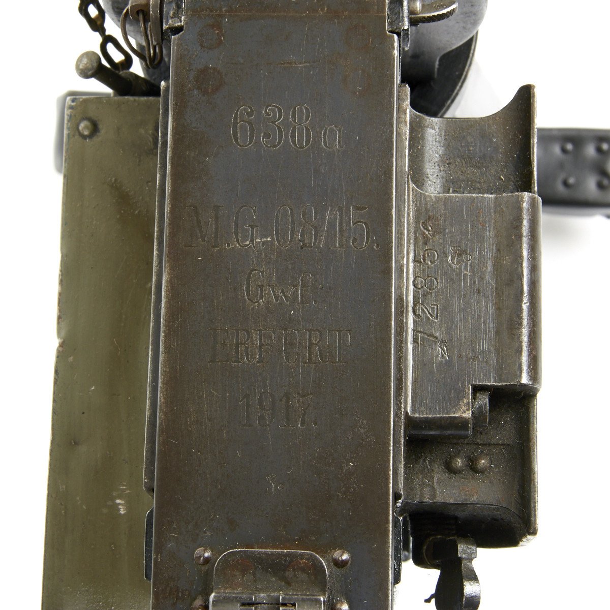 Original Item: Only One Available. One of the only true MG 08/15 display guns we have ever owned. This fine example of the legendary MG is nicely marked ERFURT and dated 1917 on the top cover.