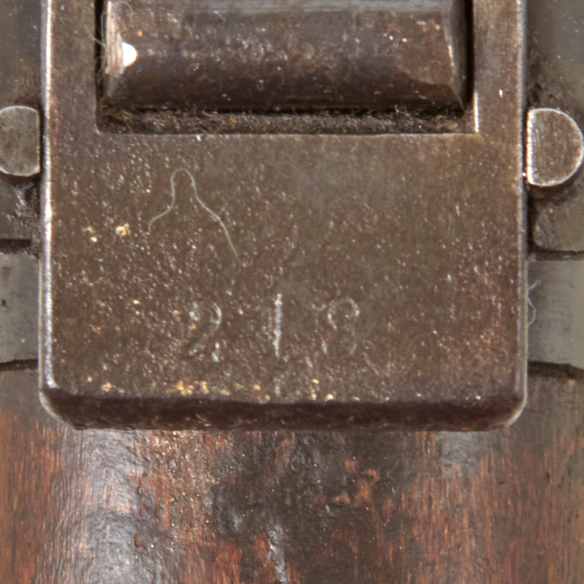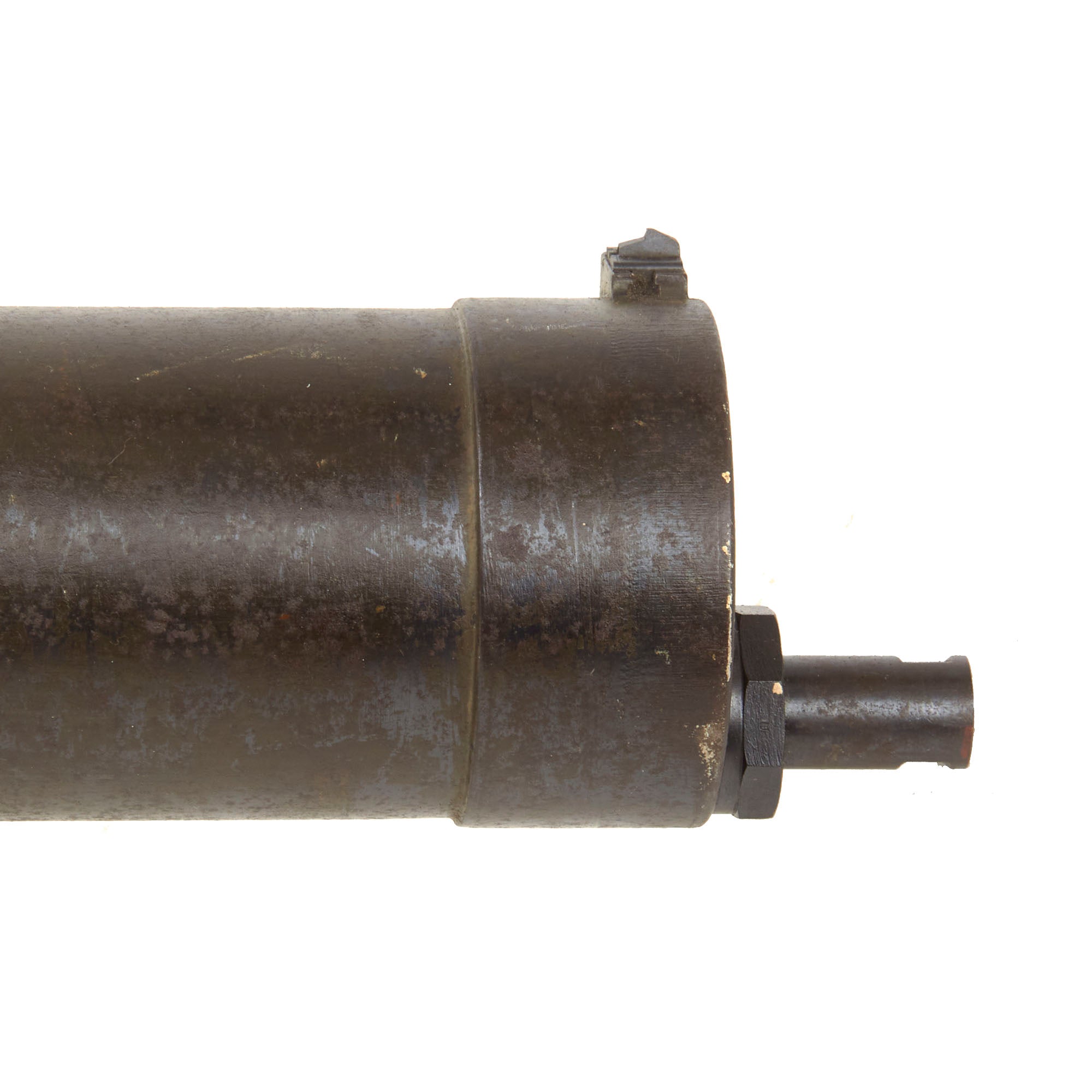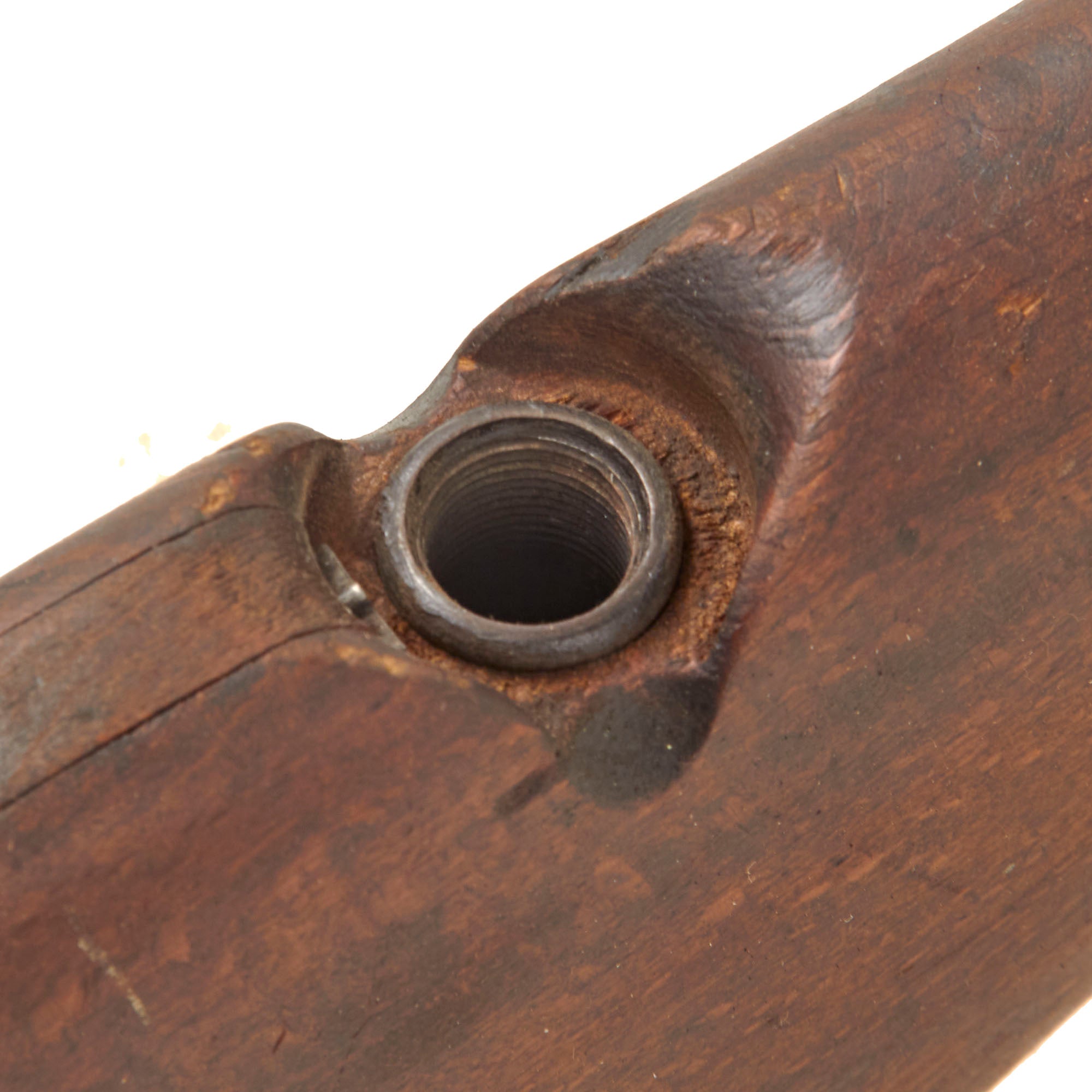 This is a complete and fully BATF compliant inert non-firing display non-gun built using a deactivated right side plate, which has been left open so that the interior can be seen. Please note that the lock is not included, which is almost always lost over the years. The exterior of the display gun shows a lot of the original blued finish, with other areas showing a worn oxidized patina. It looks to have seen light to moderate service during the war.