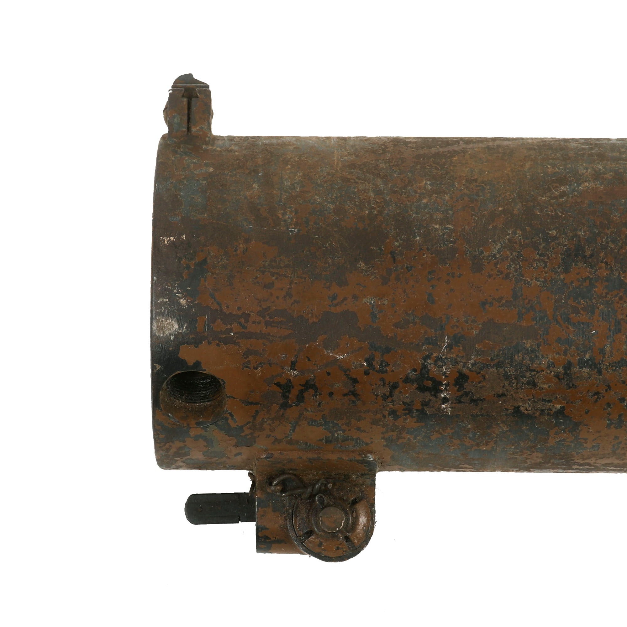 The parts set is in great shape, and looks to contain the lions share of the original components of the machine gun. The parts all appear to be un-altered, with the barrel being original German manufacture with a great bore, bright with crisp lands and grooves. The lock is included as well and is complete, though it is a bit gummed up and will not dry fire without a little help by pushing on the cocking lever. The feed block moves correctly, and the rear sight and other parts of the top cover work great as well.