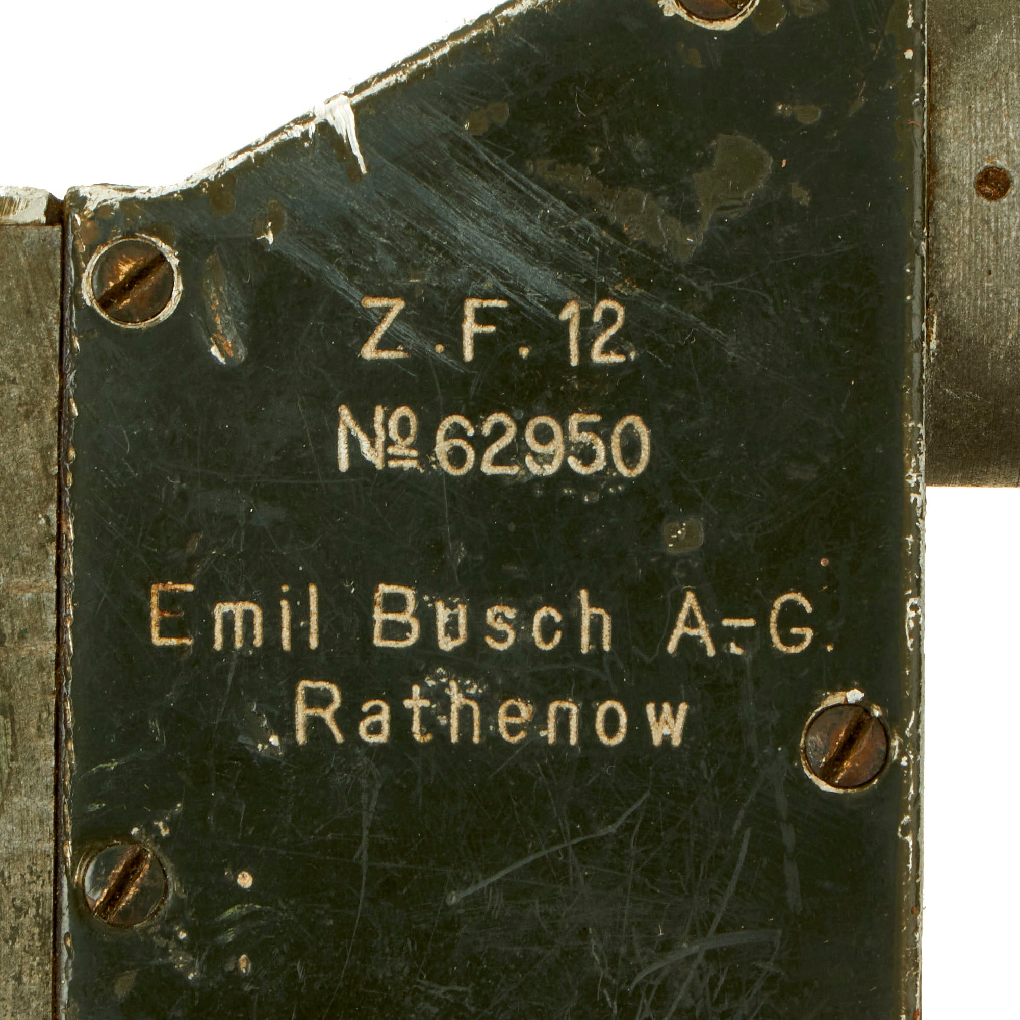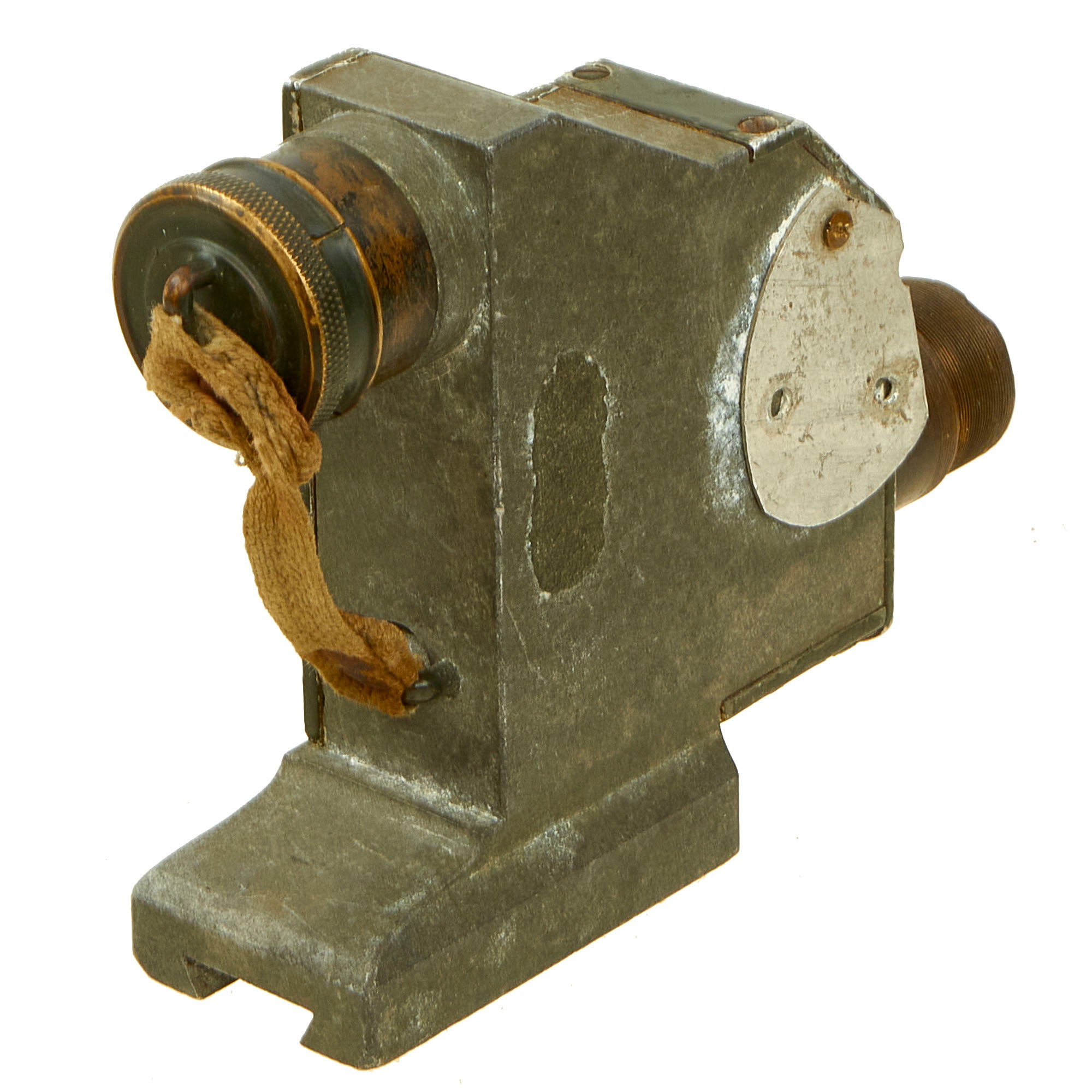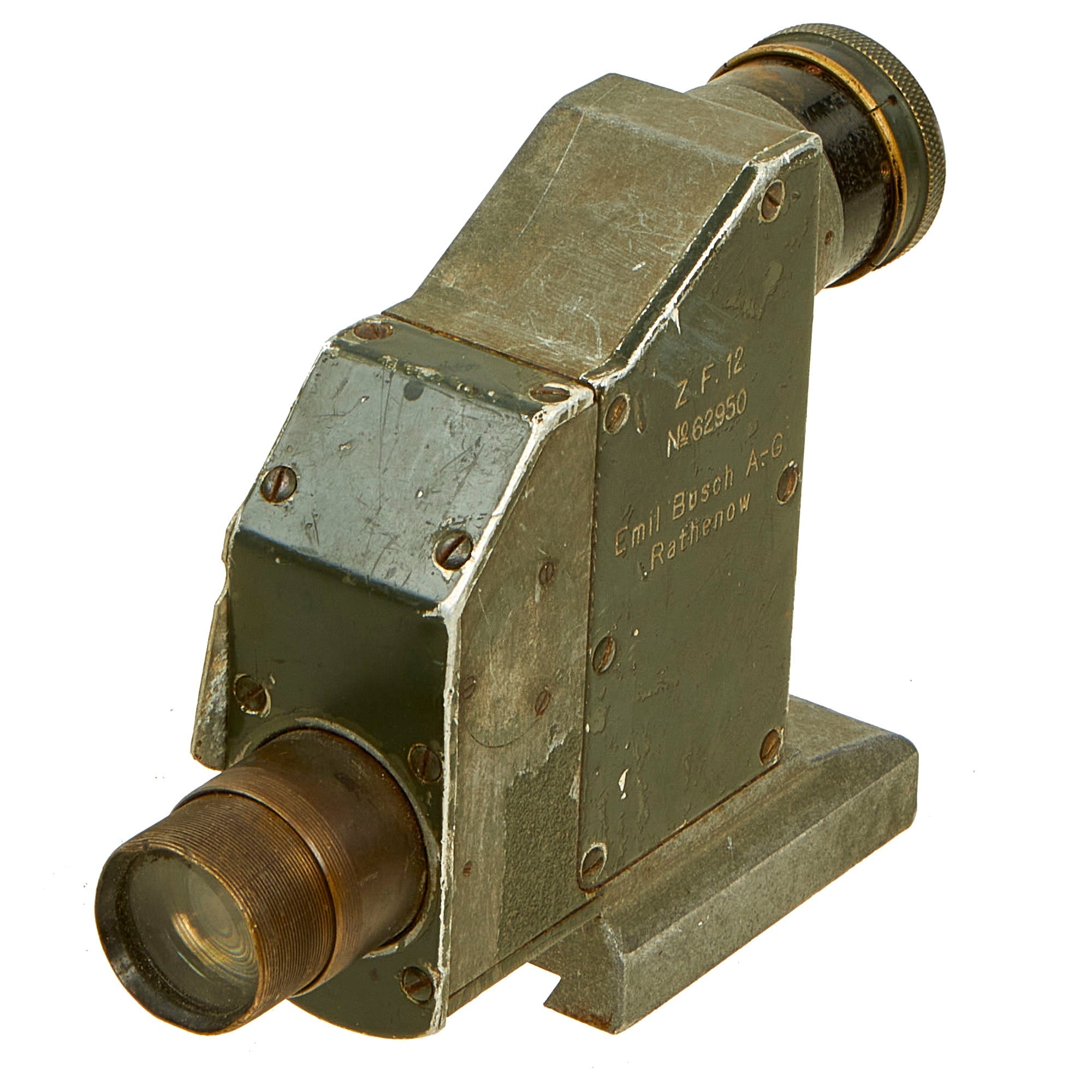 Original Item: Only One Available. This a very nice service used example of the German WWI Zielfernrohr (Remote Target Scope) 12 (Z.F.12), a 2.5X power, optical gun sight for the MG08, 7.92mm, Maxim machine gun, as used by Imperial Germany and her allies during the First World War and beyond. It is marked on the side with the number designation, serial number, and maker information: