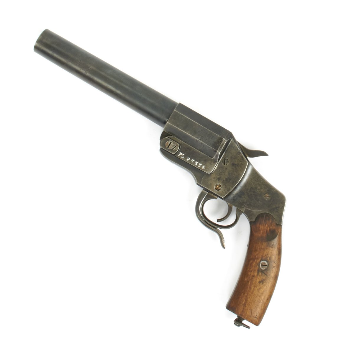 These were used by the German Military throughout both world wars, being used when signalling to German soldier to go "over the top" when leaving their trenches and engaging Allied forces. German aviators often carried this type of flare pistol to shoot at British aircraft and then-hydrogen filled balloons.