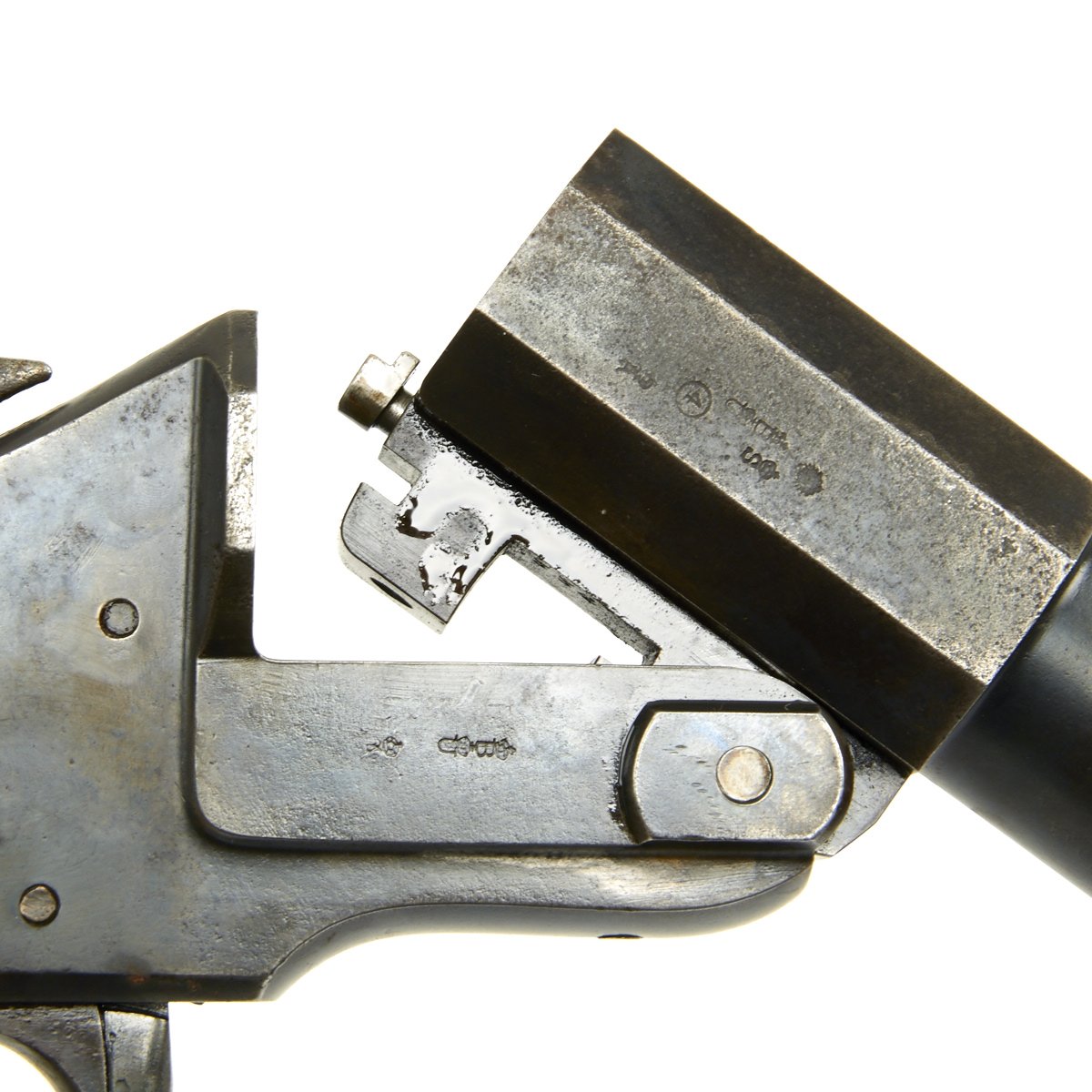 Original Item: Only One Available. Very good condition WWI Imperial German Model 1894 Hebel flare pistol in the standard 26.5mm caliber with a 9 inch barrel. Left side of frame is marked FL 25334 for the maker Fritz Lagenhahn, serial number 25334. There are also several small proof marks on the both sides of frame and barrel.