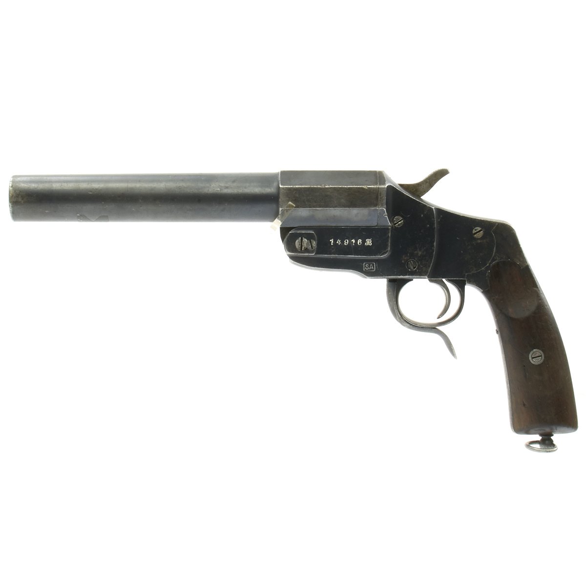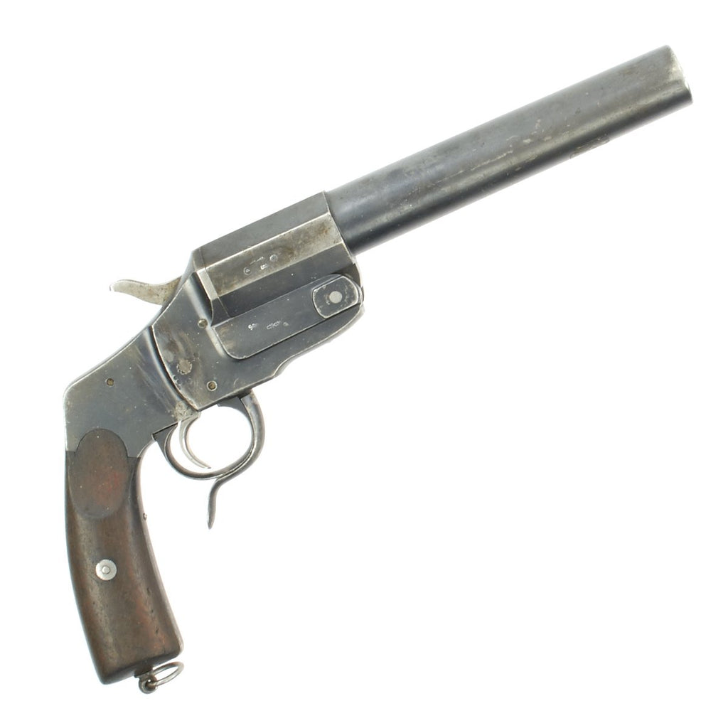 These were used by the German Military throughout both world wars, being used when signalling to German soldier to go "over the top" when leaving their trenches and engaging Allied forces. German aviators often carried this type of flare pistol to shoot at British aircraft and then-hydrogen filled balloons.