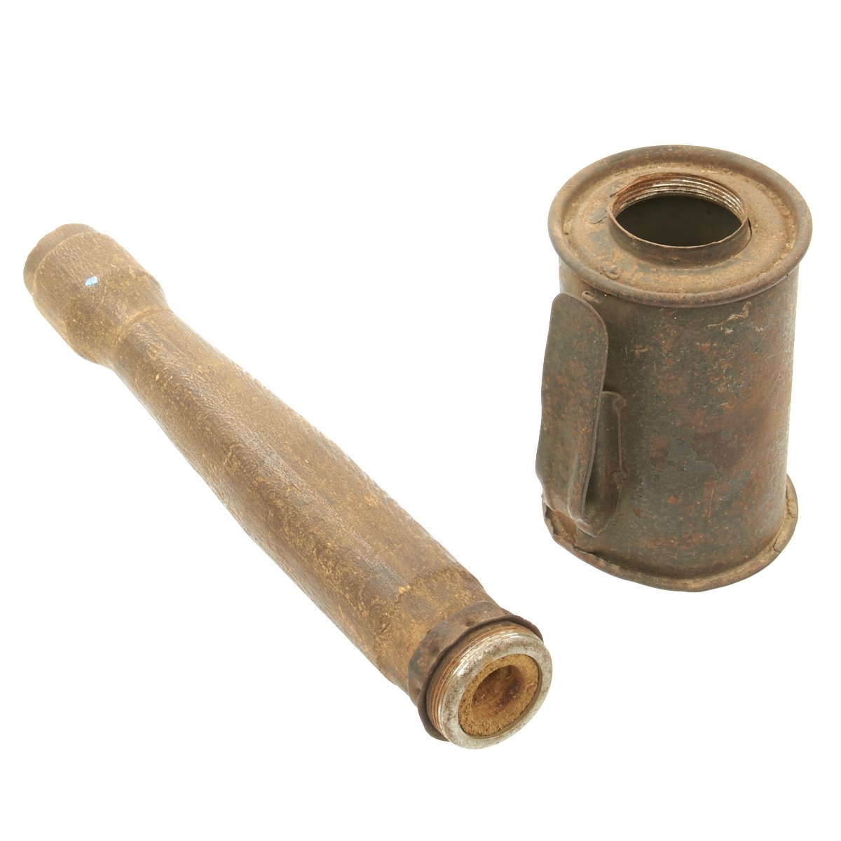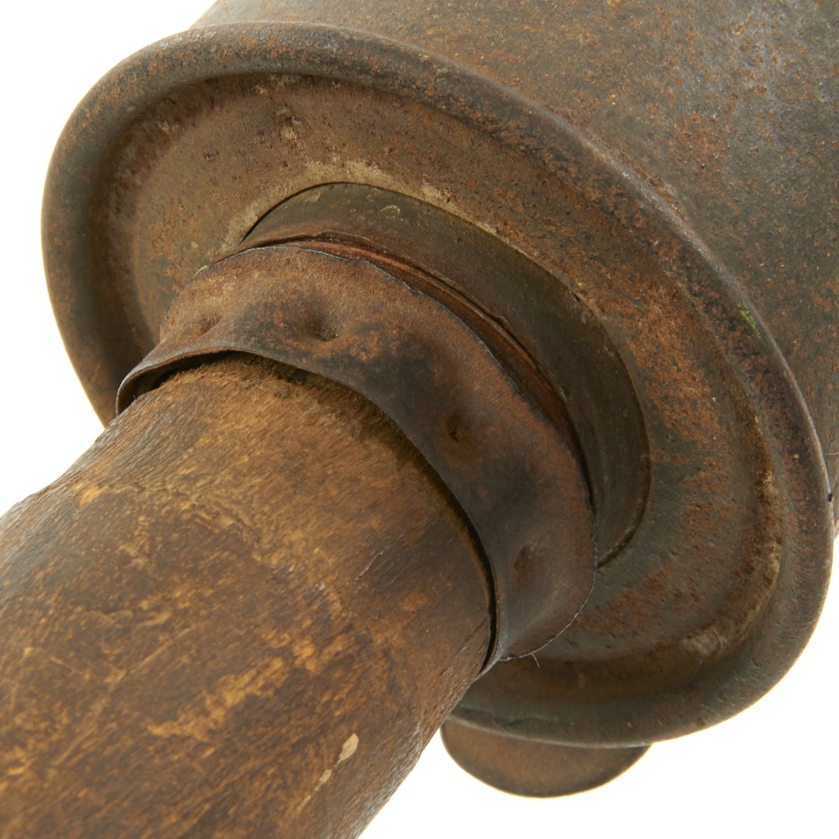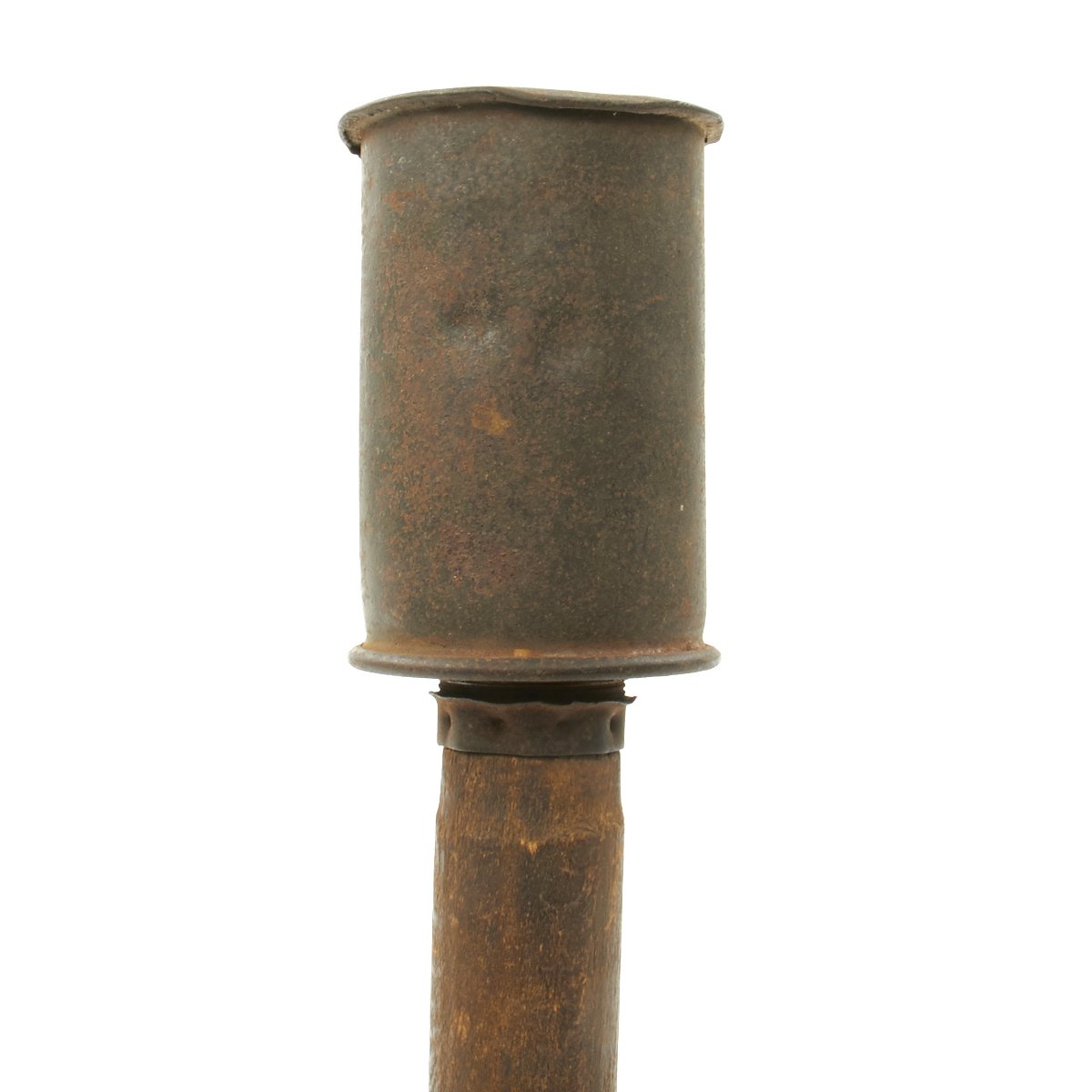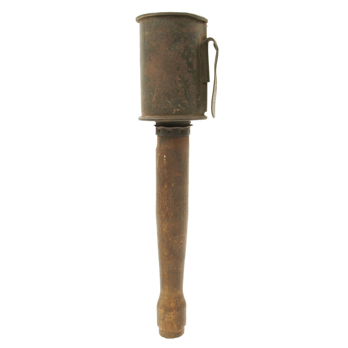 Original Item: Only One Available. This is a very good condition totally genuine BATF approved inert German WWI M16 Stick Grenade known as the Model 1916 Stielhandgranate. This example has a screw off head with belt hook, and a hollow wooden handle with a cup-shaped inlet in the bottom, for holding the ceramic pull handle. The ceramic bead and pull string are unfortunately missing, as is the paper wrapping that held it in place. The side of the handle still has trades of the original 5 1/2 Sek. EH markings. It stands 14 inches tall with a 4 1/4 inch long warhead. Overall condition is good, though worn from age. The original markings on the warhead are unfortunately worn away.