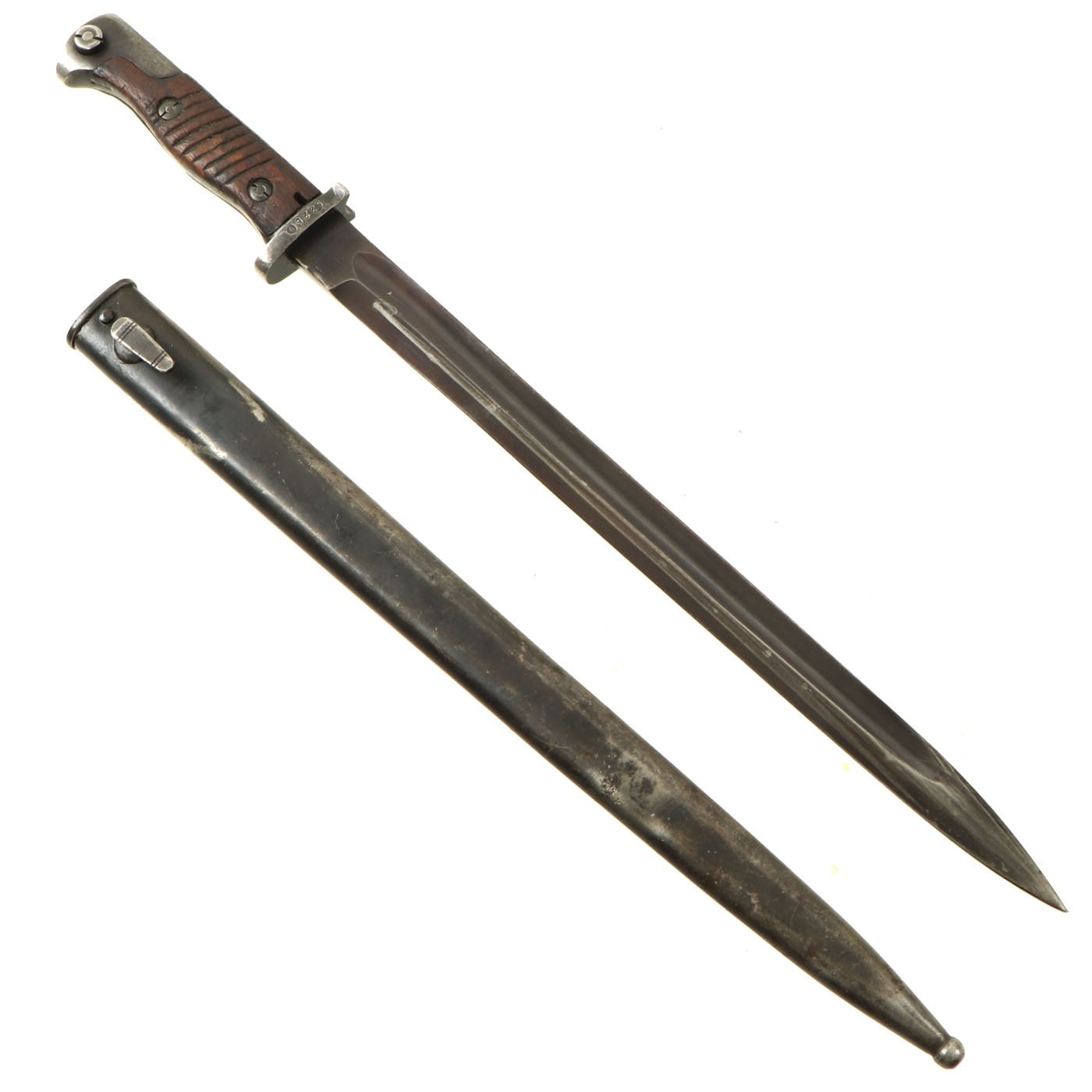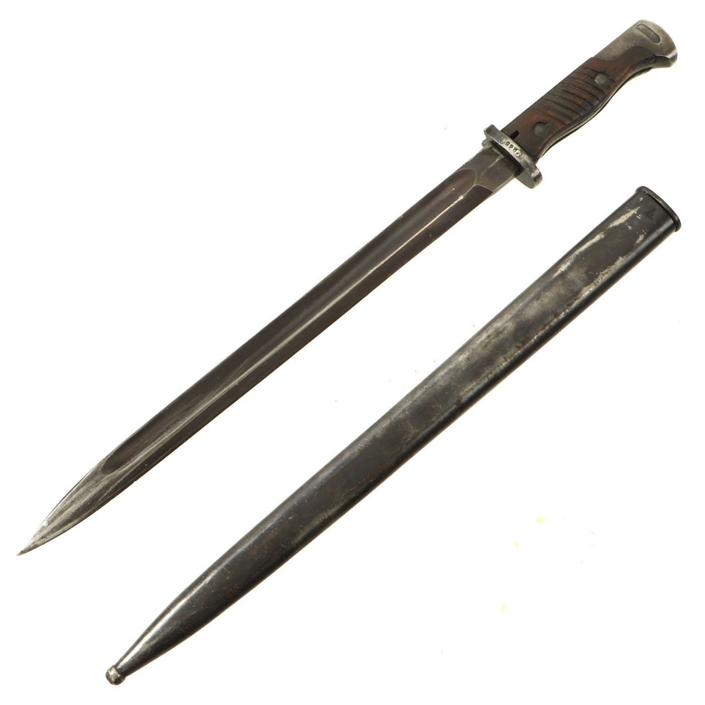 Original Item: Only One Available. This is an interesting example of the M-1898/05 Bayonet (Seitengewehr), which was the most common German Bayonet of the First World War. It was intended for use on the standard issue service rifle of Imperial Germany: the Mauser-designed Gewehr 98 (GEW 98). This version is known as n/A (neuer Art = newer model). This second pattern lacks the first pattern's vestigial muzzle ring (or 'ears') and has a flashguard on the back of the grip.