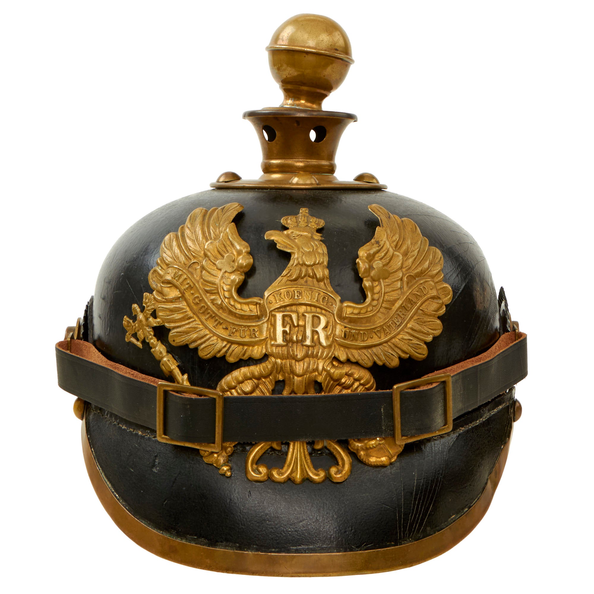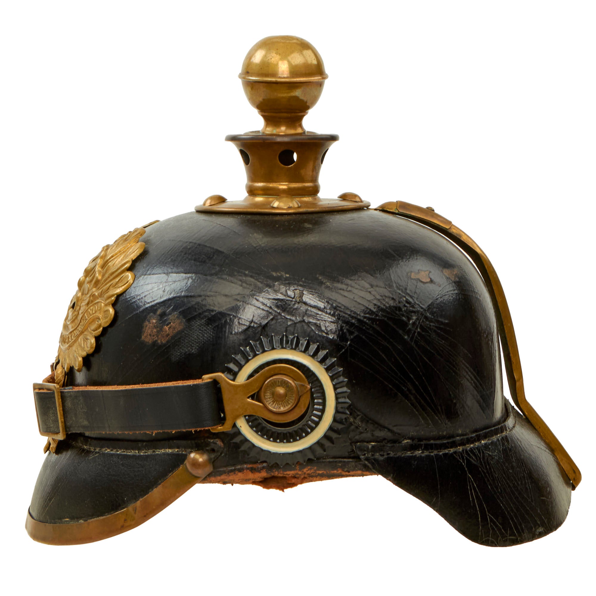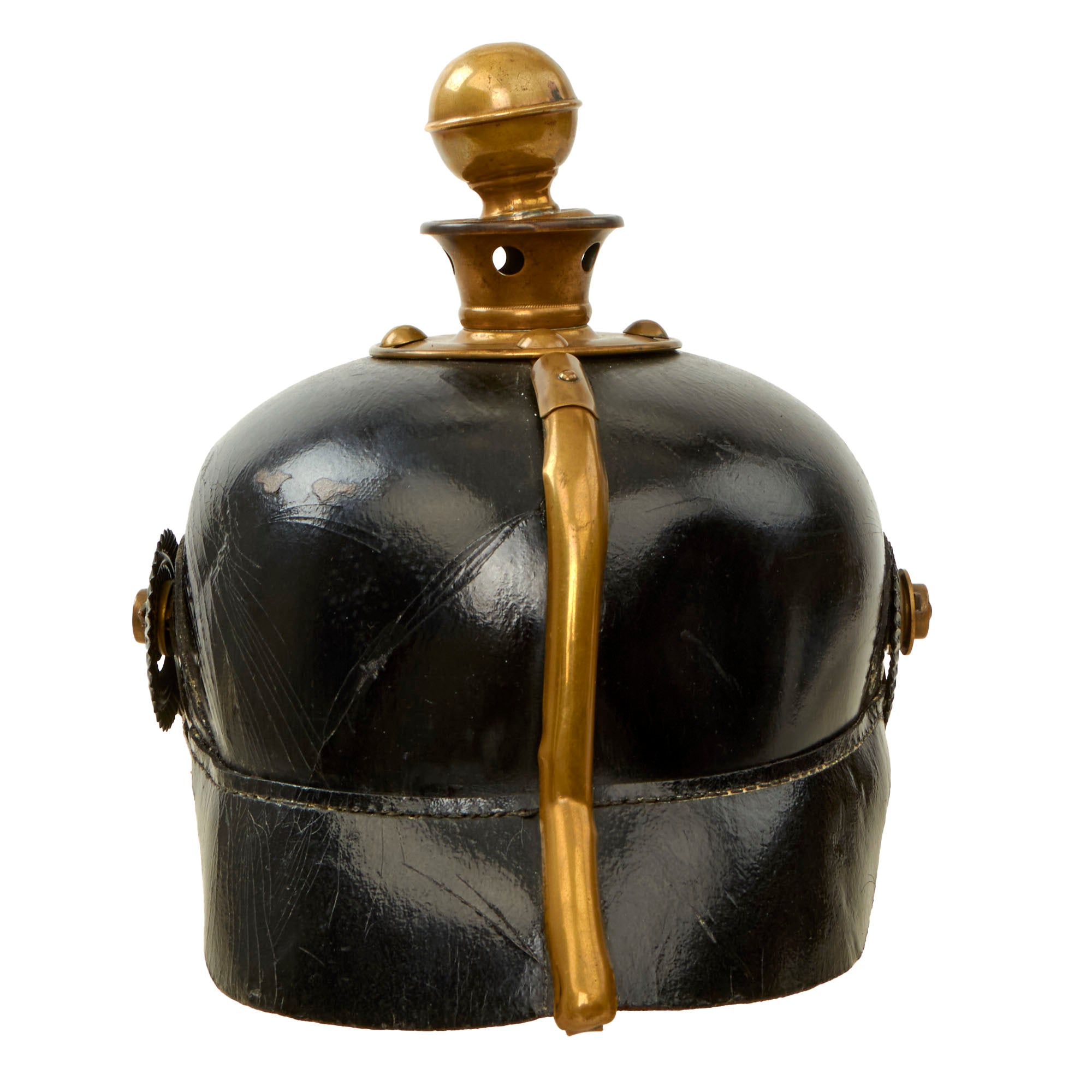 The helmet originally was manufactured as a Pickelhaube but appease to have been reworked as a Kugelhaube in a depot during the war. A very interesting example with great history.