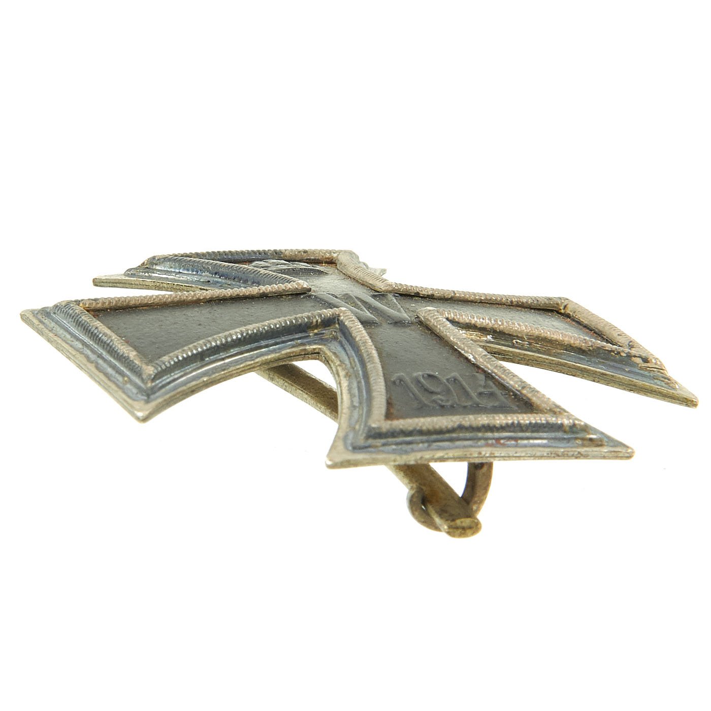 The basic design of the WW1 crosses is a central cross patee struck from iron and mounted in a silver frame which has a raised crenulated decorative border. The obverse of the cross bears the date 1914 under a crowned W monogram. Second class crosses would have a ring at the top where a ring was attached, and had more markings on the back. The first class award, however, was meant to attach directly to the front of the uniform.