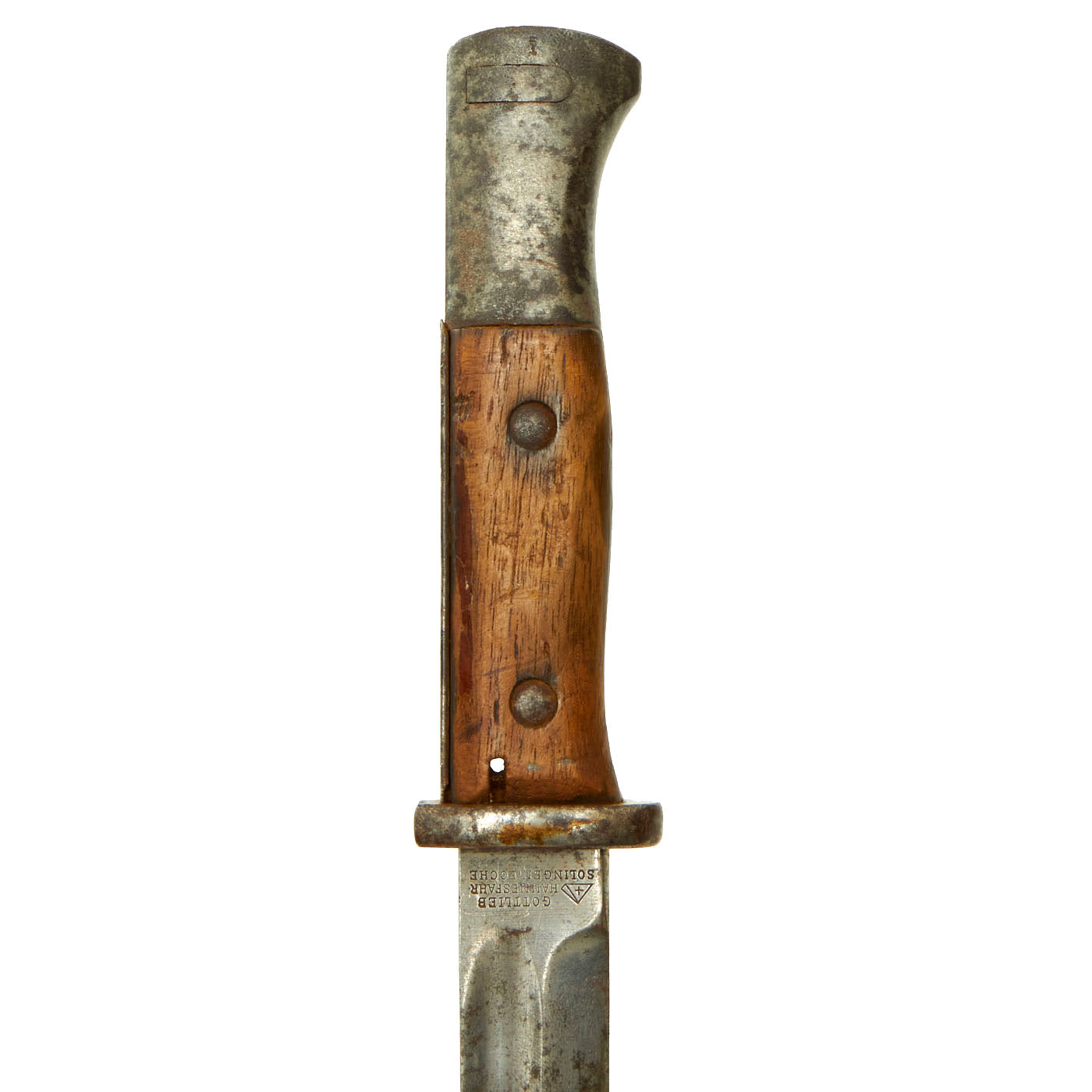 Original Item: Only One Available. This is an excellent example of a M-1884/98 Second Model Bayonet (Seitengewehr), intended for use on the Mauser GEW 98 rifle. This bayonet design is based on the earlier M1871/84 bayonet with a 10 inch blade, and the first model of these were converted from those bayonets. This example was purpose made for the GEW 98, and was not converted. The sawback version of these are very rare, and seldom seen. The third model of the M1884/98 became the standard bayonet for the k98k rifle used during WWII.