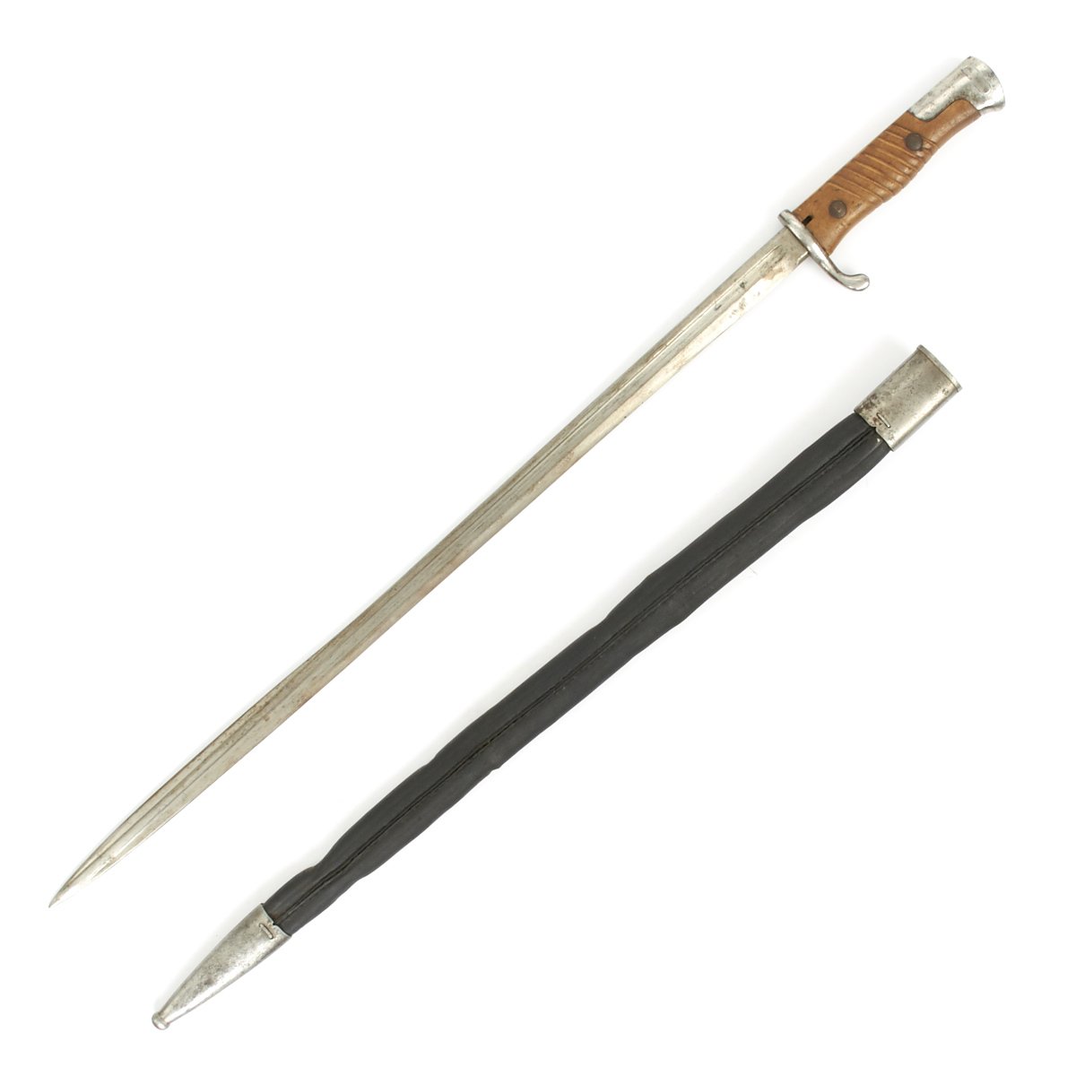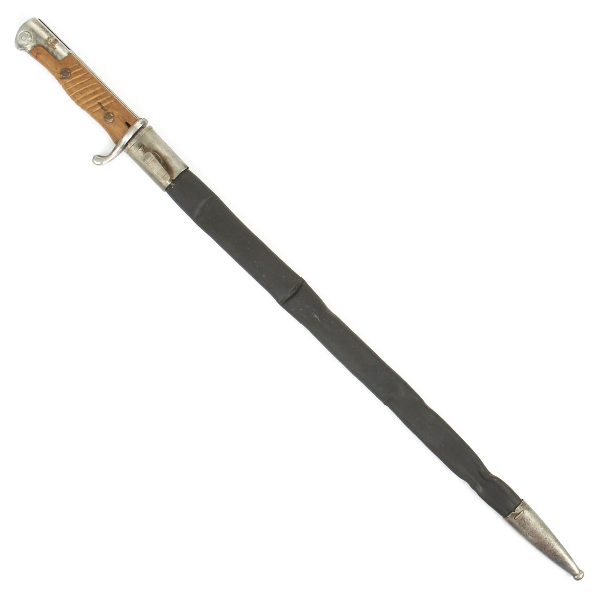 Original Item: Only One Available. In 1898 with the new Mauser bolt action infantry rifle the military adopted this long bayonet which gave an Infantryman the ability to bring a Cavalryman down from his horse due to the bayonets long reach. Of course Cavalry was soon becoming a thing of the past and these long bayonets were being surpassed by different and shorter versions. At the start of WW1 in 1914 this Gew 98 long bayonet was the norm.