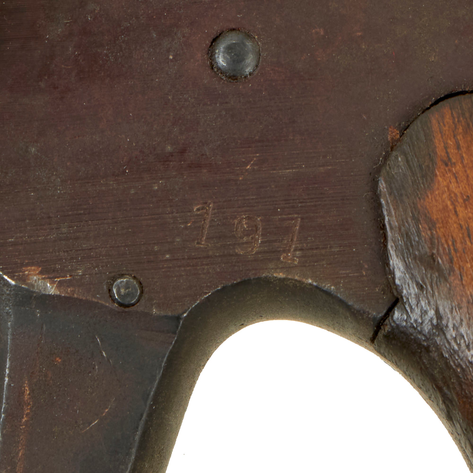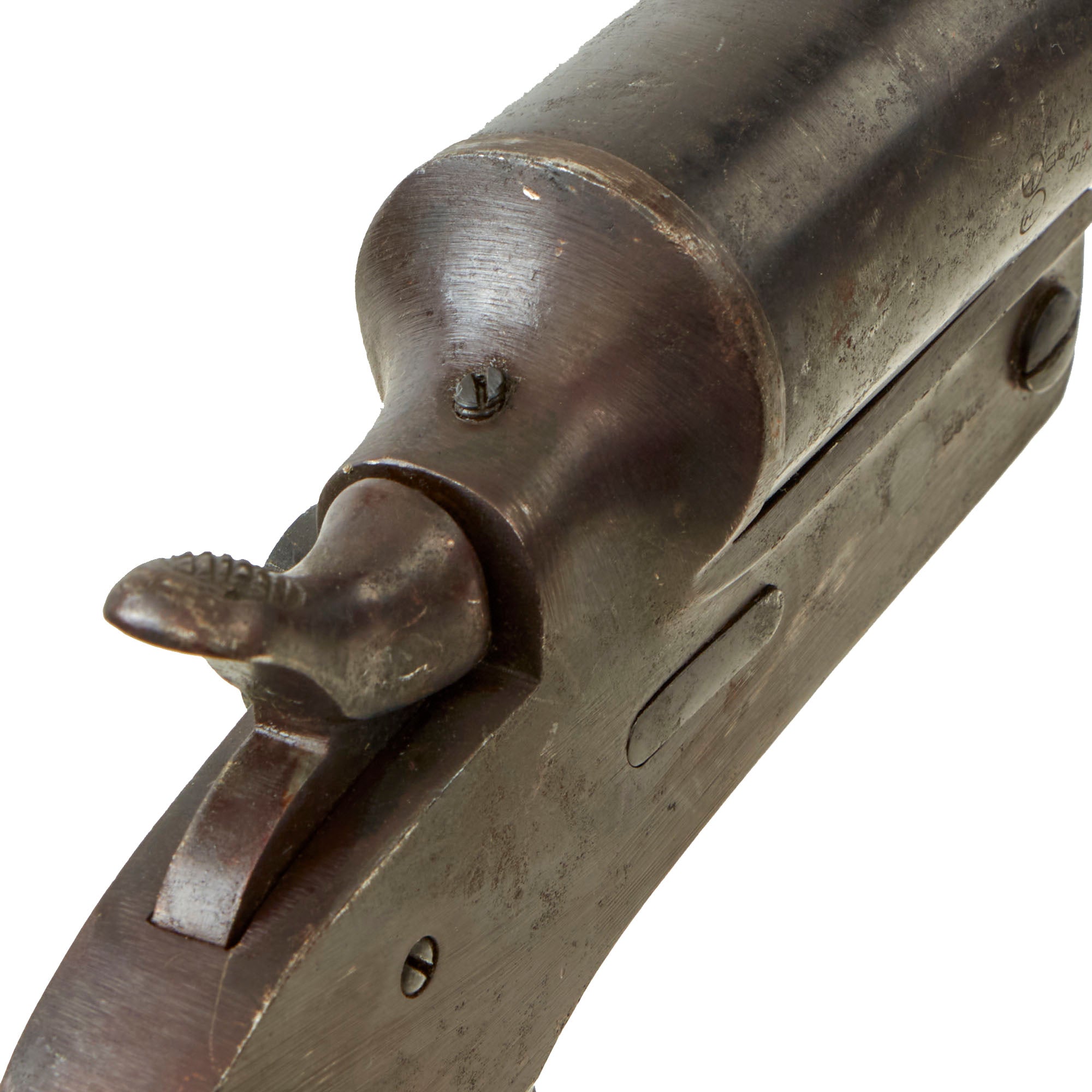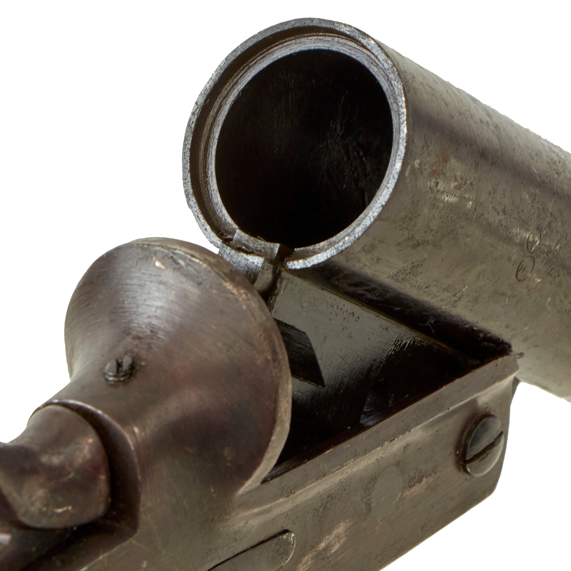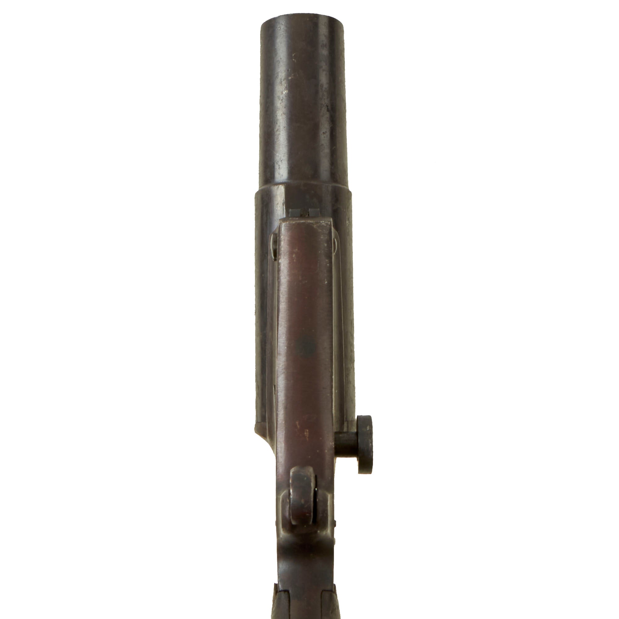 Original item: One of a Kind. This is a fantastic and rare German WWI Druckknopf (push button) style flare pistol, which has had a VERY interesting life. It is covered with various markings from different eras.
