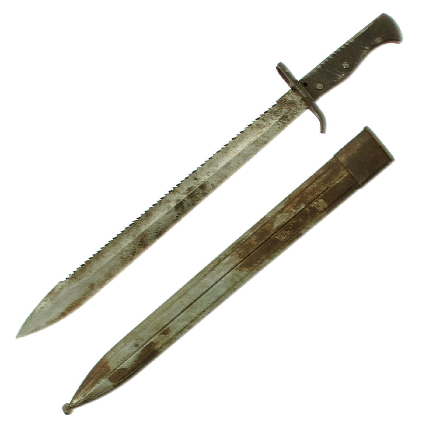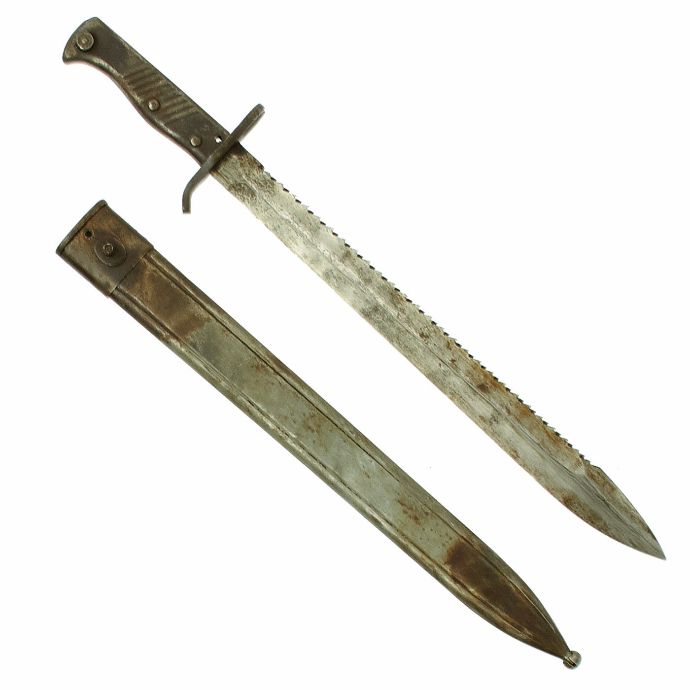 Original Item: Only One Available. German WWI Ersatz butcher sawback bayonets with their original 14" blades are very hard to find today. The classic work by J.ANTHONY CARTER, GERMAN BAYONETS, VOLUME THREE published in 1992 is the complete work covering all types of WWI Ersatz bayonets and cherished by bayonet collectors everywhere.