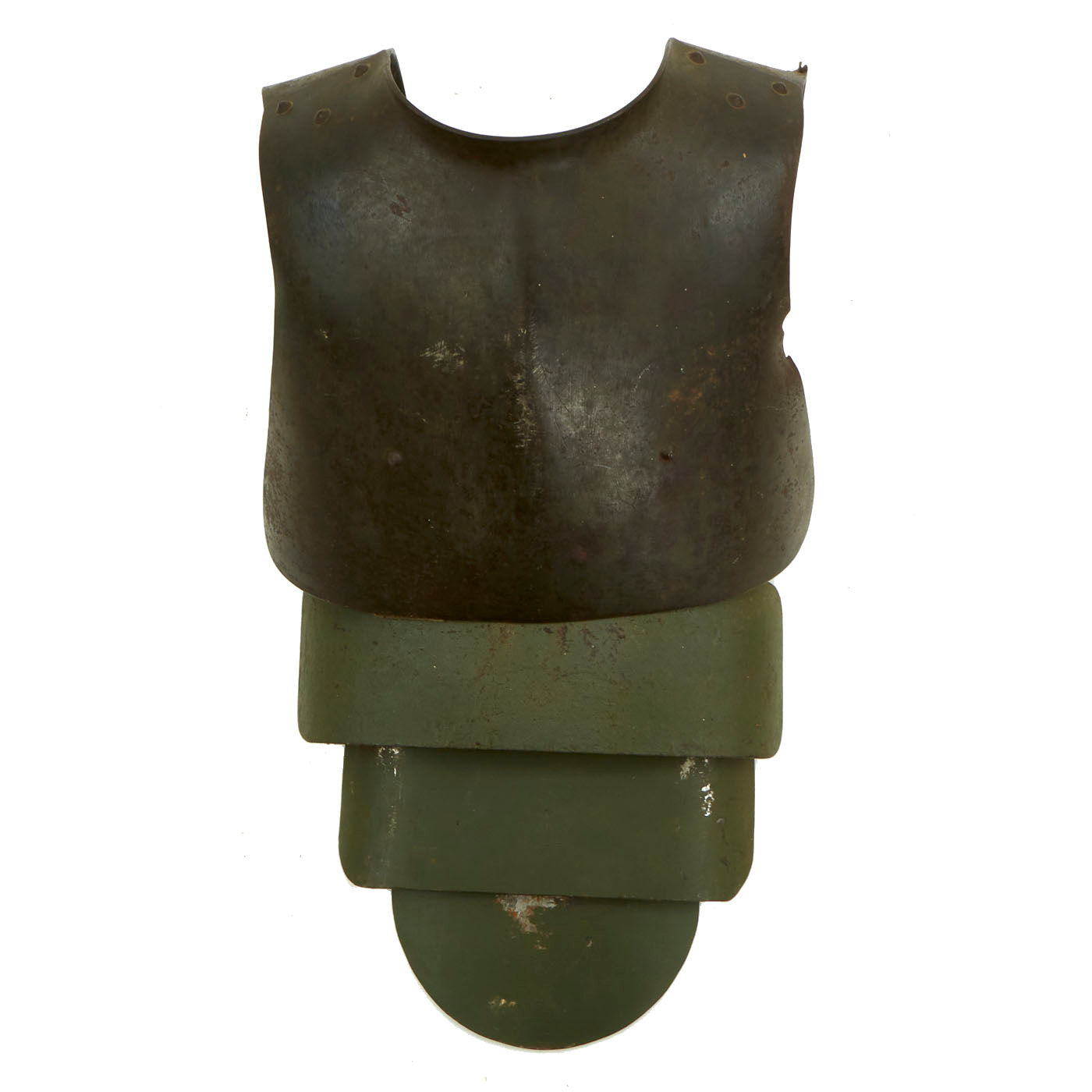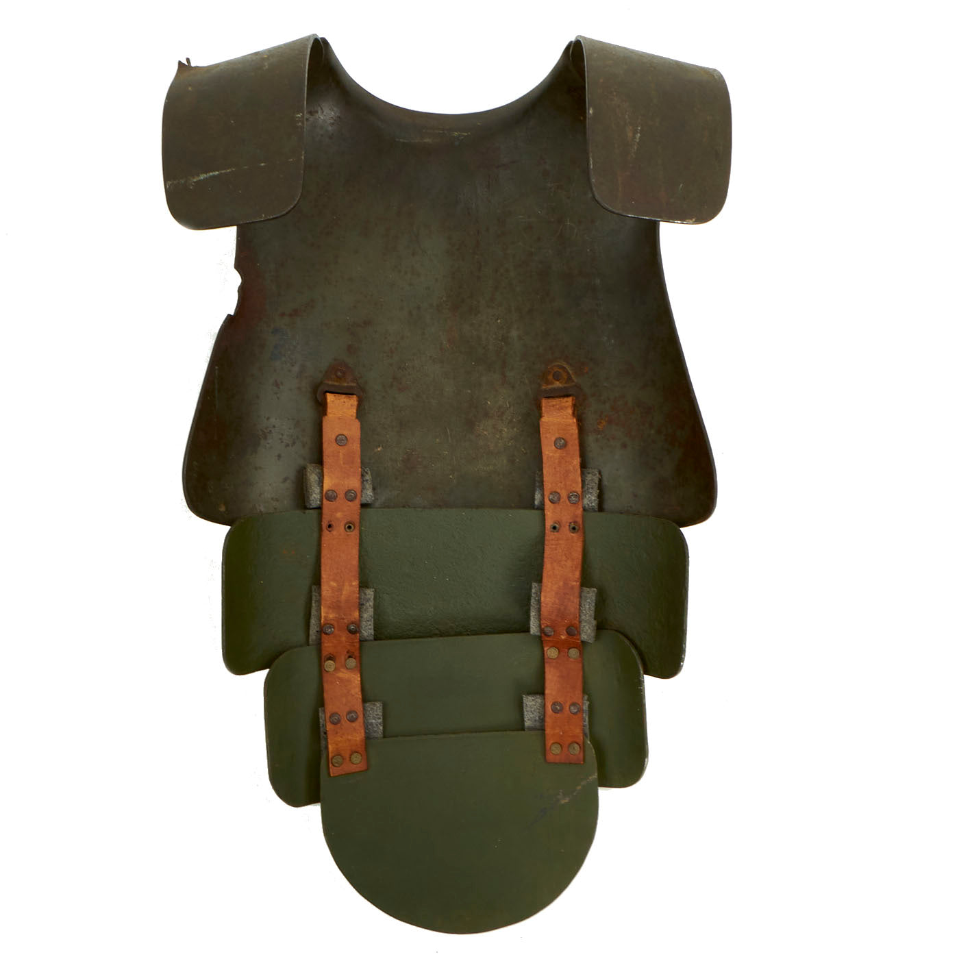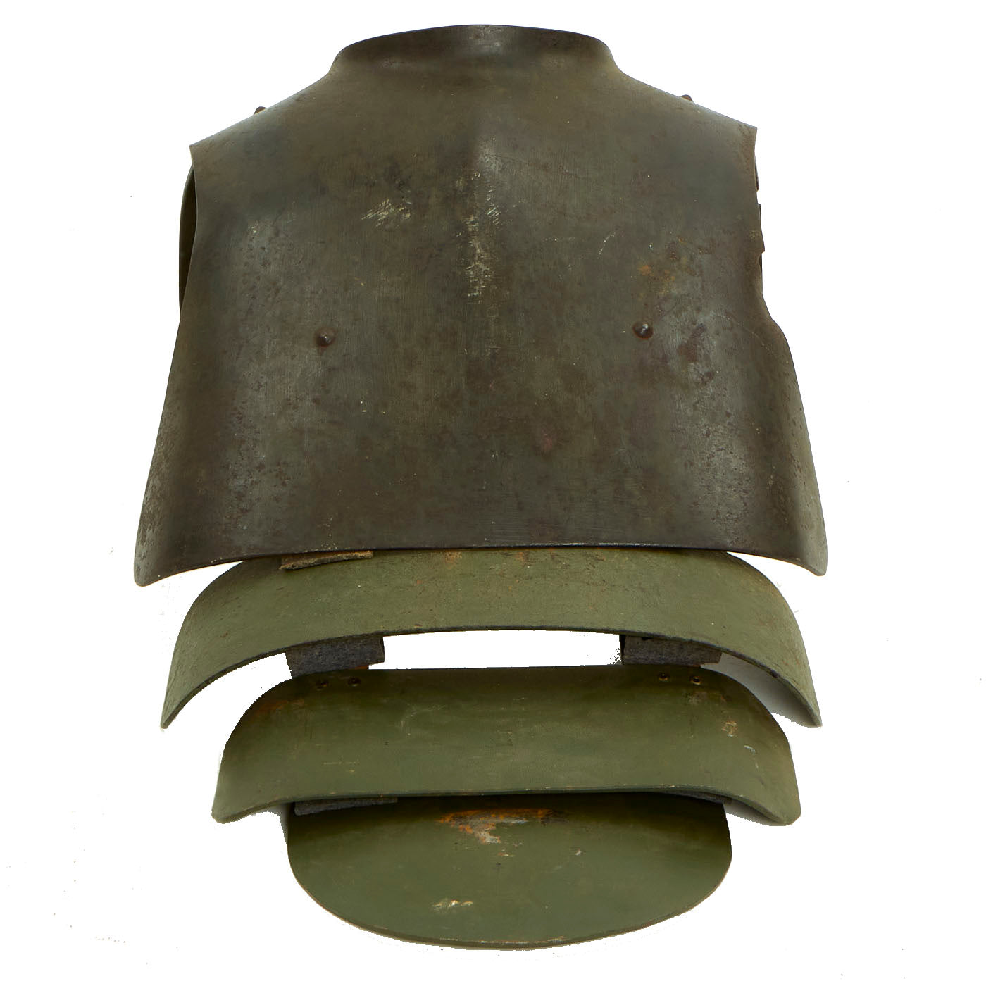 Original Item: Only One Available. Fantastic condition body armor Steel breastplate. This plate has three additional high quality replacement interlinking abdominal and groin plates, all connected by two canvas straps, and suspended from the wearer's shoulders via the fitted curved panels attached to this breast plate. Each plate had additional rectangular-shaped blocks of thick felt added to deaden contact noise between the plates.
