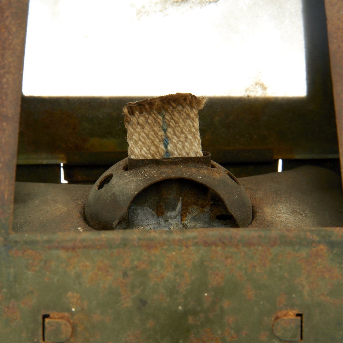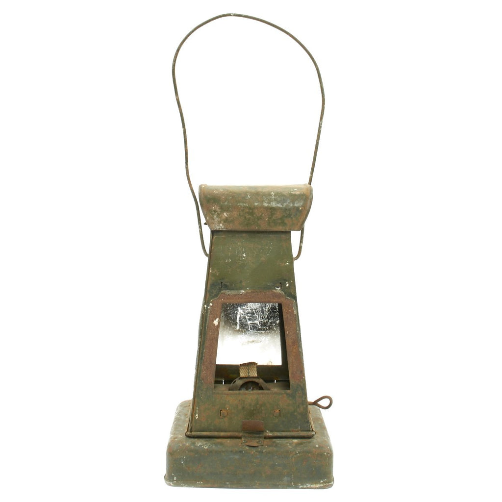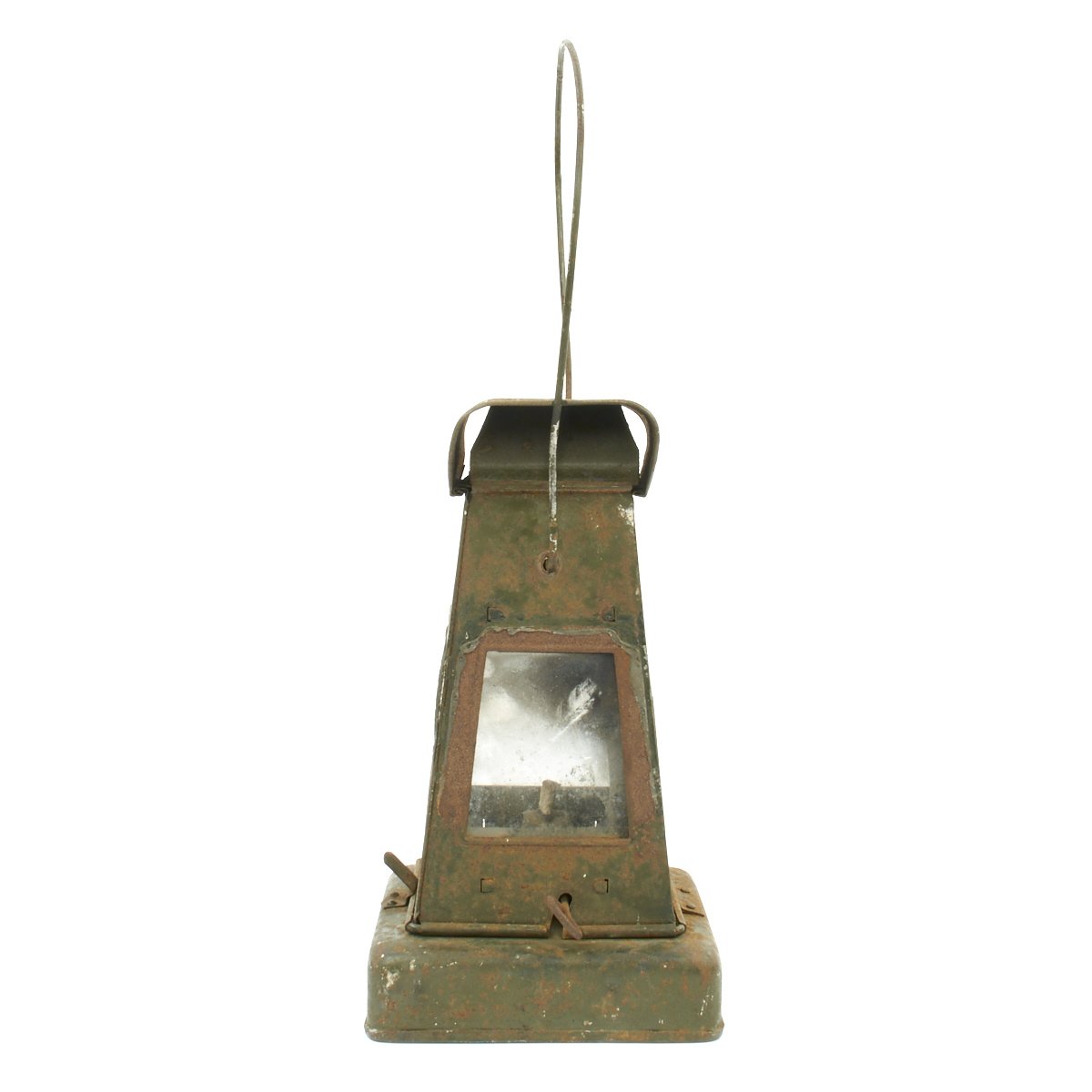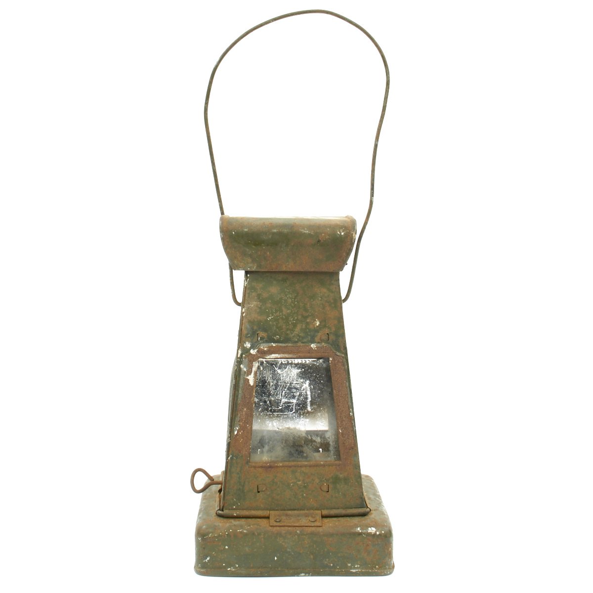 Original Item. Only One Available. Purchased together with a WW1 Collection from Belgium and imported to New Jersey. Apparently this is a classic design Germany Trench lamp from the WW1 period made of sheet steel in a lighthouse shape. One of the four glass panels is now absent but the burner and wick are all intact and this may even function today as it did 100 years ago. The height adjustment for the wick is definitely still functional