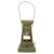 No visible markings, the entire tower is hinged so it is easy to refill the oil tank. Comes complete with its stout wire carry or hanging handle, which is a bit misshapen. The lamp is about 6 inches wide at the base, and stands just over 10 inches tall.