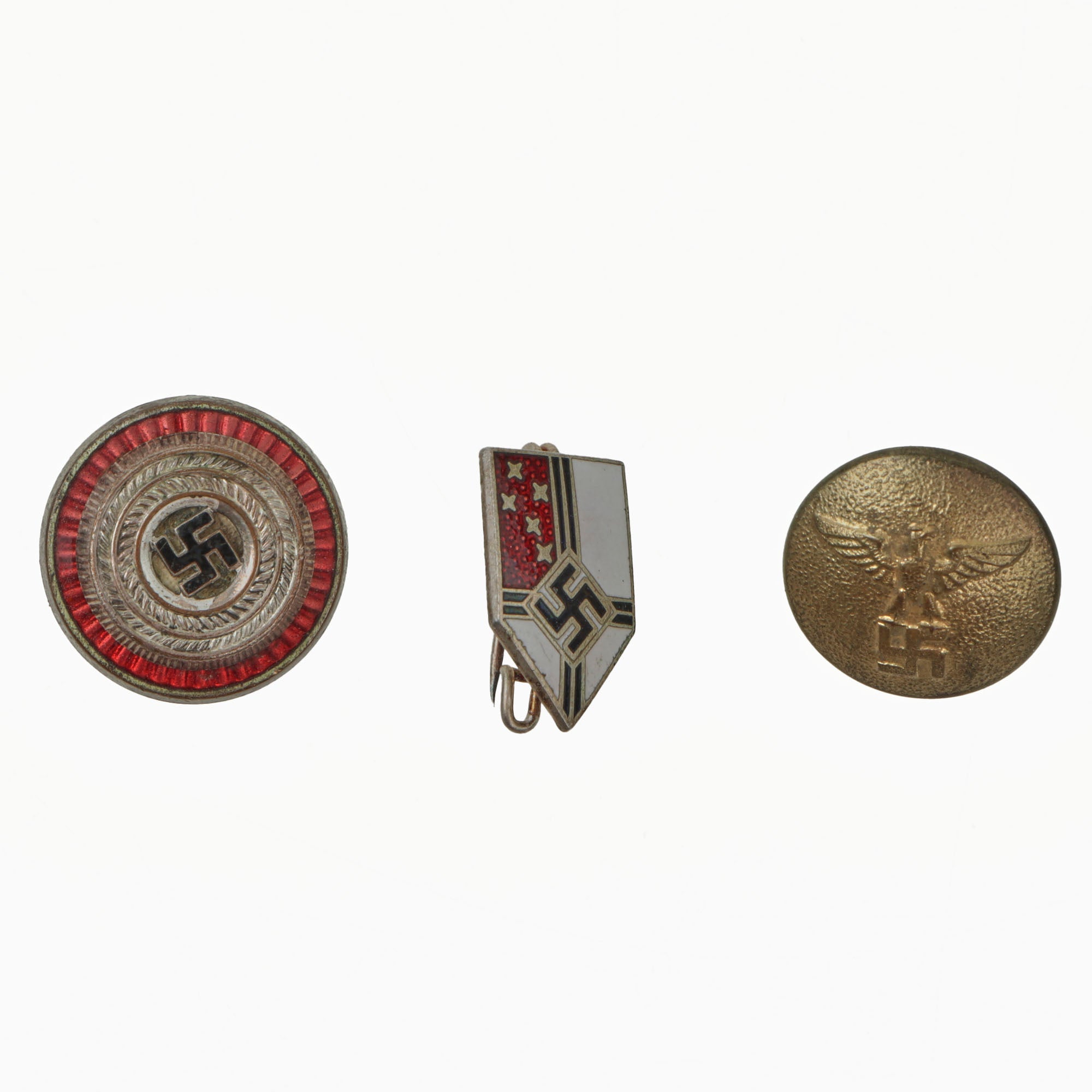- One NSDAP Gold Uniform Button, RZM marked on the back.
