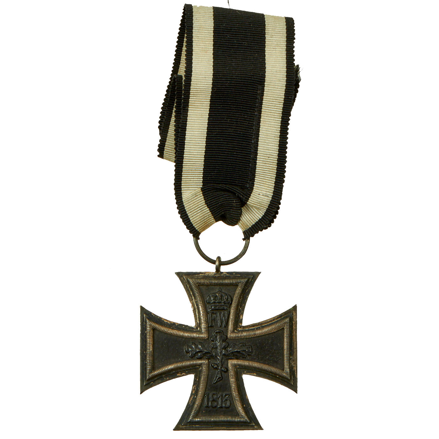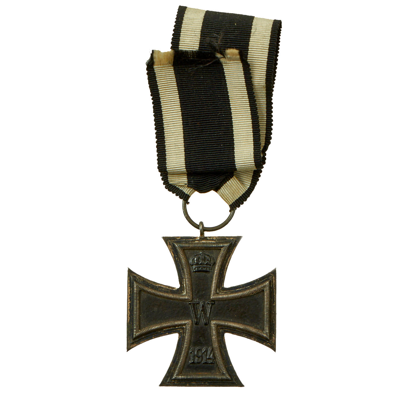 - One Imperial German WWI Iron Cross 1914 2nd Class Medal (Eisernes Kreuz II. Klasse 1918) with Ribbon. Marked W on the hanger Ring, for Wagner of Berlin. The paint is still almost 100% and the silver is still present, with a lovely tarnished patina.