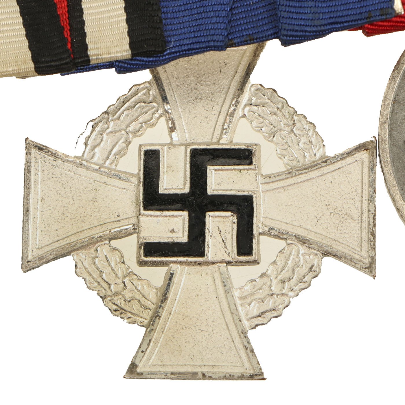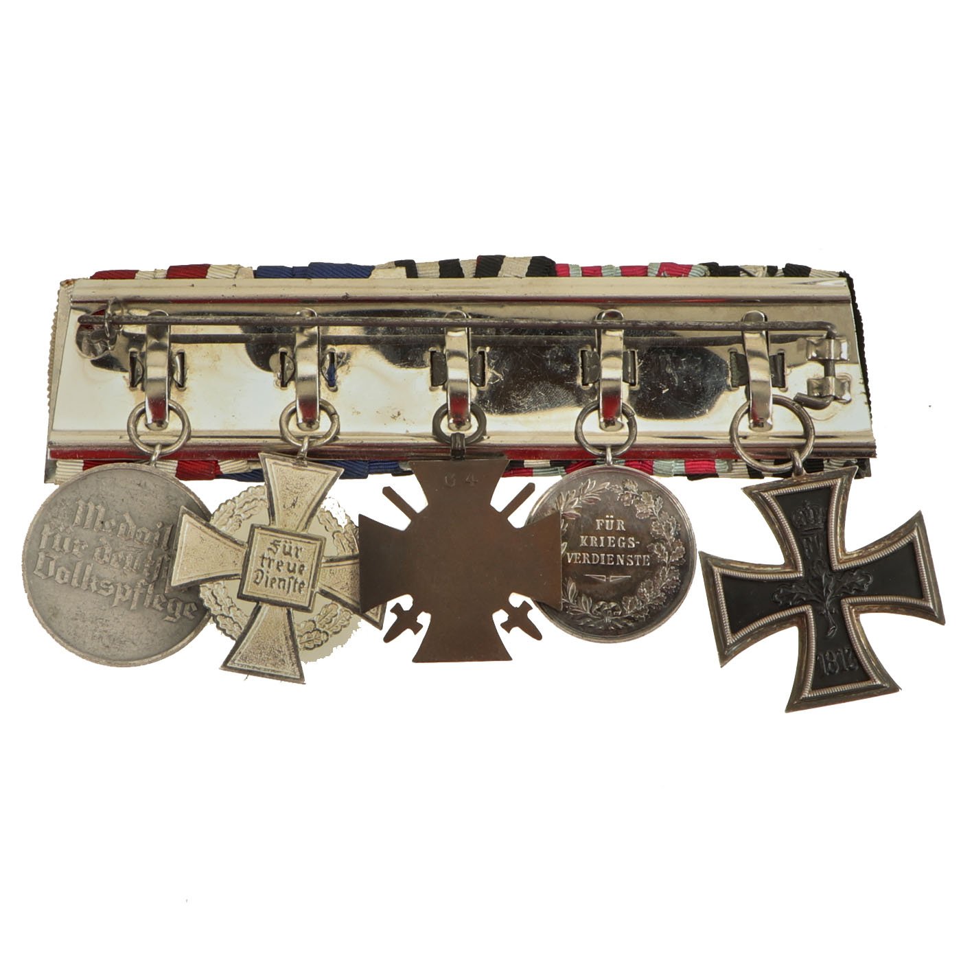 Original Item: One-of-a-kind. This is a very nice genuine medal bar, owned by a German soldier who fought during WWI, and was apparently from the Grand Duchy of Hesse. He then served again during WWII, earning additional decorations. The colors on the ribbons are quite nice, making this a very attractive piece.
