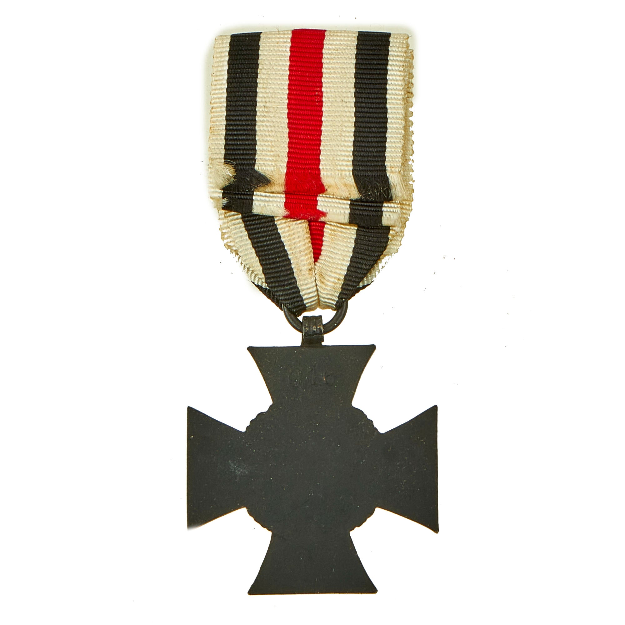 - One Rare Pre-WWII German WWI Honor Cross of the World War 1914/1918 (Hindenburg Cross) Medal For Widows and Parents of Fallen Soldiers. Out of the 8 Million Crosses awarded, less than 10% were of this type, which has a magnetic black finished cross, and a ribbon without the outer black stripes. This example is in excellent condition, and is maker marked O16 on the back.