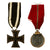 The basic design of the WWI crosses is a central Tatzenkreuz (cross pattée) struck from iron and mounted in a silver frame which has a raised crenulated decorative border. The obverse of the cross bears the date 1914 under a crowned W monogram. The reverse bears an oak leaf cluster in the center, with the date of the decoration’s institution 1813 underneath, and the crowned FW initials of Frederick William on the top arm above the oak leaf cluster. Suspension for second-class (EK II) types is by means of a ring, and frequently this ring bears a maker's stamp.