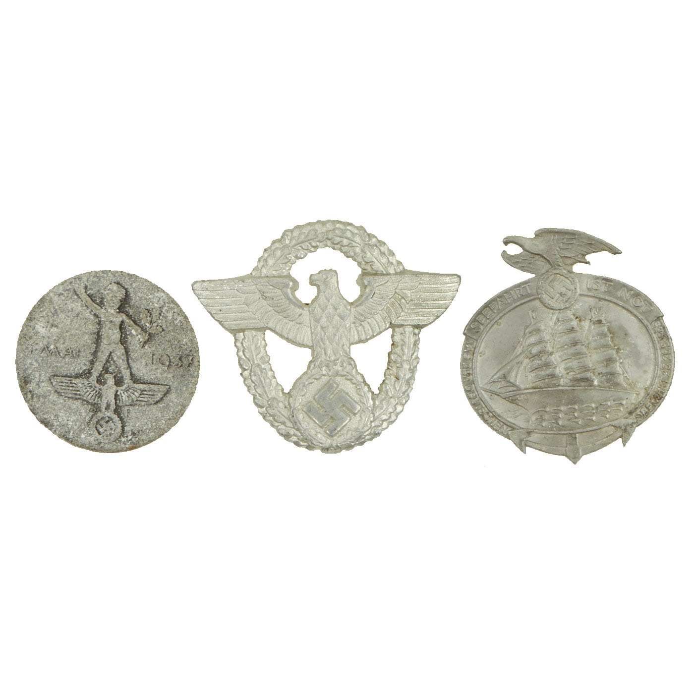 - One German WWII aluminum 1935 SEEFAHRT IST NOT (Seafaring is necessary) Tinnie. This was given out for German Seafaring Day (TAG DER DEUTSCHEN SEEFAHRT), May 25-26 1935. Maker marked PAULMANN & CRONE / LÜDENSCHEID.