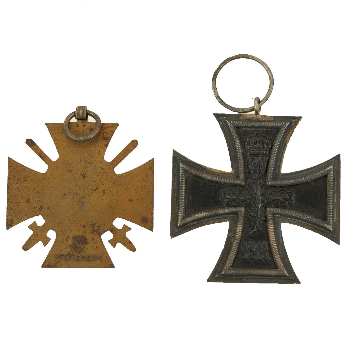 The basic design of the WW1 crosses is a central cross patee struck from iron and mounted in a silver frame which has a raised crenulated decorative border. The obverse of the cross bears the date 1914 under a crowned 'W' monogram. Reverse bears an oak leaf cluster with the date of the decoration’s institution, 1813 underneath - the crowned initials of Frederick William are in the top arm above the oak leaf cluster. Suspension for second-class types is by means of a ring, and frequently this ring bears a maker's stamp.