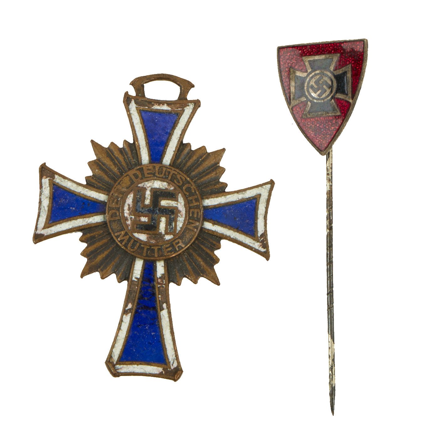 - One German WWII Cross of Honor of the German Mother in Bronze (3rd Class), in good condition, missing ribbon.