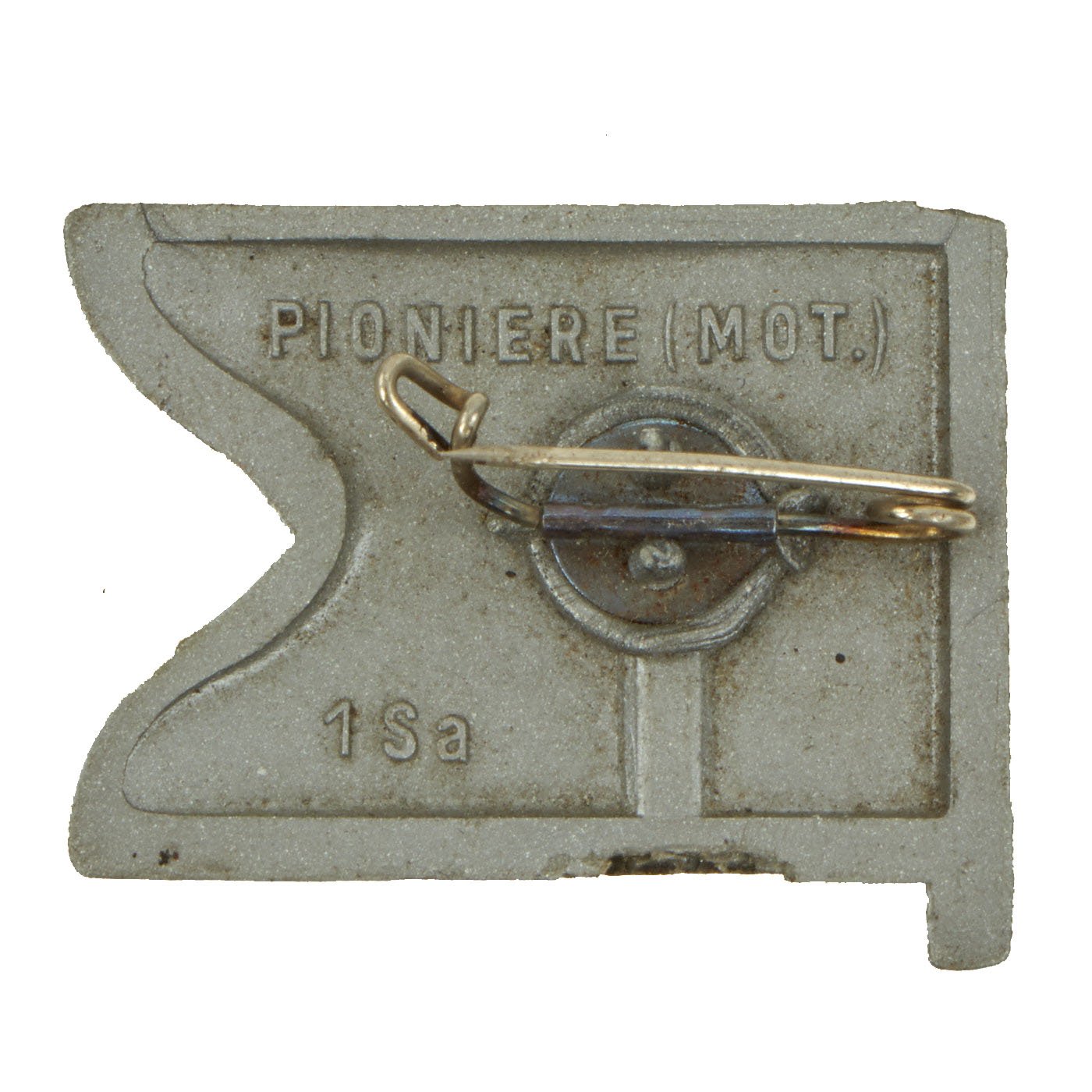- One German WWII Motorized Pioneer Pennant Flag Tinnie, plastic with a pinback.