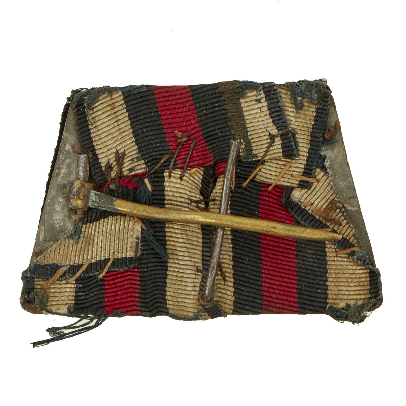 - One German WWI Honor Cross of the World War 1914/1918 (Hindenburg Cross) Medal without Swords, for actions not directly related to combat. Attached to small metal ribbon bar with pinback.