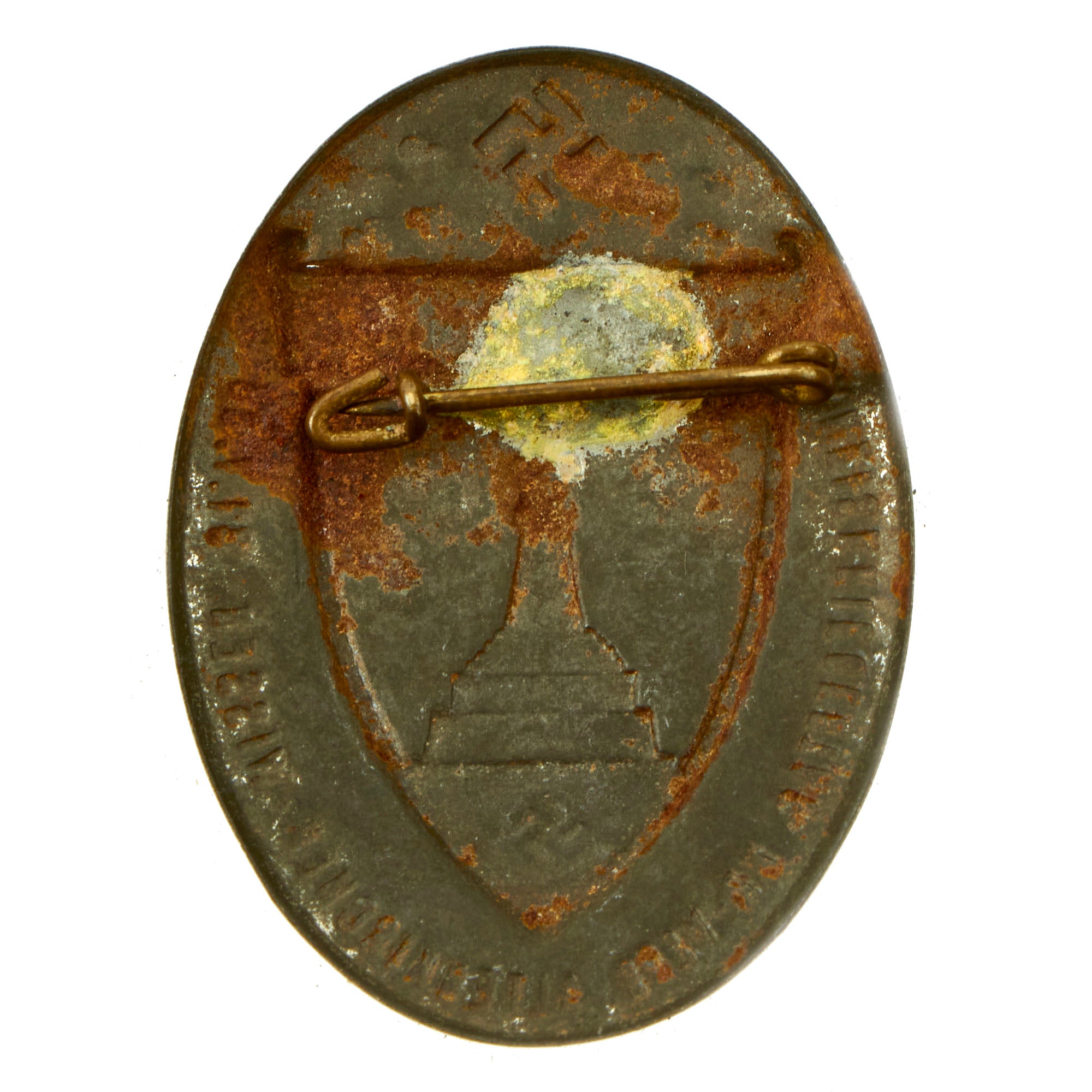 - One German WWII NS-RKB Veteran's Association Event Tinnie for "KREISKRIEGERTAG" 31.7.38. Made from plated stamped steel, with a functional pinback.