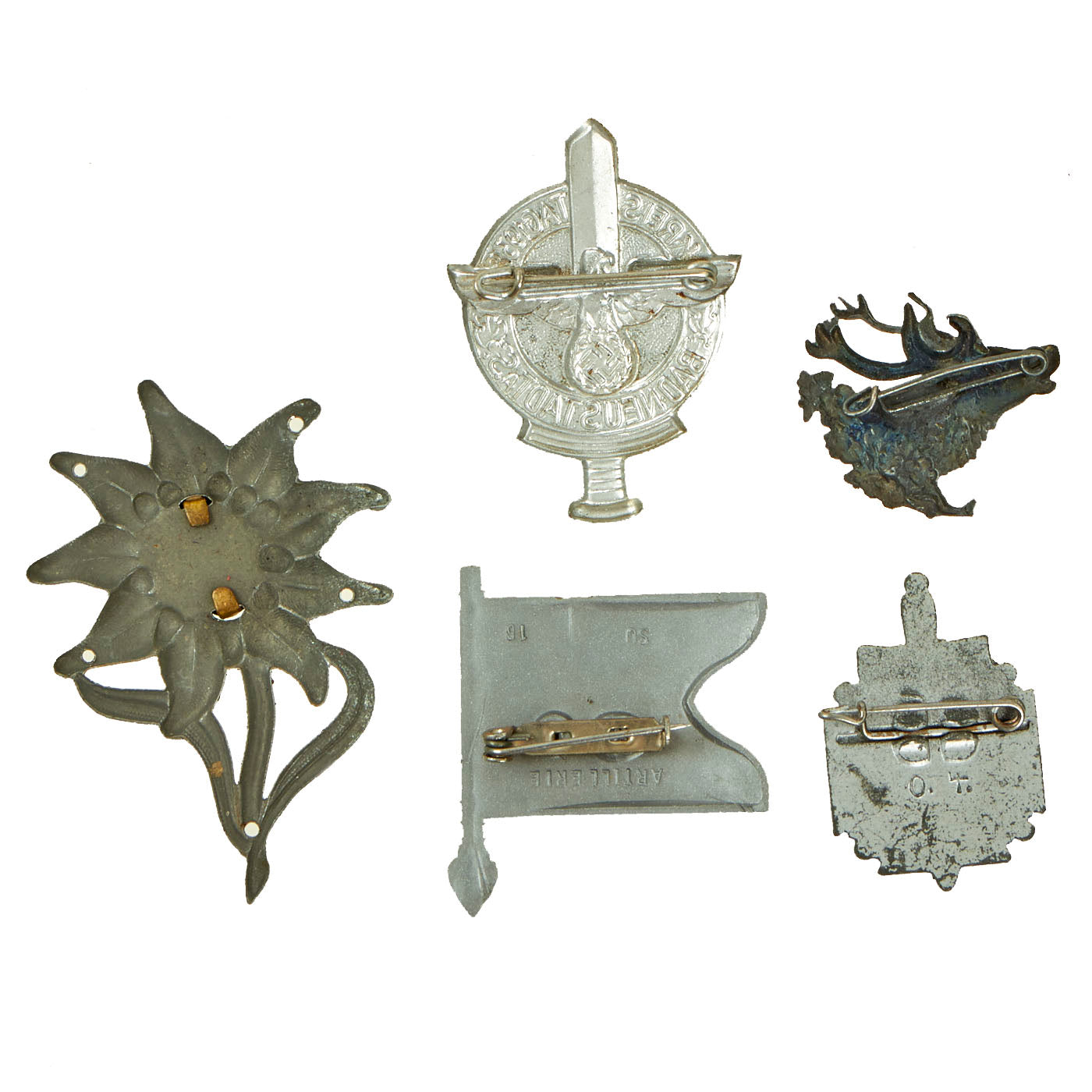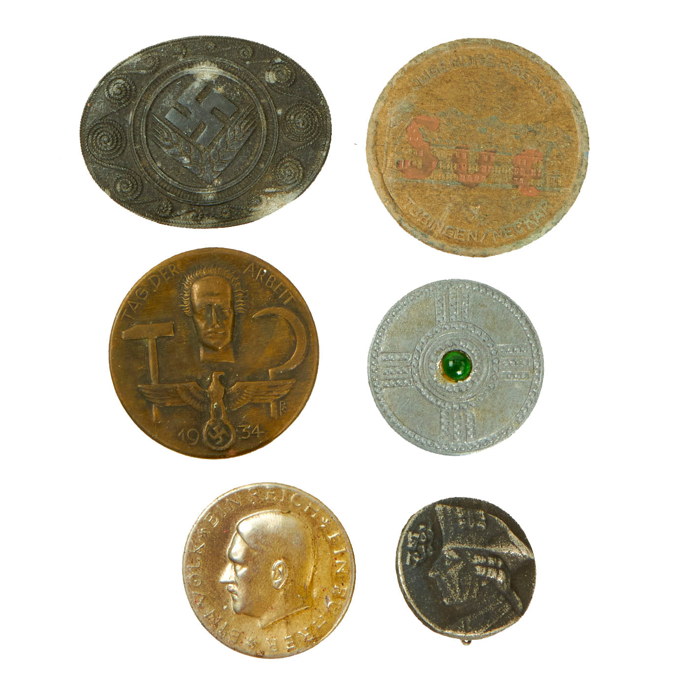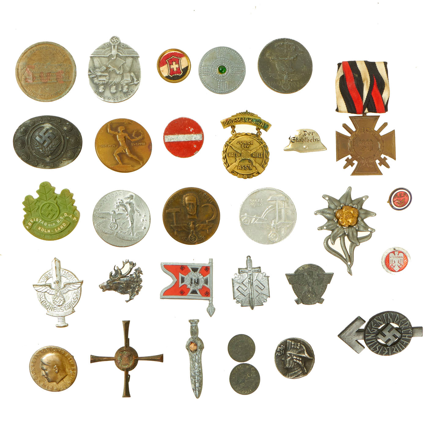Original Items: Only one set available. Acquired directly from a veterans family at a recent military show. This is a great set of German WWII era Tinnies and other collectibles, acquired when the soldier was overseas in Germany. There are 30 in this set, though some are broken and missing pieces, which have fallen off over the years. Please see photos for finer details.