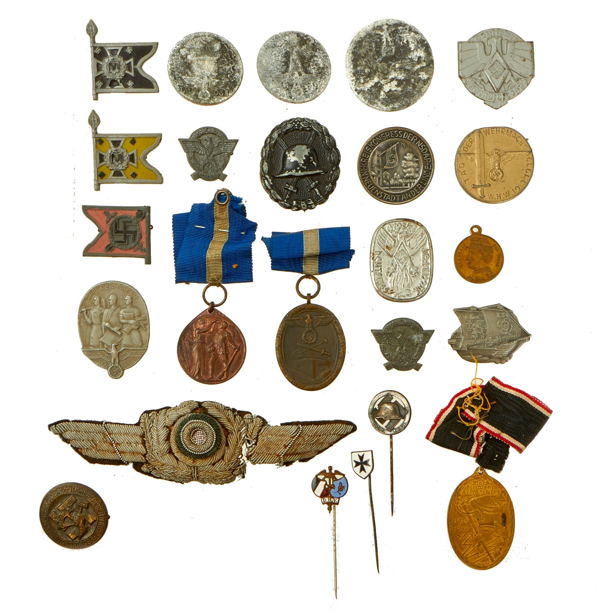 Original Items: Only One Lot of 25 Available. This is a great set of German WWI and WWII era Tinnies and other collectibles, acquired from when the soldier was overseas in Germany. There are 25 in this set, though some are broken and missing pieces, which have fallen off over the years. Please see photos for finer details.