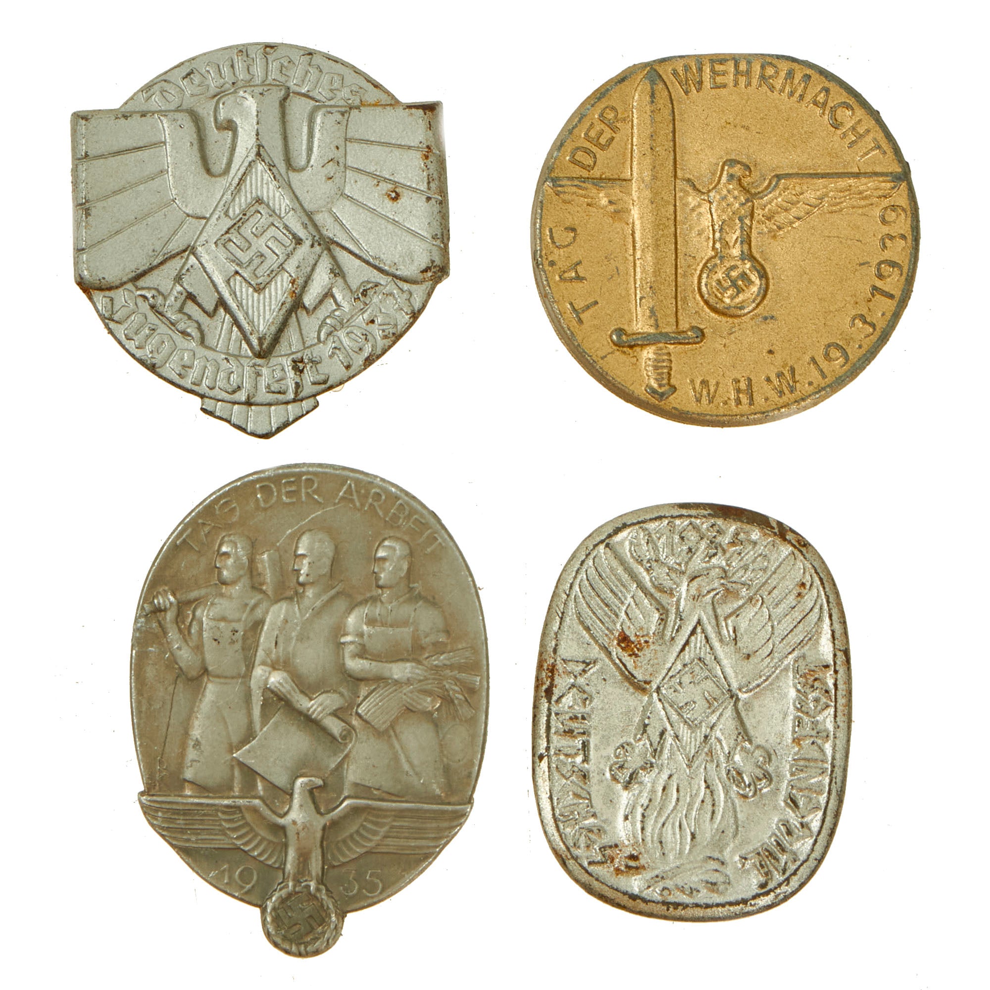 "Tinnies" (Veranstaltungsabzeichen - Event Badge) are small commemorative pins or medals, acquired when one attended a specific event held in Germany. They were often made of thin stamped metal, bakelite, or even pressed paper. Many of these were given out as part of the WHW (Winterhilfswerk - Winter Help Work) Organization, which often involved Germans traveling quite a bit to help out the war effort.
