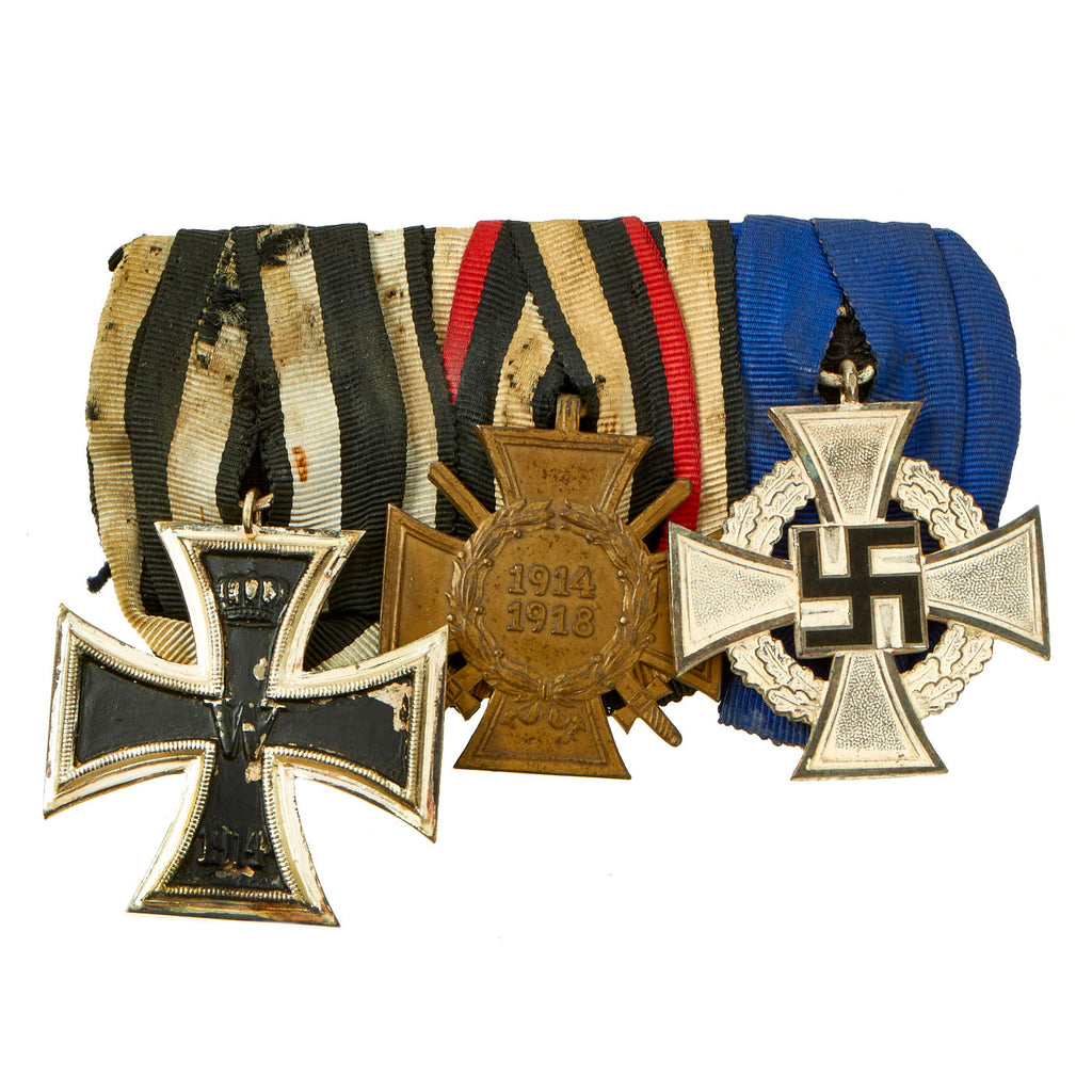 Original Item: One-of-a-kind. This is a very nice genuine medal bar, owned by a German soldier who fought during WWI, and then went into public service, where they continued to work into the WWII period. The ribbons are a bit faded and stained, but overall the set is quite eye catching.