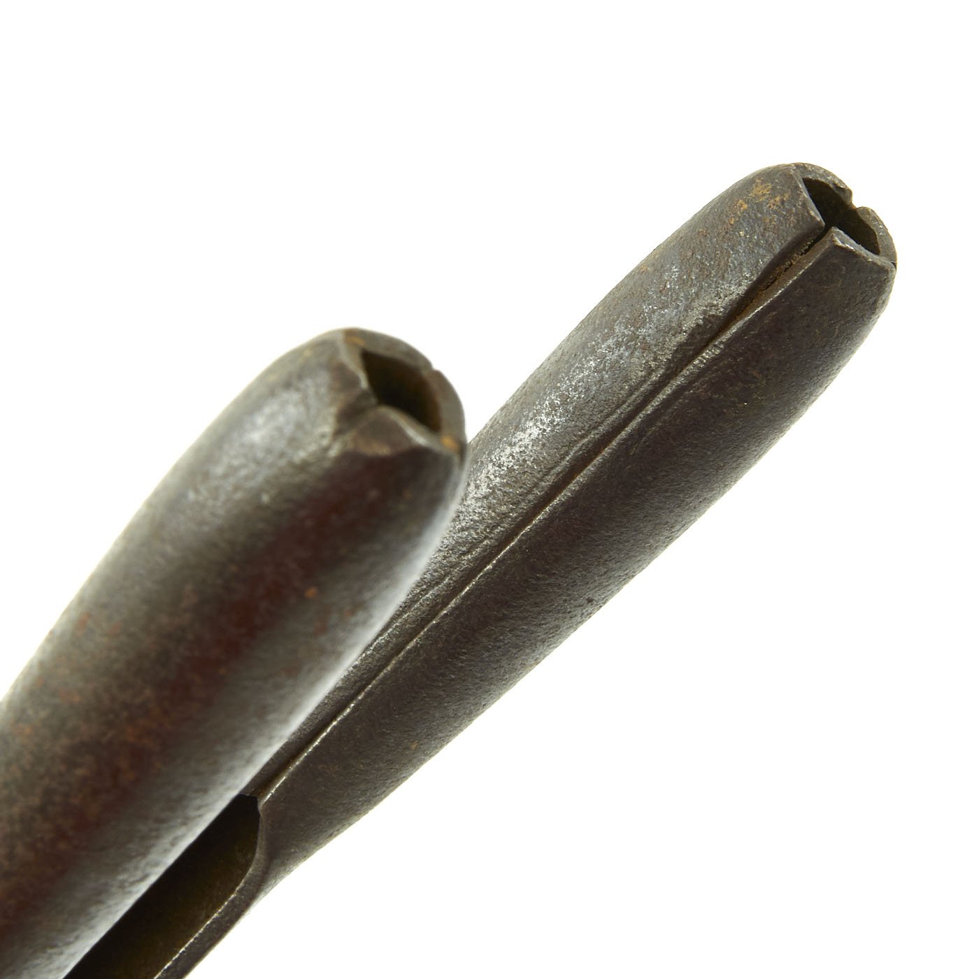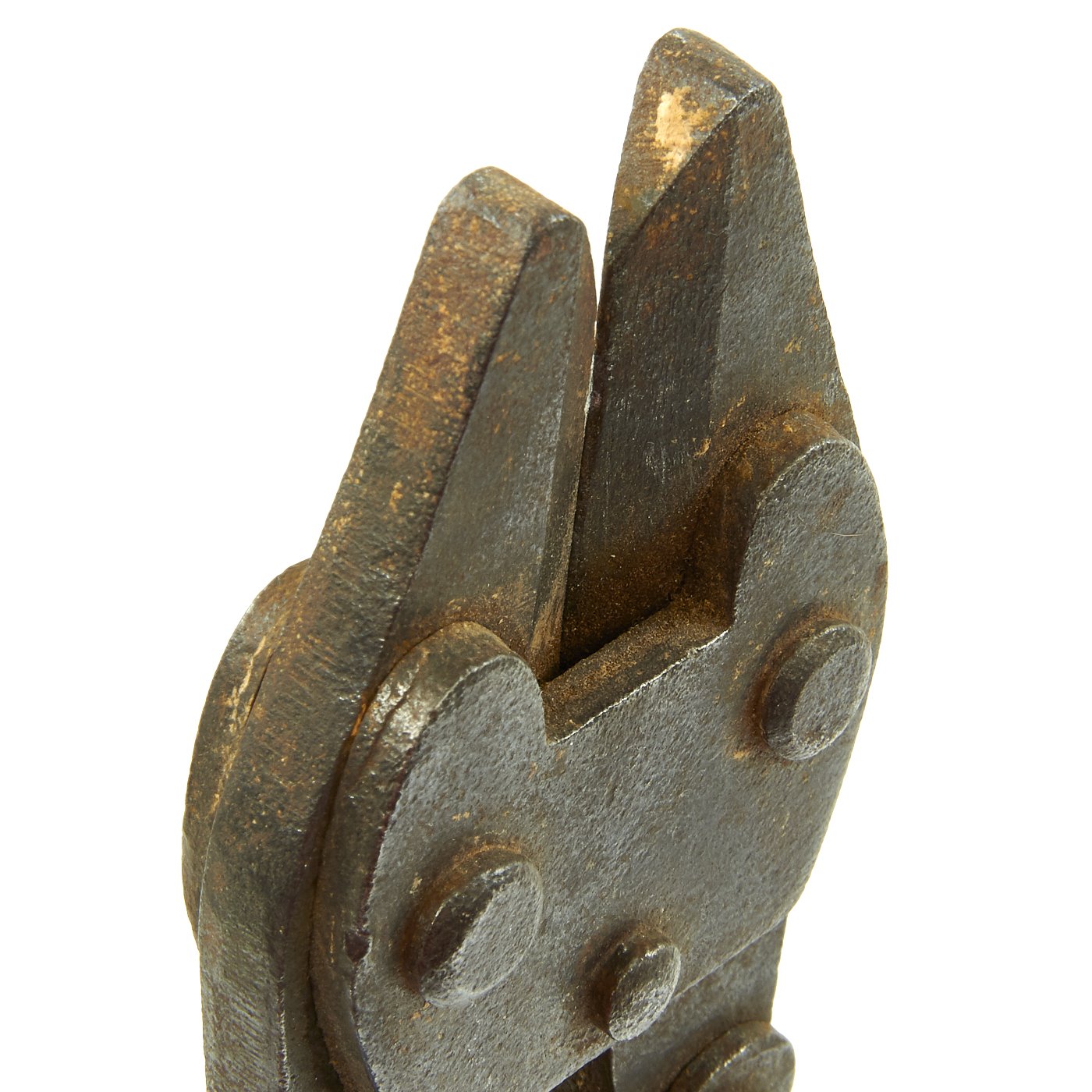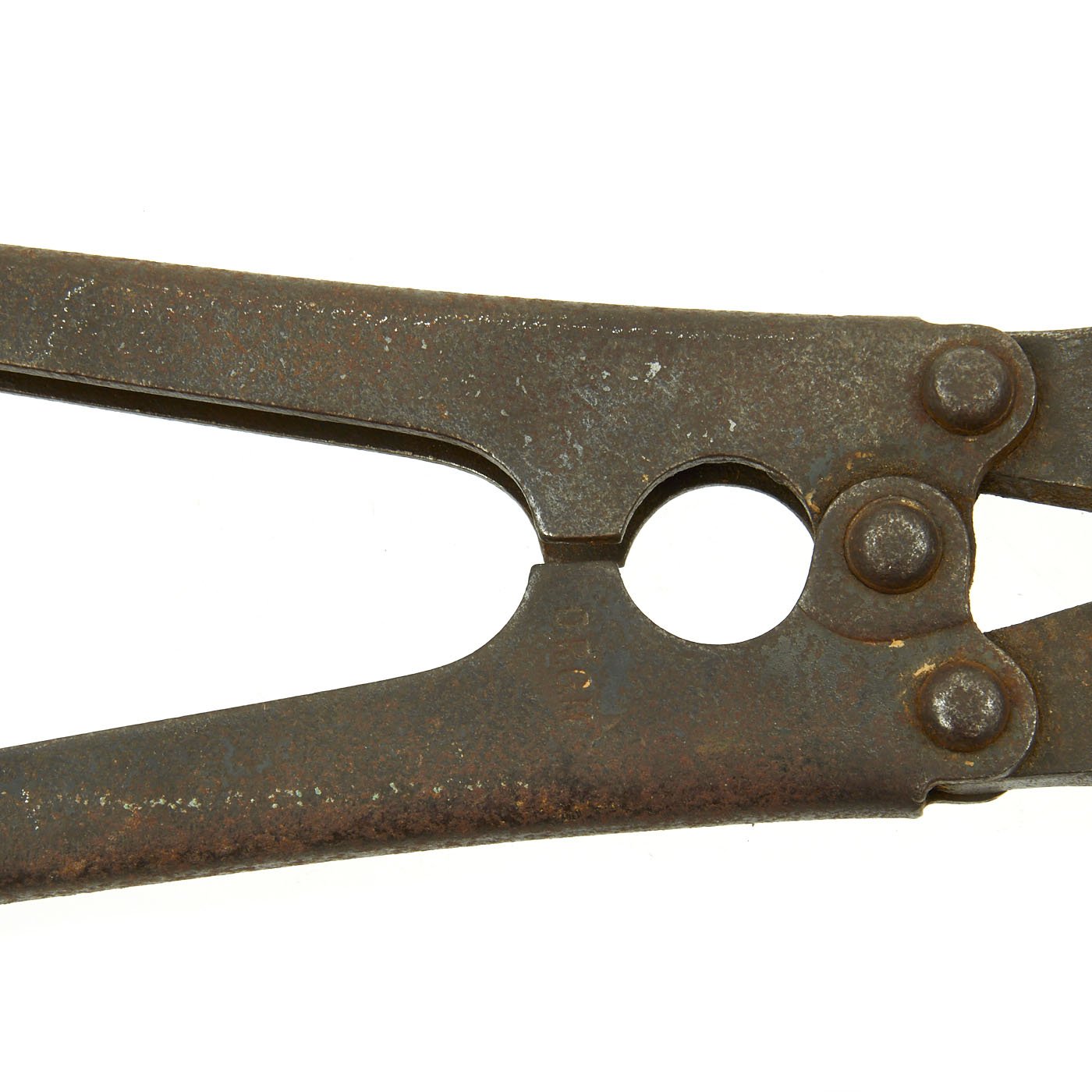 This example is quite nice, and looks to be fully functional, though there is a chip on the blade, probably from trying to use them to cut something larger or harder than wire. There is a faded maker marking on the head's hinge pivot, which looks to read A.V. HOF over another word, but we cannot make out what it is due to the surface rust. They are also marked clearly with D.R.G.M. (Deutsches Reiches Gebrauchs Musterschutz) - meaning it is a protected patented design under the German Government.