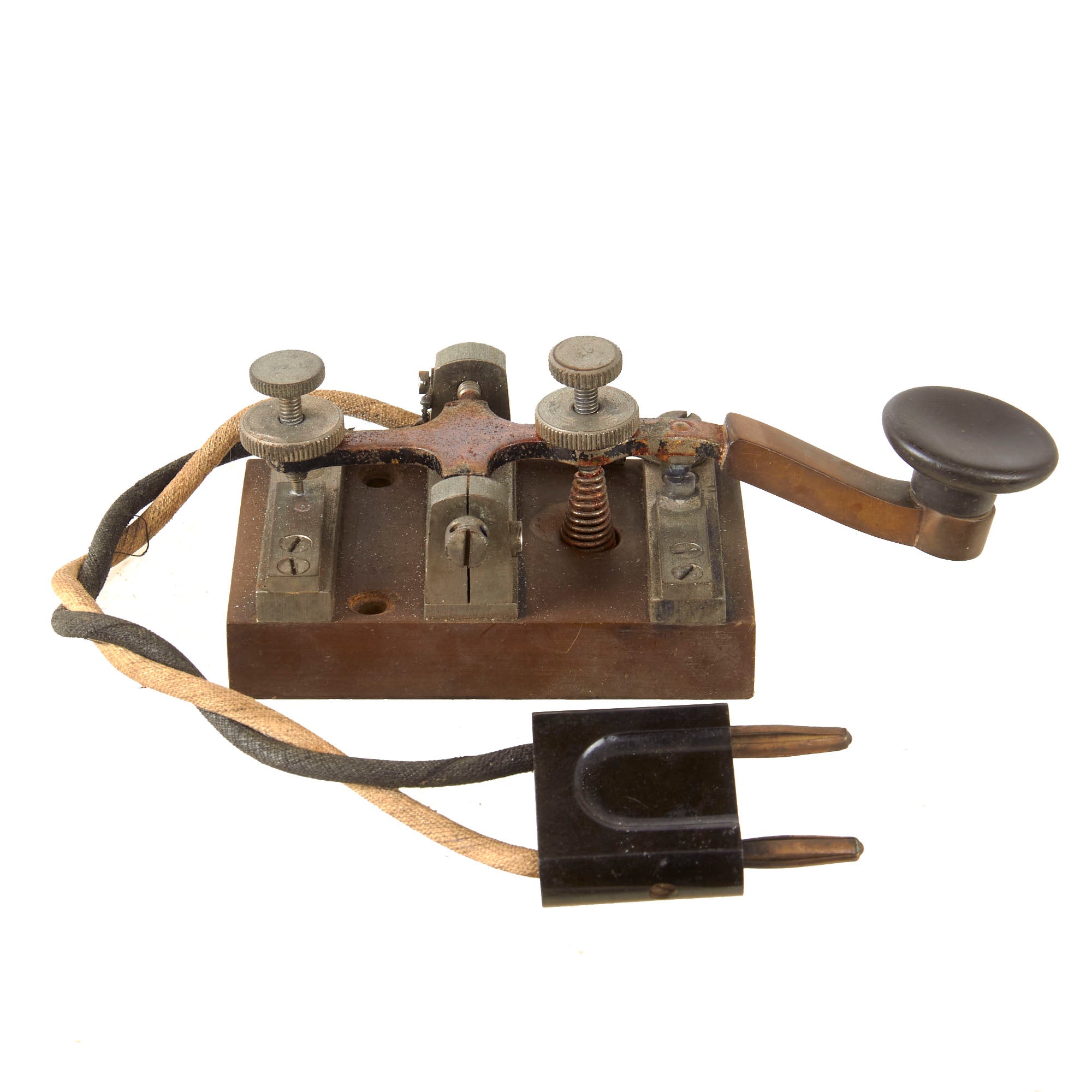- Morse code key with original double-wired plug. The base is marked Type: St.271./0 Nr. 1462. Good shape but the wires have some damage. Still makes the iconic sound. Appears WWII era.