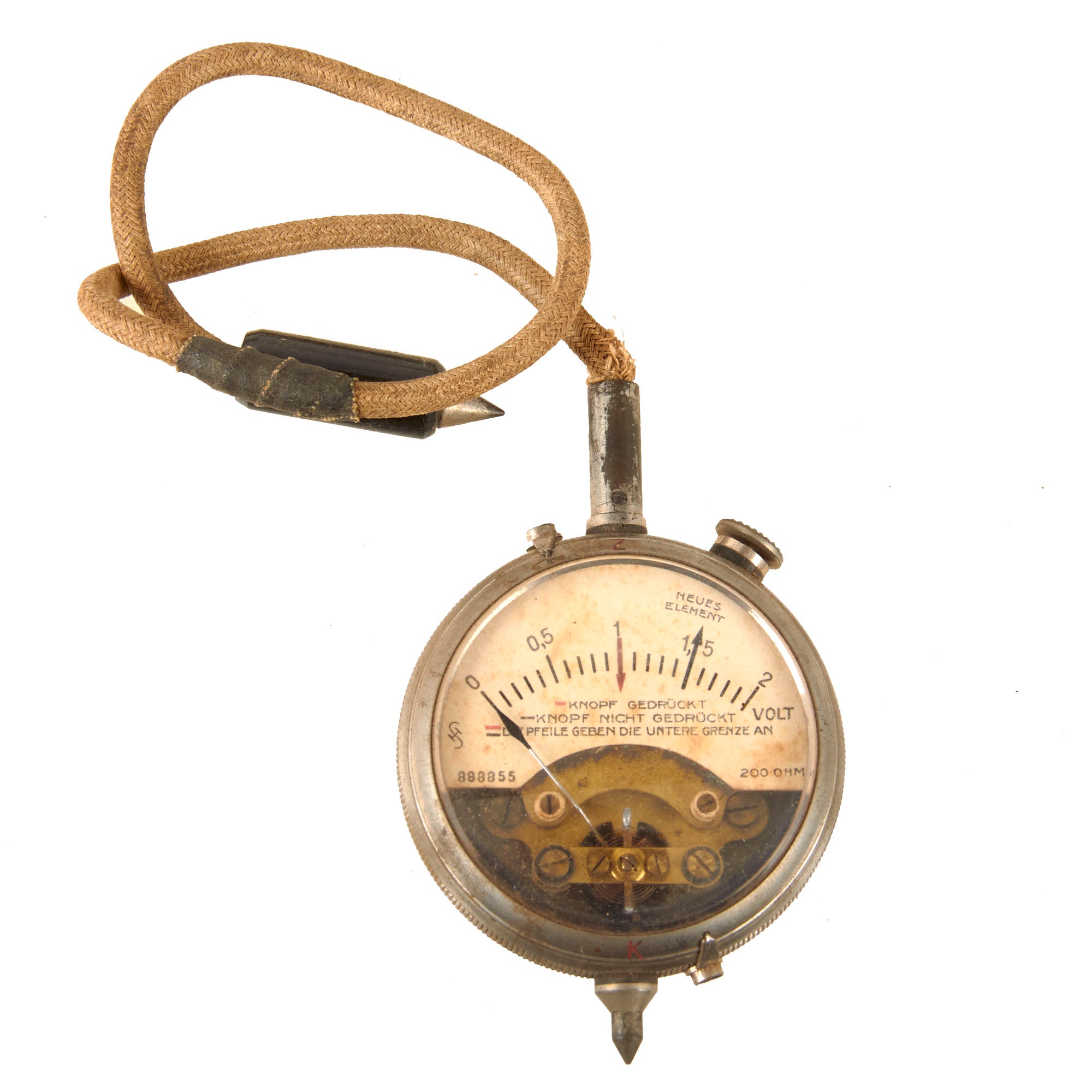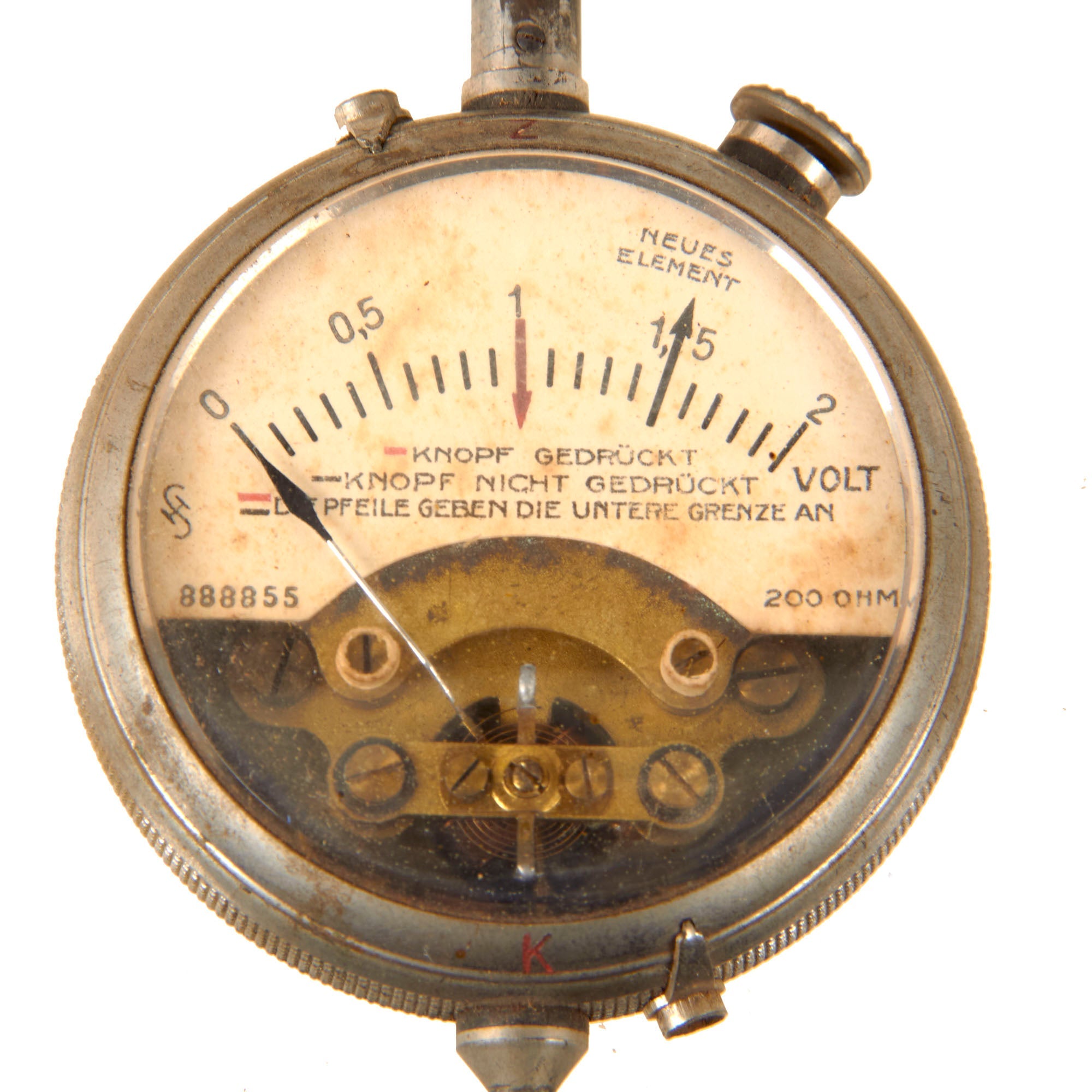 Original Items. Only One Lot Available. This is a good lot of technical items used by parts of the German military during both World War I and World War II. They include a morse code key, a pressure gauge in its original wooden case, and a voltage meter in its original leather case.