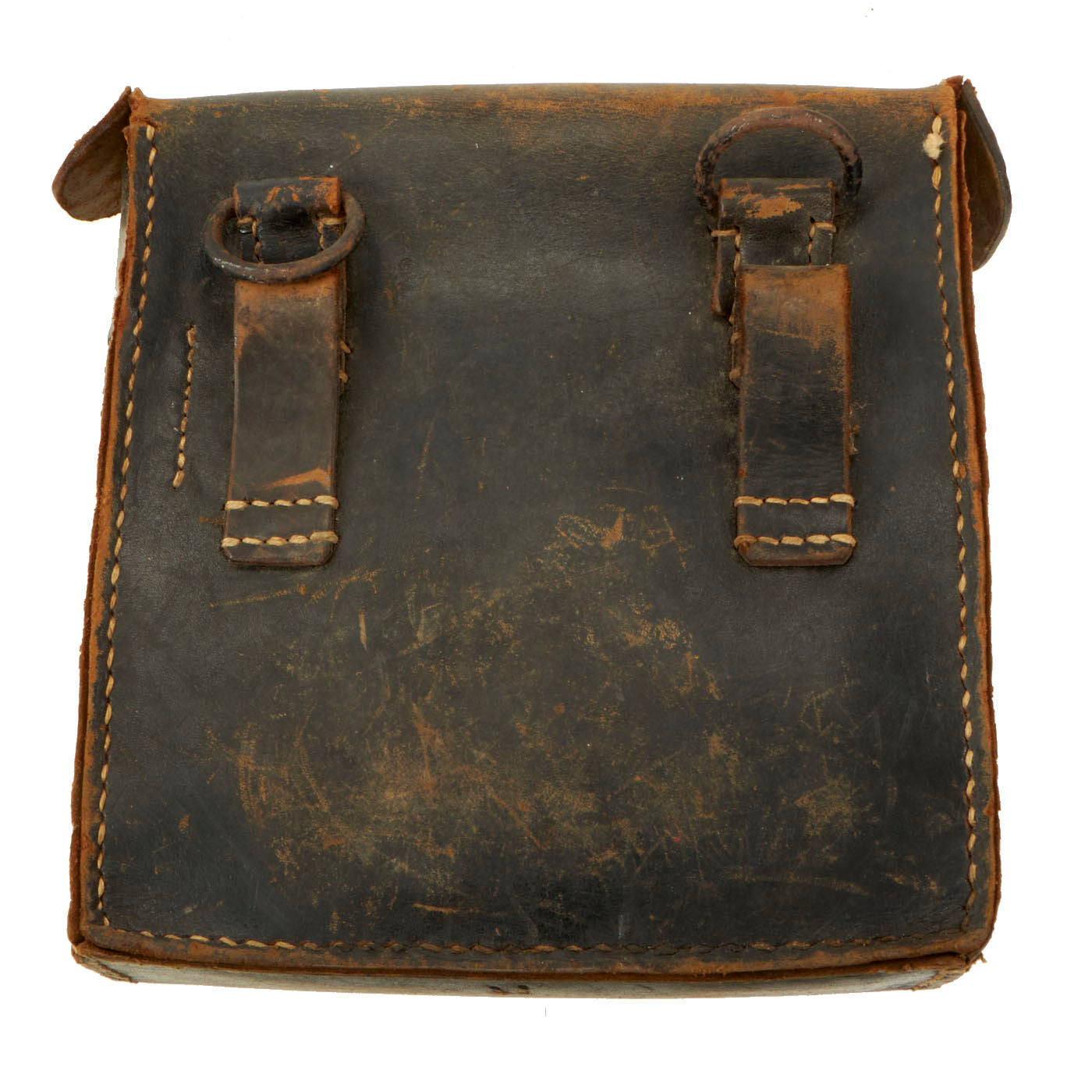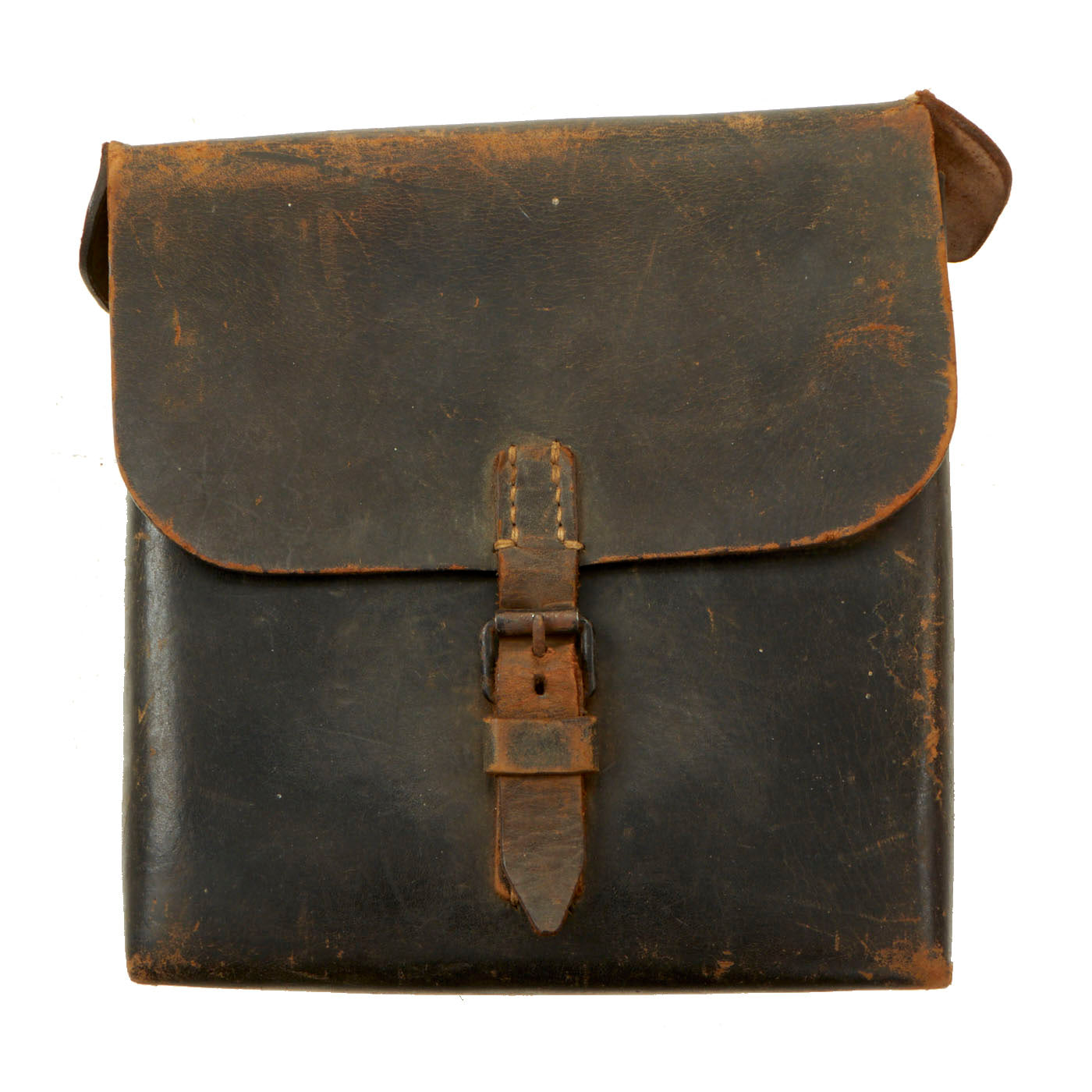 WWII German Signals (Nachrichtentasche) Captured Leather Tool Pouch: These were used by telephone/signal corps/pioneers and would be standard issue. It held a report pad, pencils, tape, splicing knife, paper labels and a universal tool. The name “Leroy Teague” is carved into the top flap.