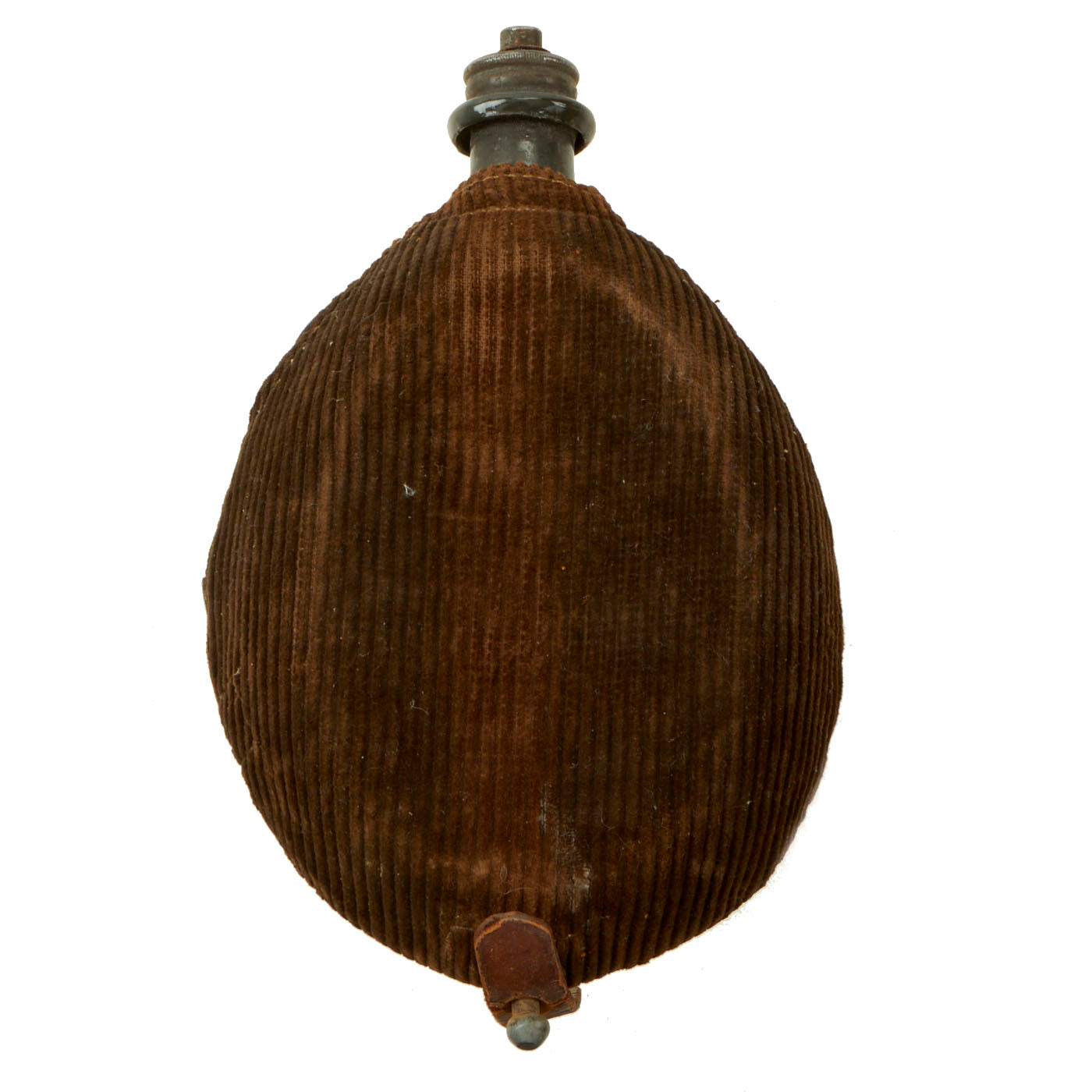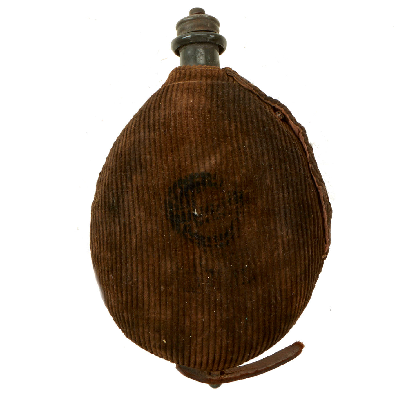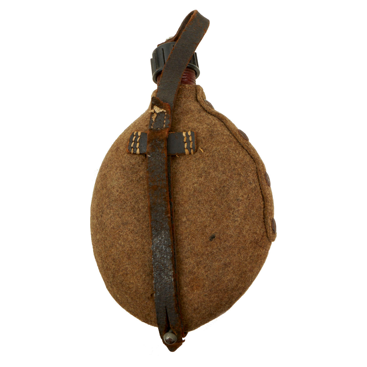 2x WWII Late War Enameled Steel M31 Canteen: Very nice example of the Feldflasche Modell 1931 canteen. No top cup and leather strap is torn.