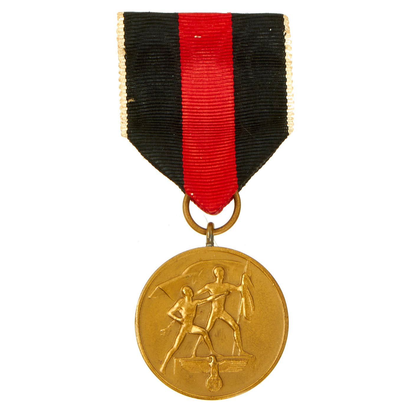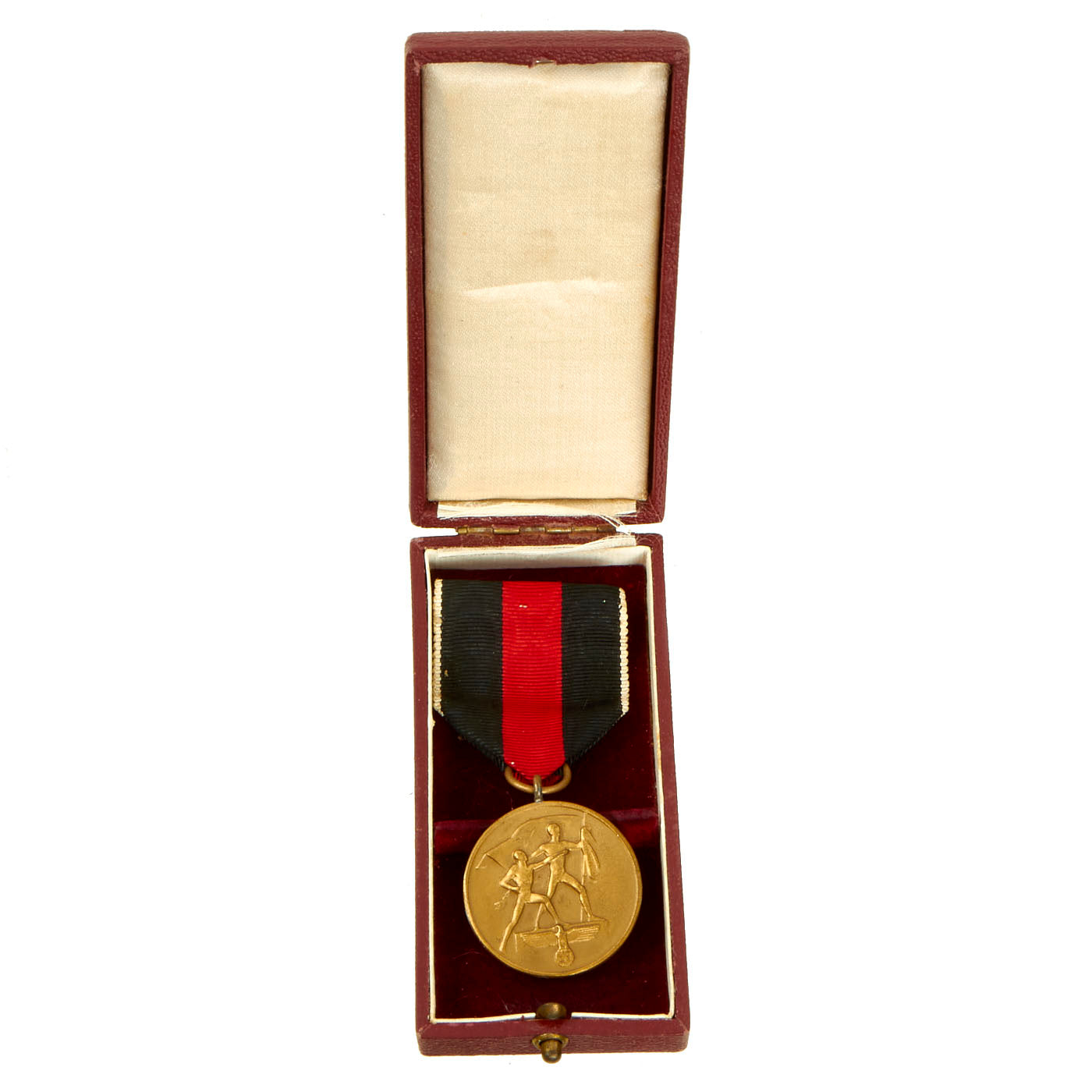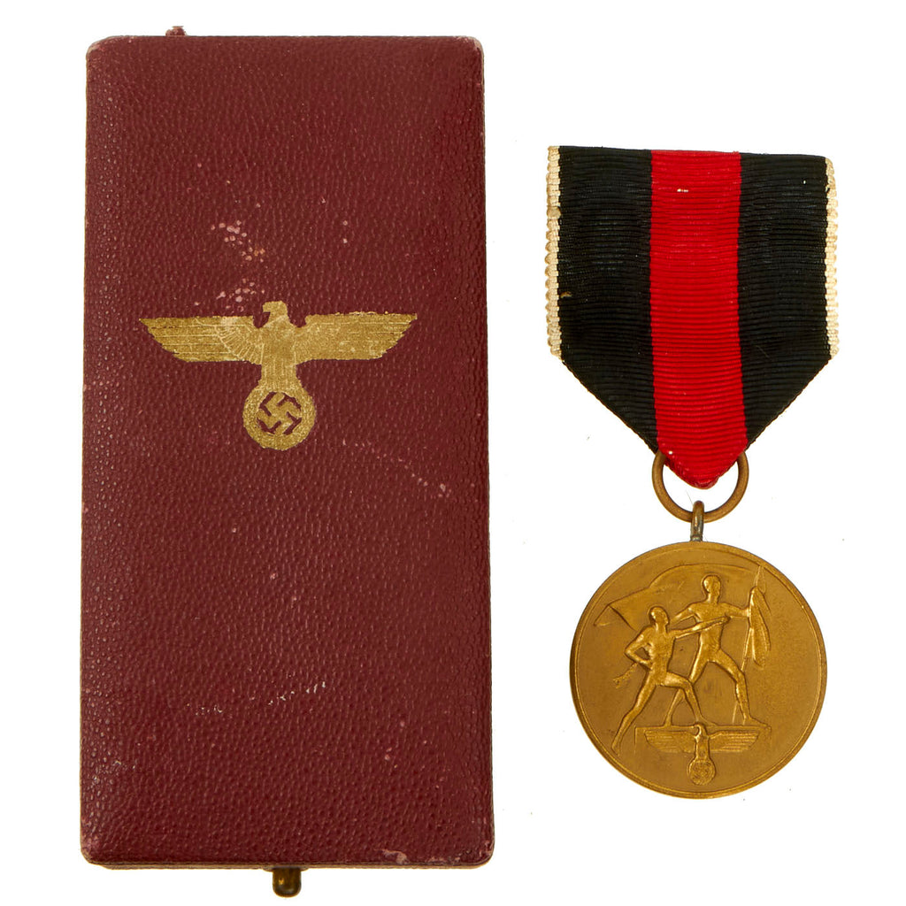 Original Item: Only One Available. This is a very nice German Pre-WWII 1 October 1938 Commemorative Medal (German: Die Medaille zur Erinnerung an den 1. Oktober 1938), commonly known as the Sudetenland Medal or Czech Conquest Medal. This was a decoration of NSDAP Germany awarded in the interwar period, and this fine example comes complete with its original ribbon and is inside its original maroon presentation case.